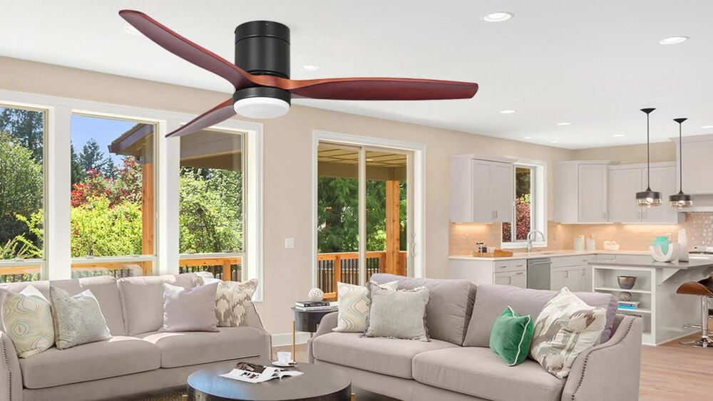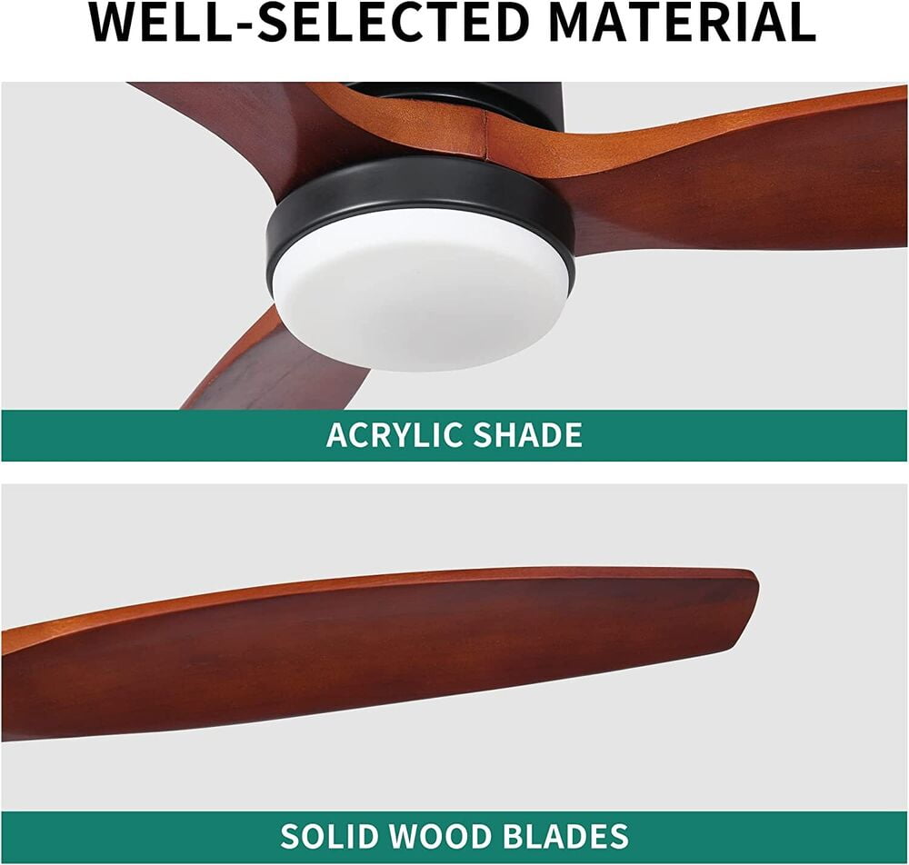 52″ Farmhouse Flush Mount Ceiling Fan with Light and Remote 3 Blade Reversible
