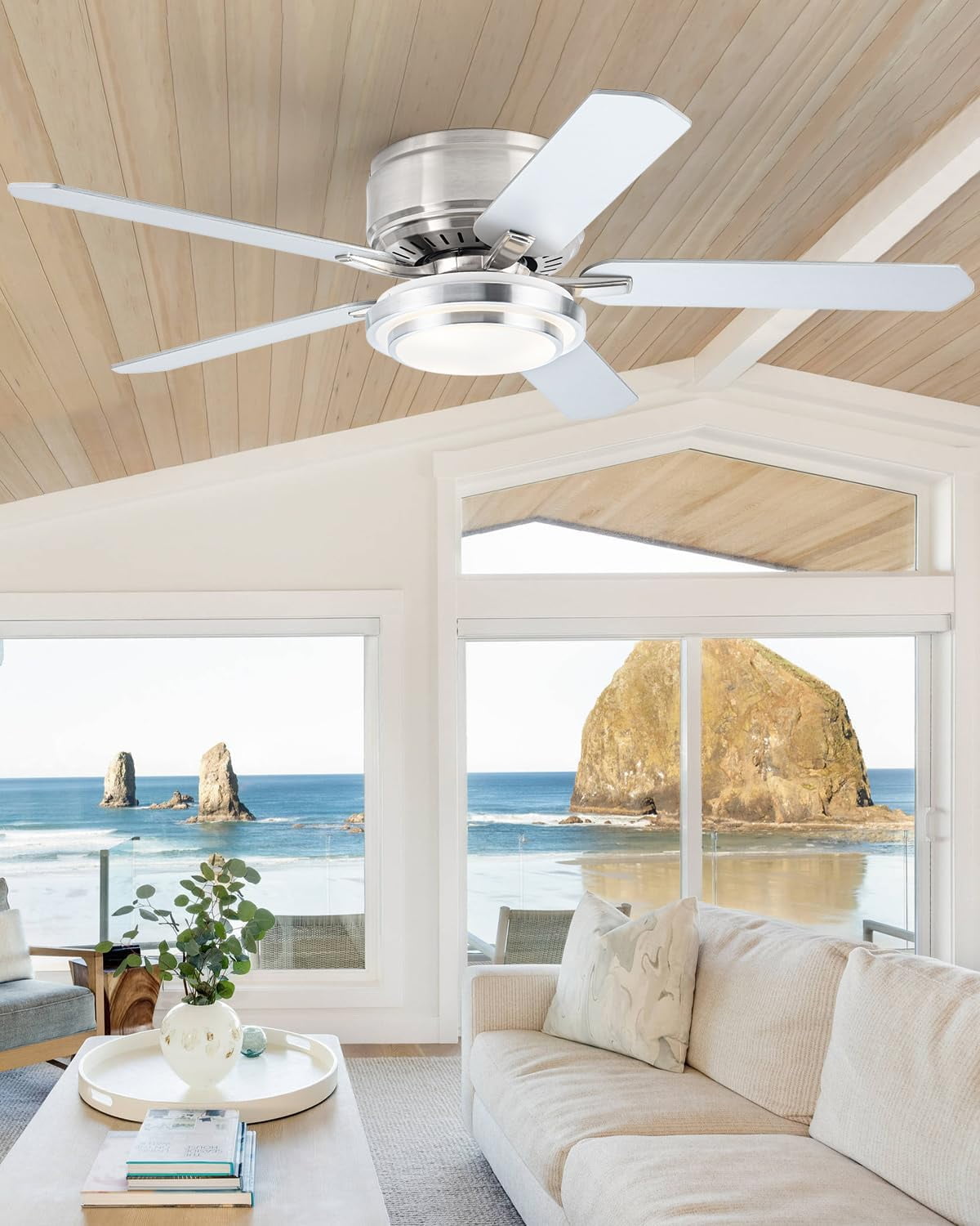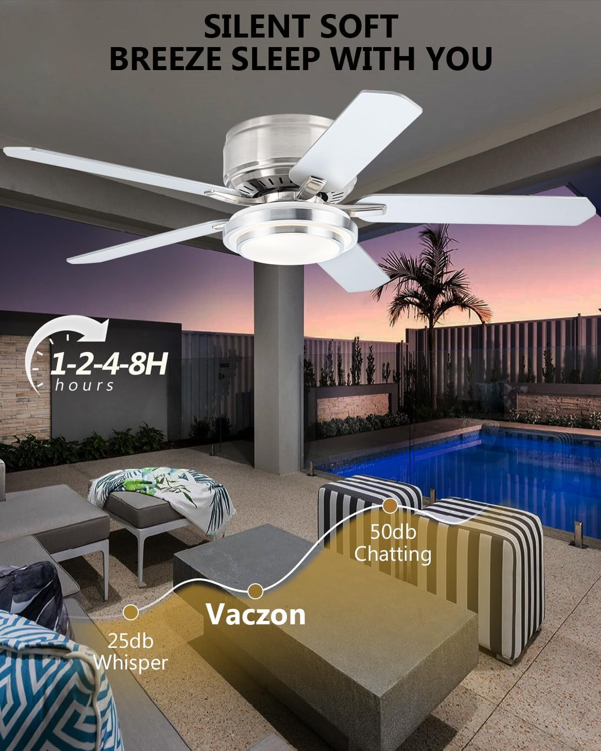 • Silver Ceiling Fan with Light: Vaczon ceiling fan low profile with light is designed with High quality 5 blades and has a simple modern look that can match a variety of decor styles. Moisture-resistant material can be used both indoor and outdoor.