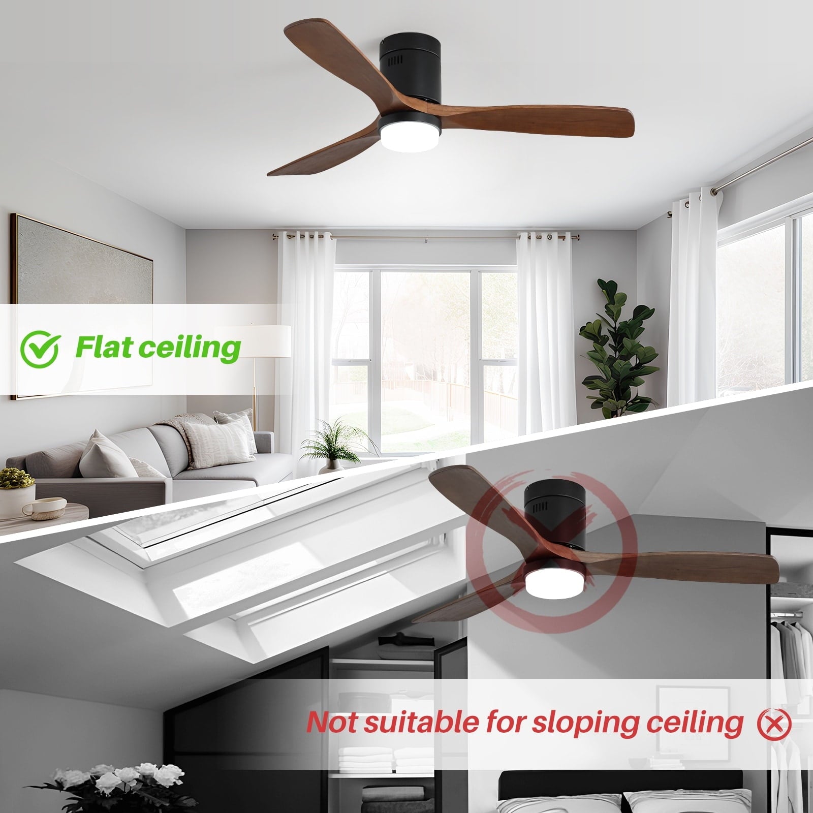 The 52 in. modern ceiling fan with/without remote will add much character to your space. It is a beautiful and elegant fixture. The minimalist look and 3 solid wood blades will enhance your spaces with a clean, modern touch. It can provide great air movement. with a powerful 18-Watt DC reversible motor this fan has a super quiet performance, no need to endure the noise while saving energy both in summers and winters. Reversible motor allows you to change the direction of your fan from downdraft mode during the summer which helps cool the room to updraft mode during the winter to help circulate trapped warm air near the ceiling. With handheld remote, it’s easy to adjust 6 speed wind from anywhere in the room. This 52 in. ceiling fan is suitable for medium rooms, like the living room, dining room and bedroom.