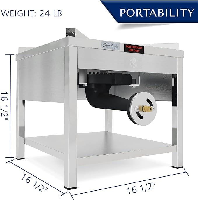 • Hight-Heat Output: ARC Single burner propane stove has a Heavy-Duty Square Stove with 200,000BTU high heat output.16.5″ * 16.5″ large cooking area, suitable for different cookware: barbecue grills, turkey fryer pots or tamale steamer, etc.