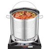 • PREMIUM STAINLESS STEEL: Compared to Aluminum, Stainless Steel has a higher resistance to heat and is ideal for heavy-duty cooking and long periods of cooking time.Great for boiling crawfish, crab, shrimp, and stews or soups.