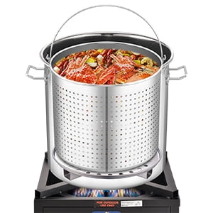 PREMIUM STAINLESS STEEL: Compared to Aluminum, Stainless Steel has a higher resistance to heat and is ideal for heavy-duty cooking and long periods of cooking time.Great for boiling crawfish, crab, shrimp, and stews or soups.