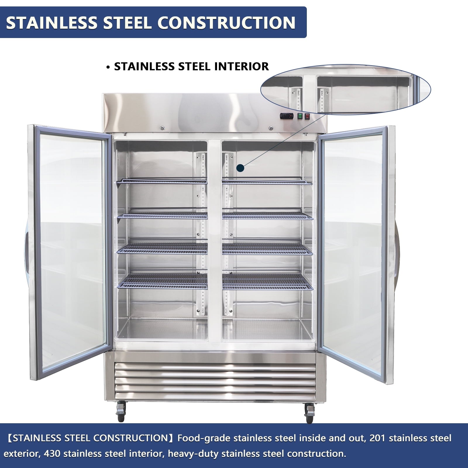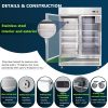 • Durable Stainless Steel Construction:Built with food-grade stainless steel inside and out that resists fingerprints and is easy to clean. Features dual-pane tempered glass doors with anti-fog technology and a magnetic gasket for a tight seal.