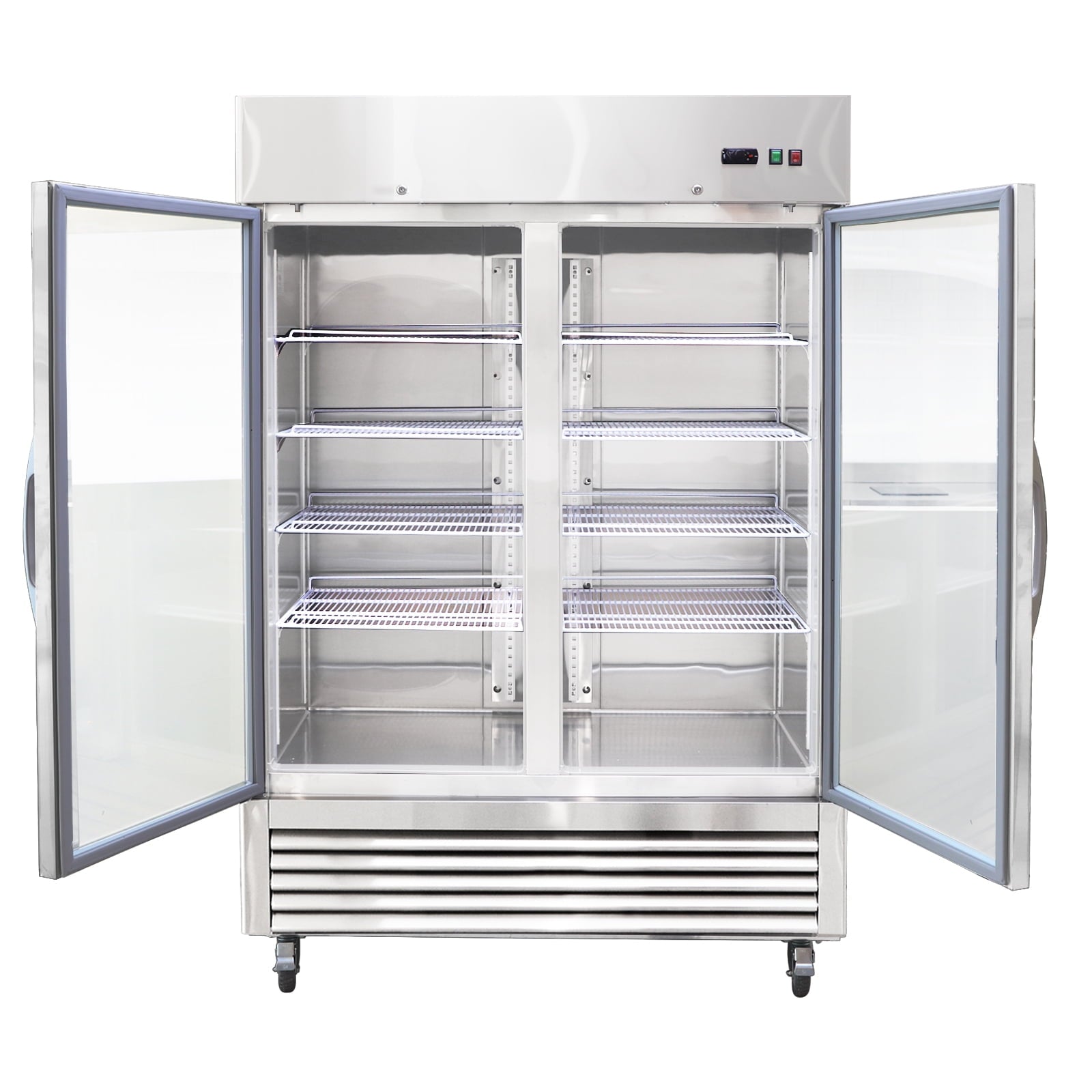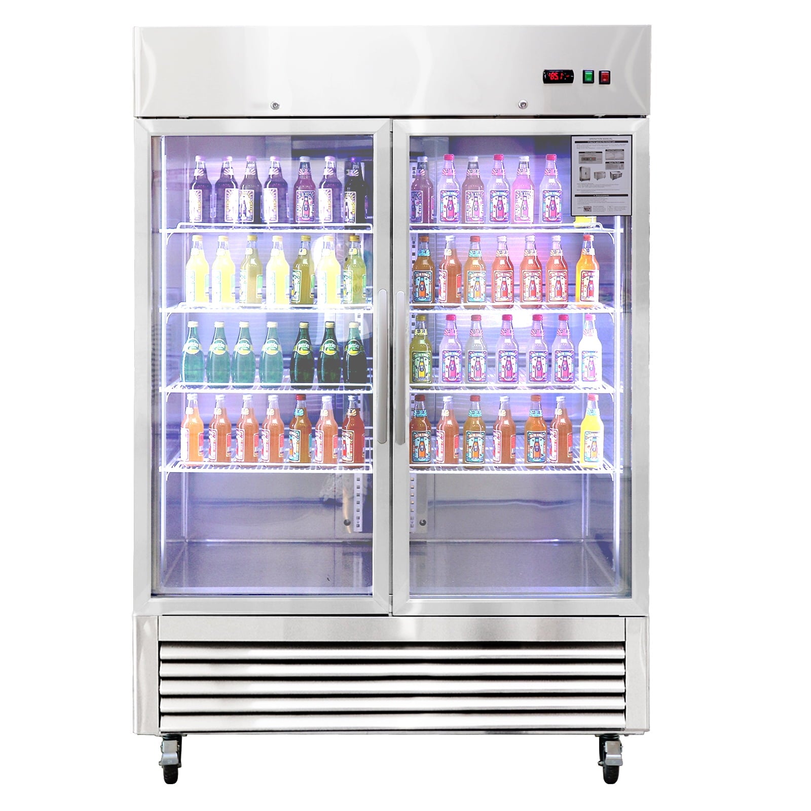 Home Commercial Refrigerators 54″W Commercial Refrigerator 2 Glass Door Stainless Steel Interior and Exterior Construction Display Refrigerator 42.2 Cu.ft. Reach-in Merchandising Refrigerator Upright Fan Cooling Merchandiser