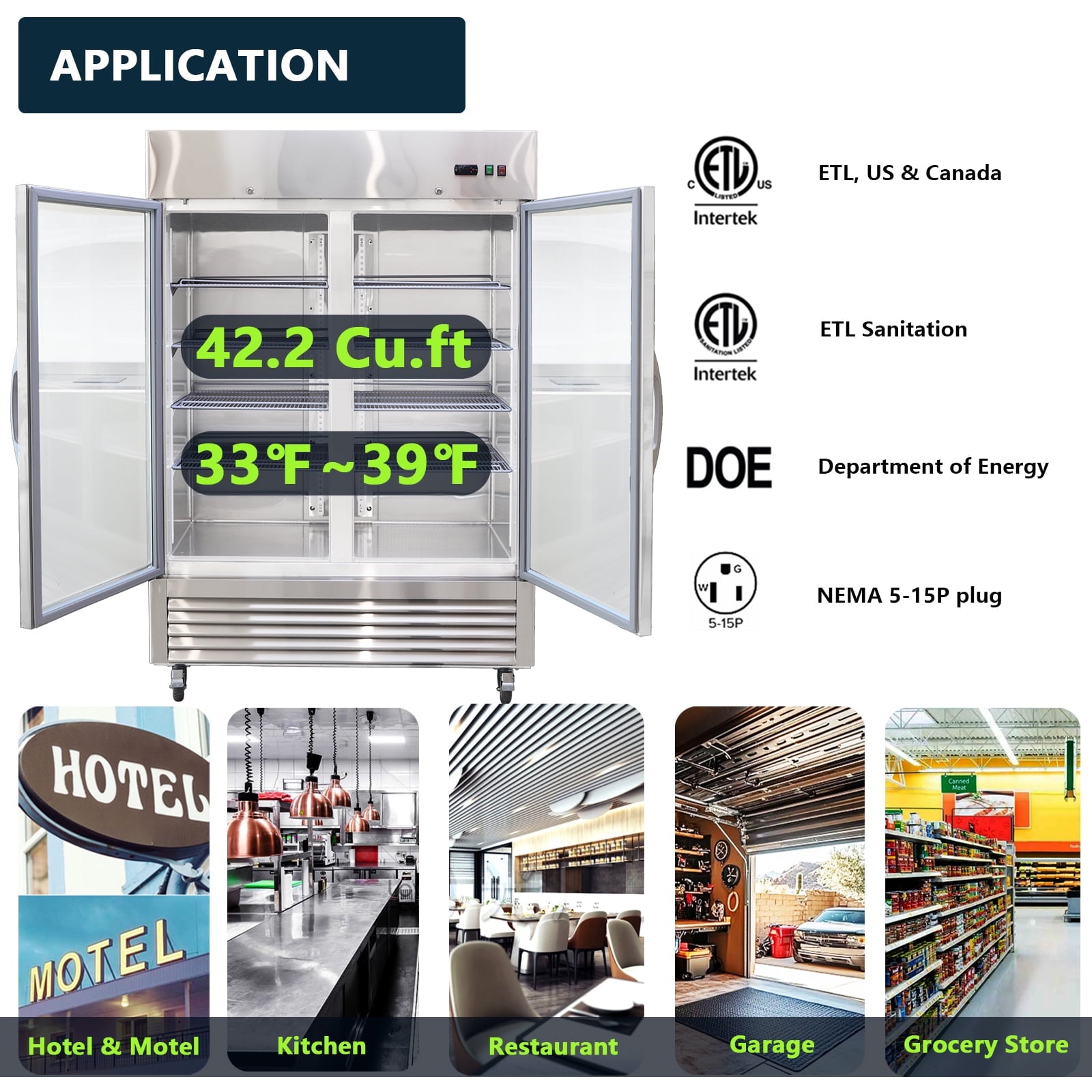 • Certified Safe & Energy Efficient:ETL certified for safety, sanitation, and energy efficiency (ETL Safety, ETL Sanitation, DOE compliant), making it ideal for restaurants, bars, supermarkets, or home use.