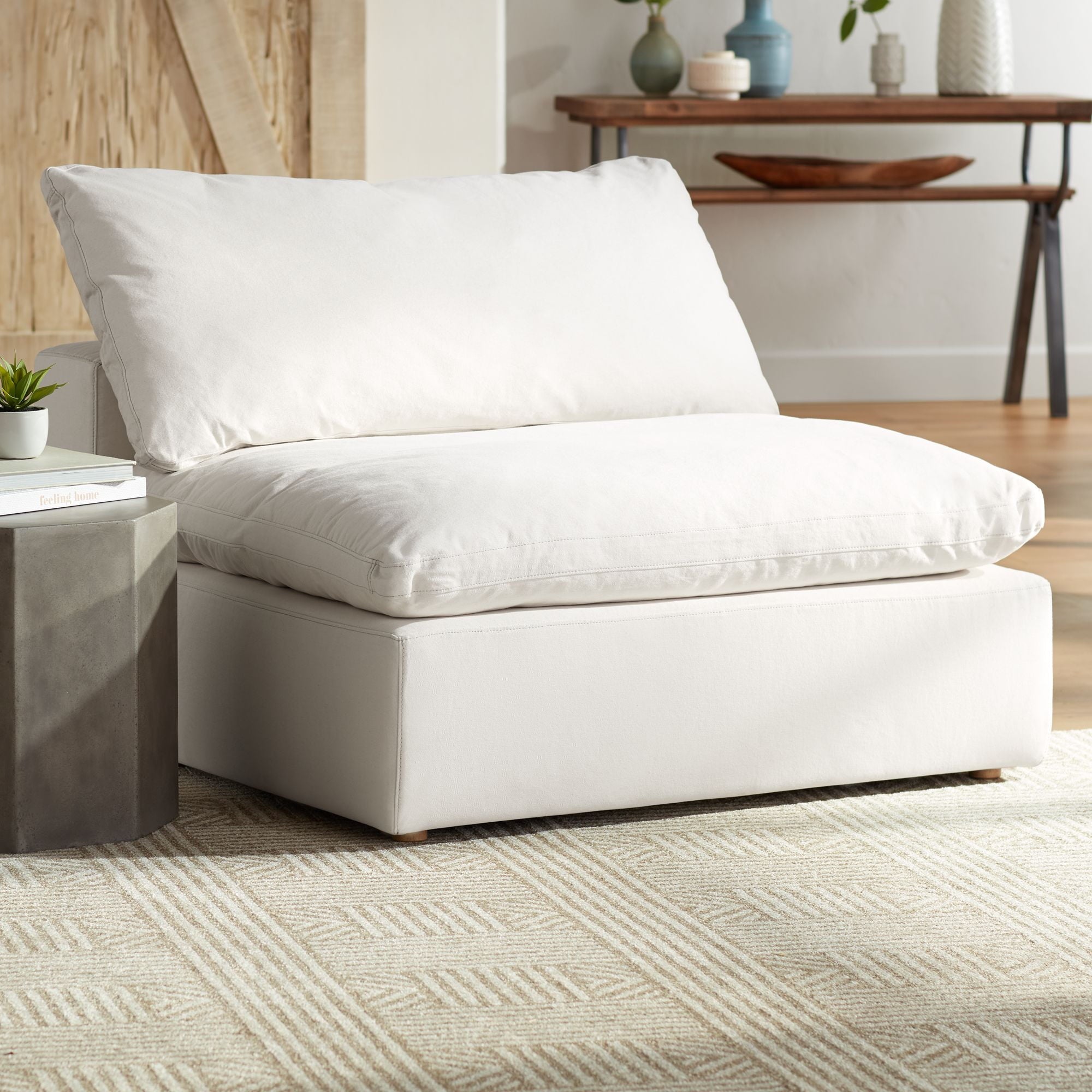 - Pearl white color fabric slipcover for Skye Peyton Collection armless sectional seating.