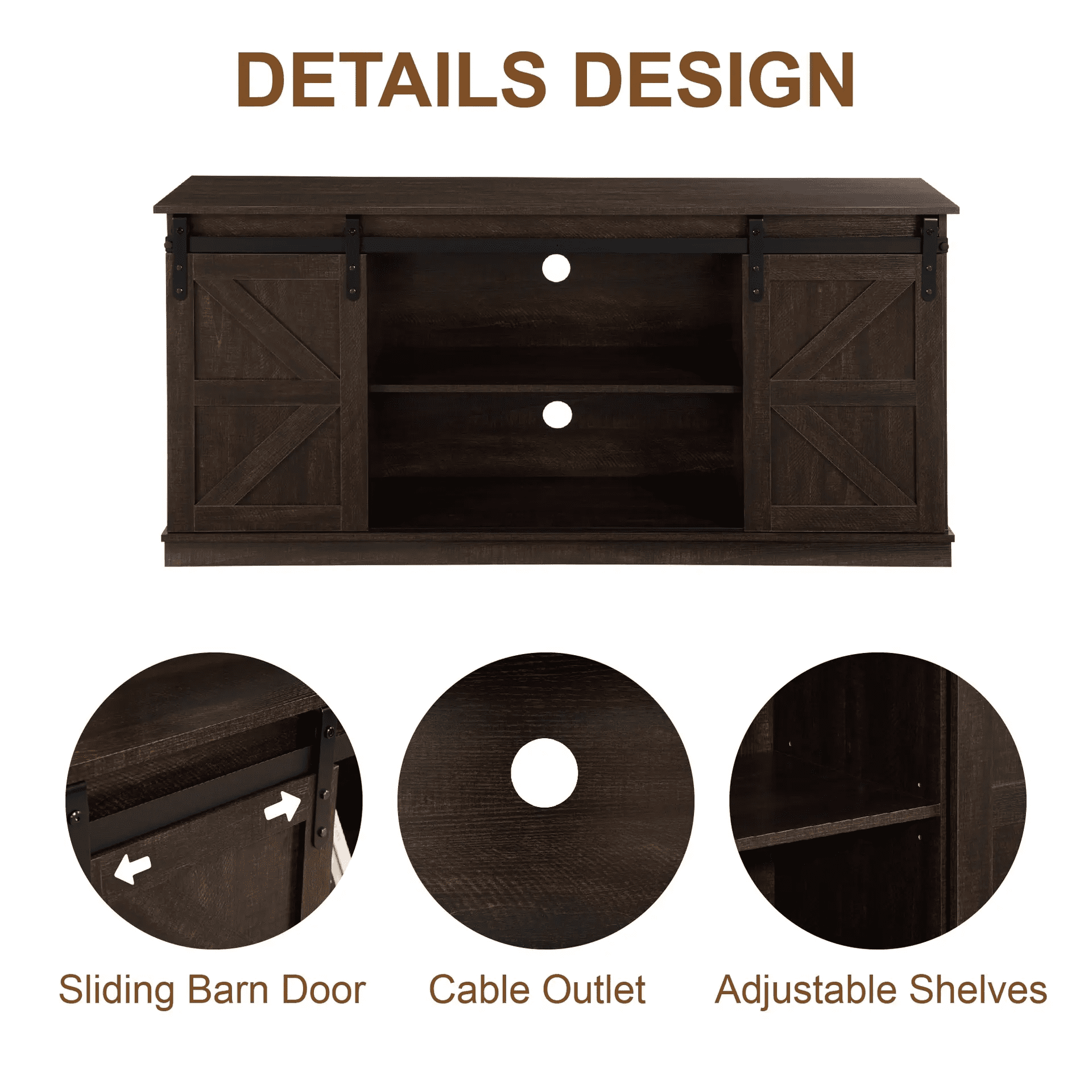 - 【Hidden Storage Adjustable Shelves】The farmhouse entertainment center stand is equipped with an open adjustable center shelf, you can easily keep DVDs, books, magazines, video, game consoles, and other media components within easy reach.