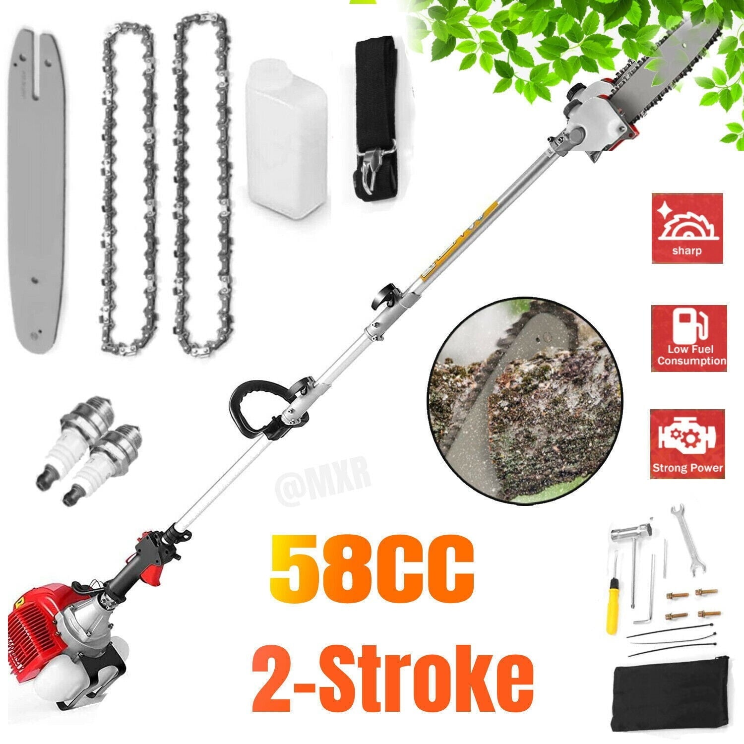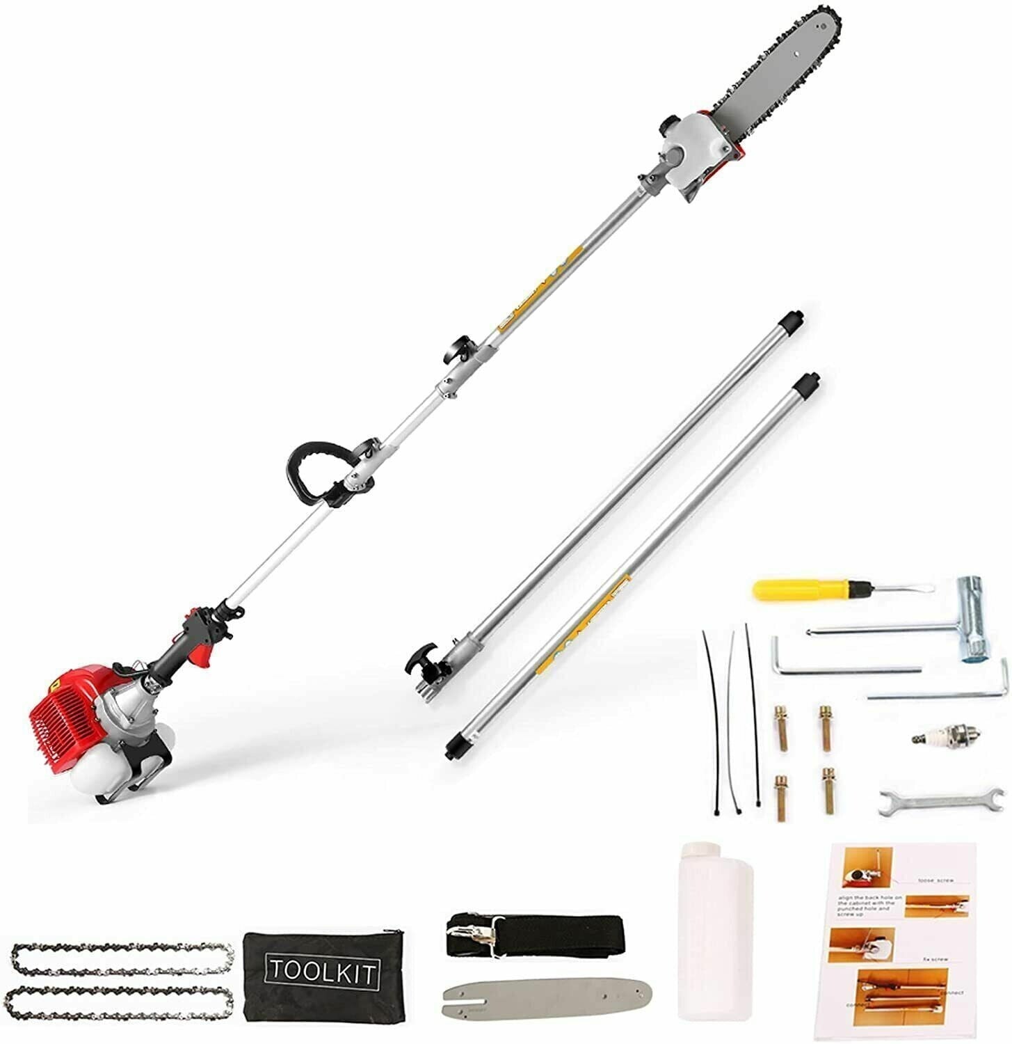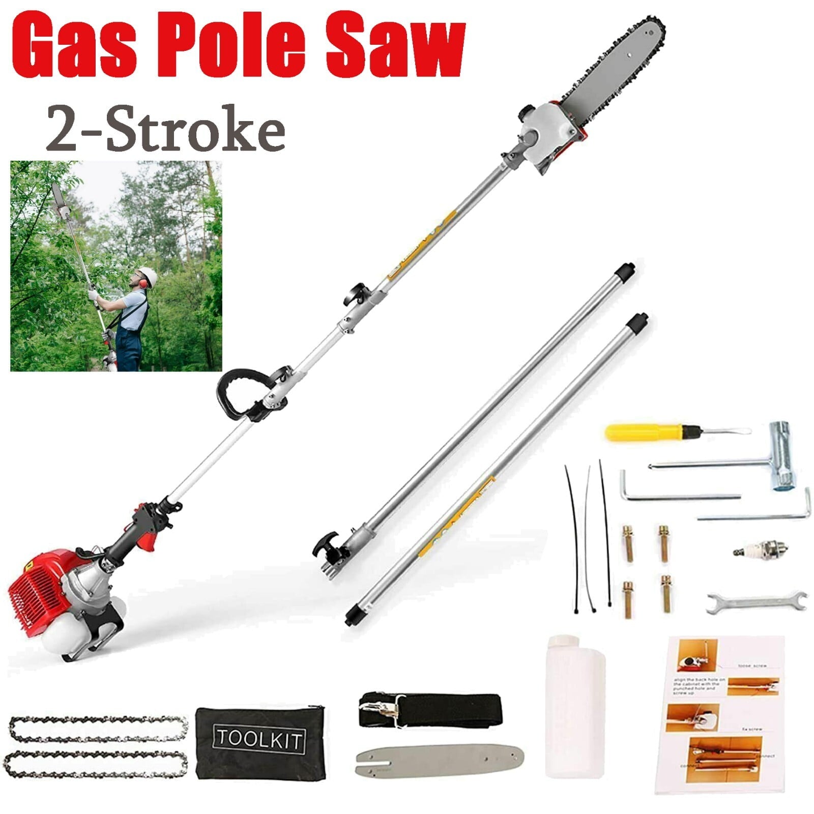58CC Pole Saw Gas Powered 2-Stroke Chainsaw Tree Trimmer Extension Hedge Trimmer