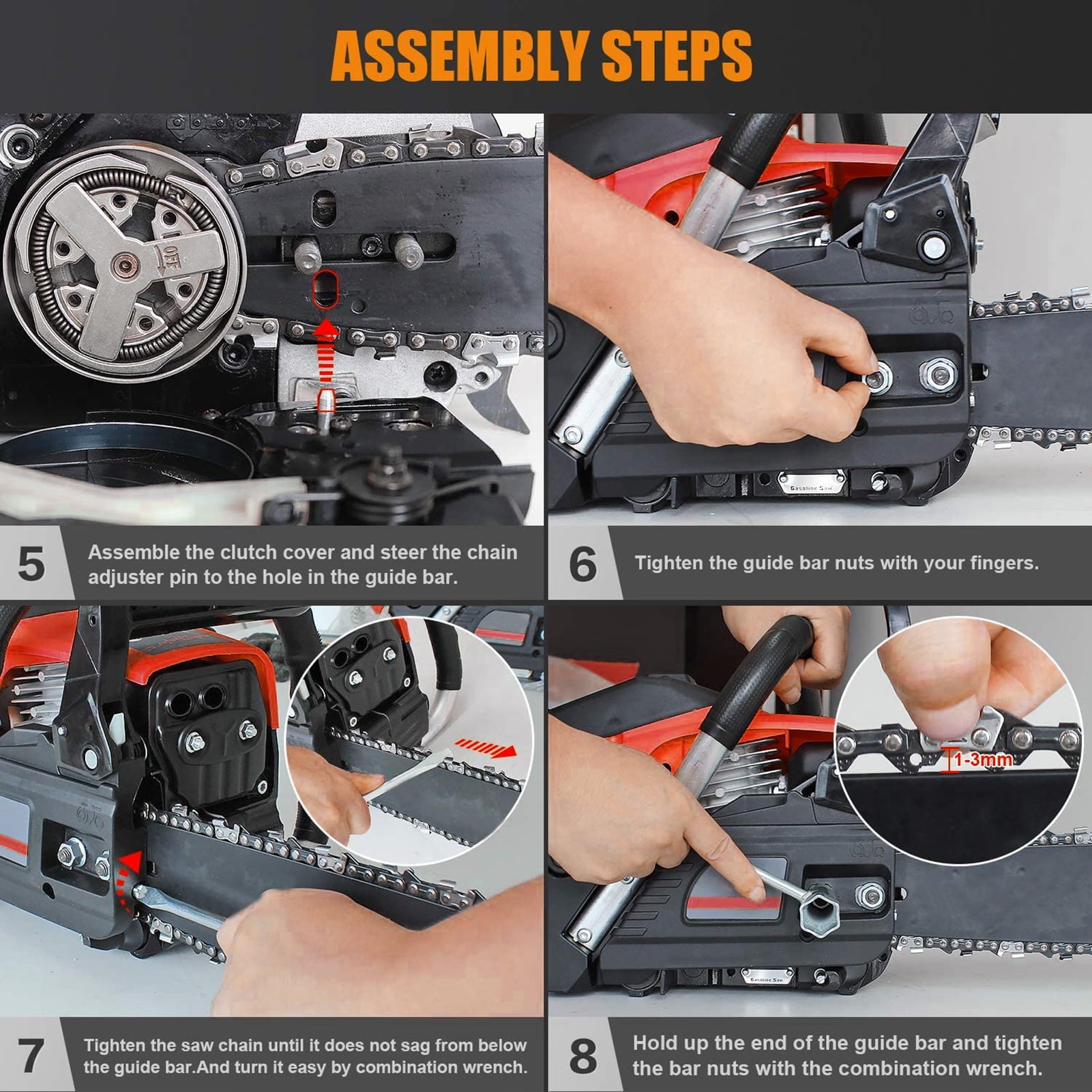 - Safety Assurance: Comes with a brake function and guide guard to prevent unexpected startups. The quick-stop chain brake enhances operational safety, and users are advised to check the chain-sprocket fit before use.
