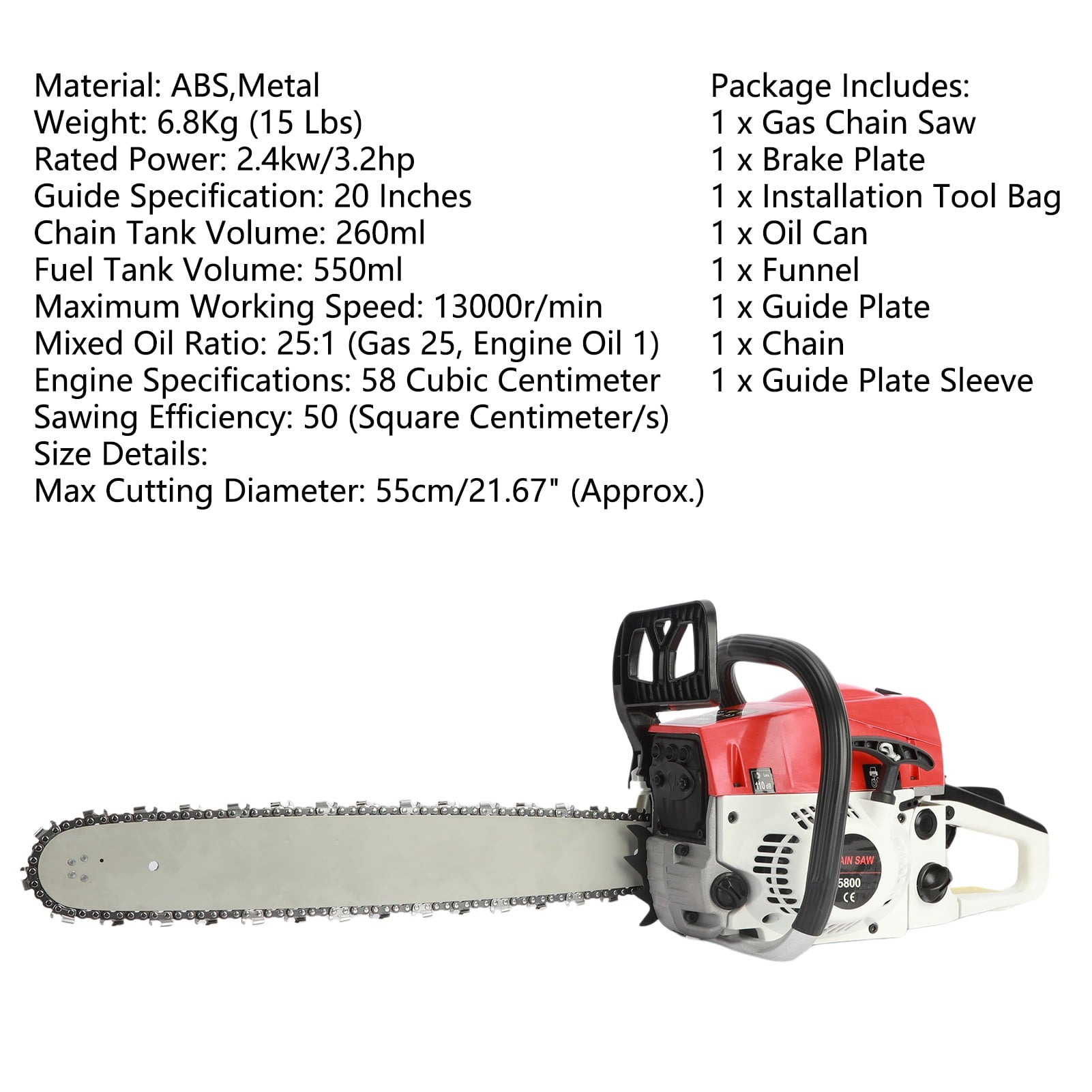 1 x Gas Chainsaw | 1 x Brake Plate | 1 x Installation Tool Bag