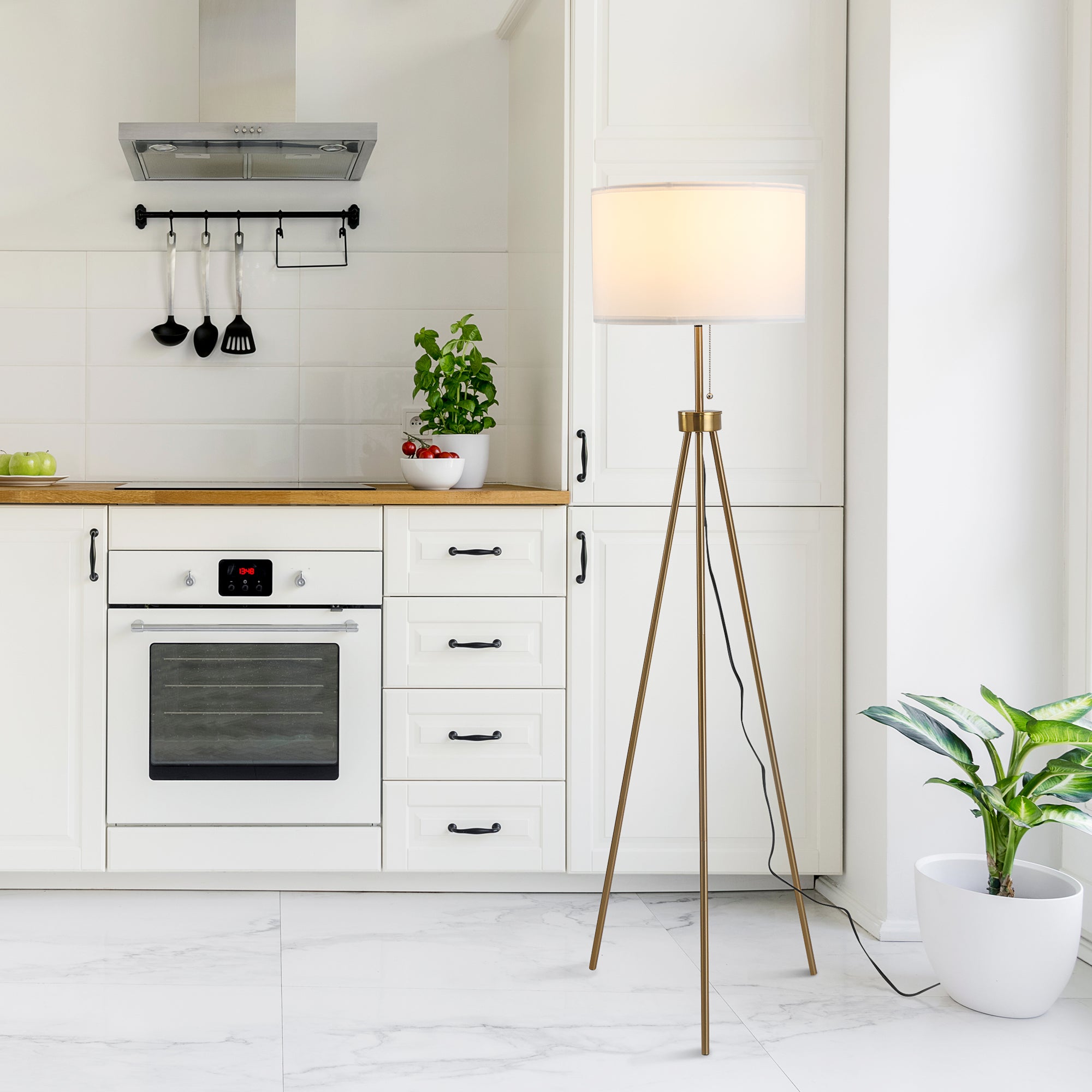 Home Floor Lamps 59.75″ Floor Lamp Standing Lamp E26 Socket Steel Tripod Living Room – Black/Gold