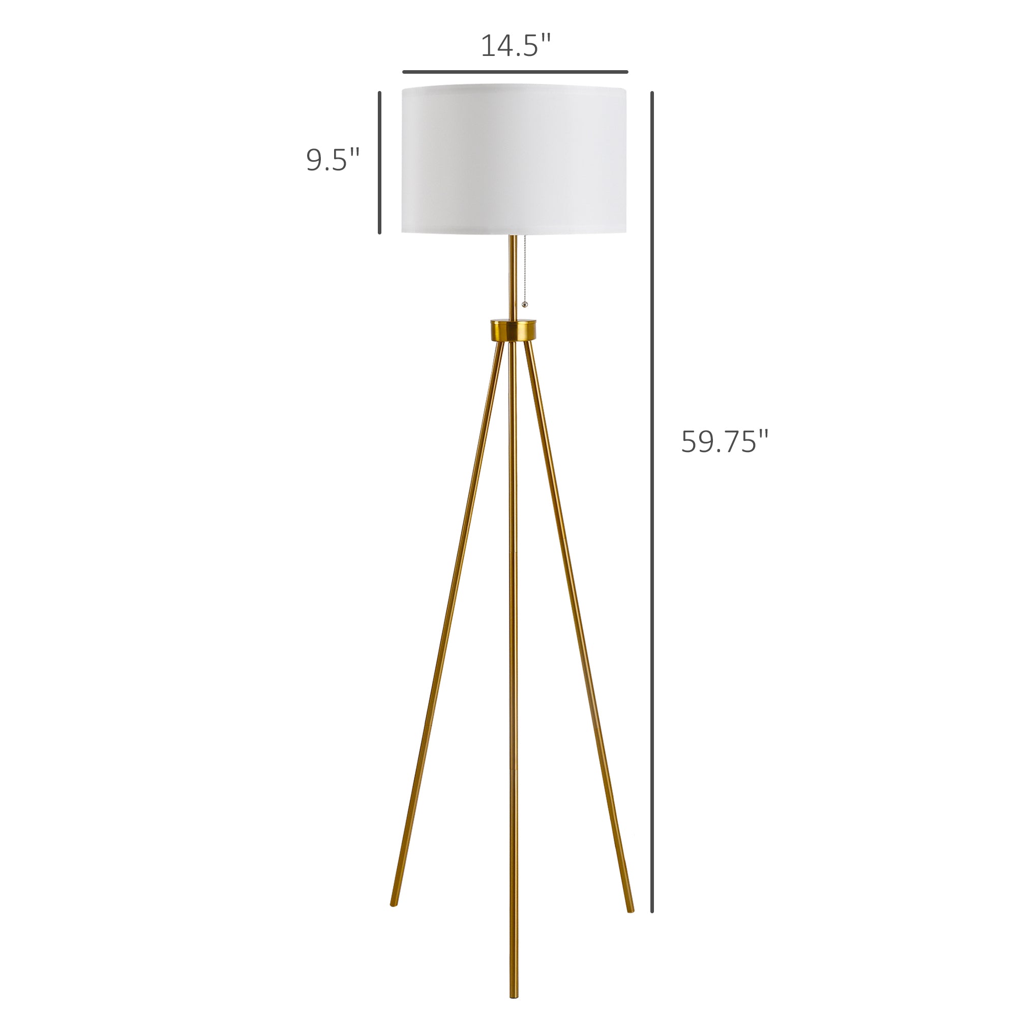 59.75" Floor Lamp Standing Lamp E26 Socket Steel Tripod Living Room - Black/Gold