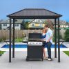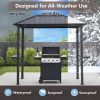 This 5×8 aluminum BBQ gazebo features a sturdy and durable aluminum frame with a single hardtop roof that effectively shields against sun and rain, providing the perfect shelter for outdoor barbecues. It includes practical shelves and serving tables for convenient cooking and storage. The spacious design is ideal for family gatherings and social dining. The sleek black finish is stylish and versatile, blending seamlessly with any outdoor setting. It’s the ultimate choice for creating your ideal outdoor BBQ area.