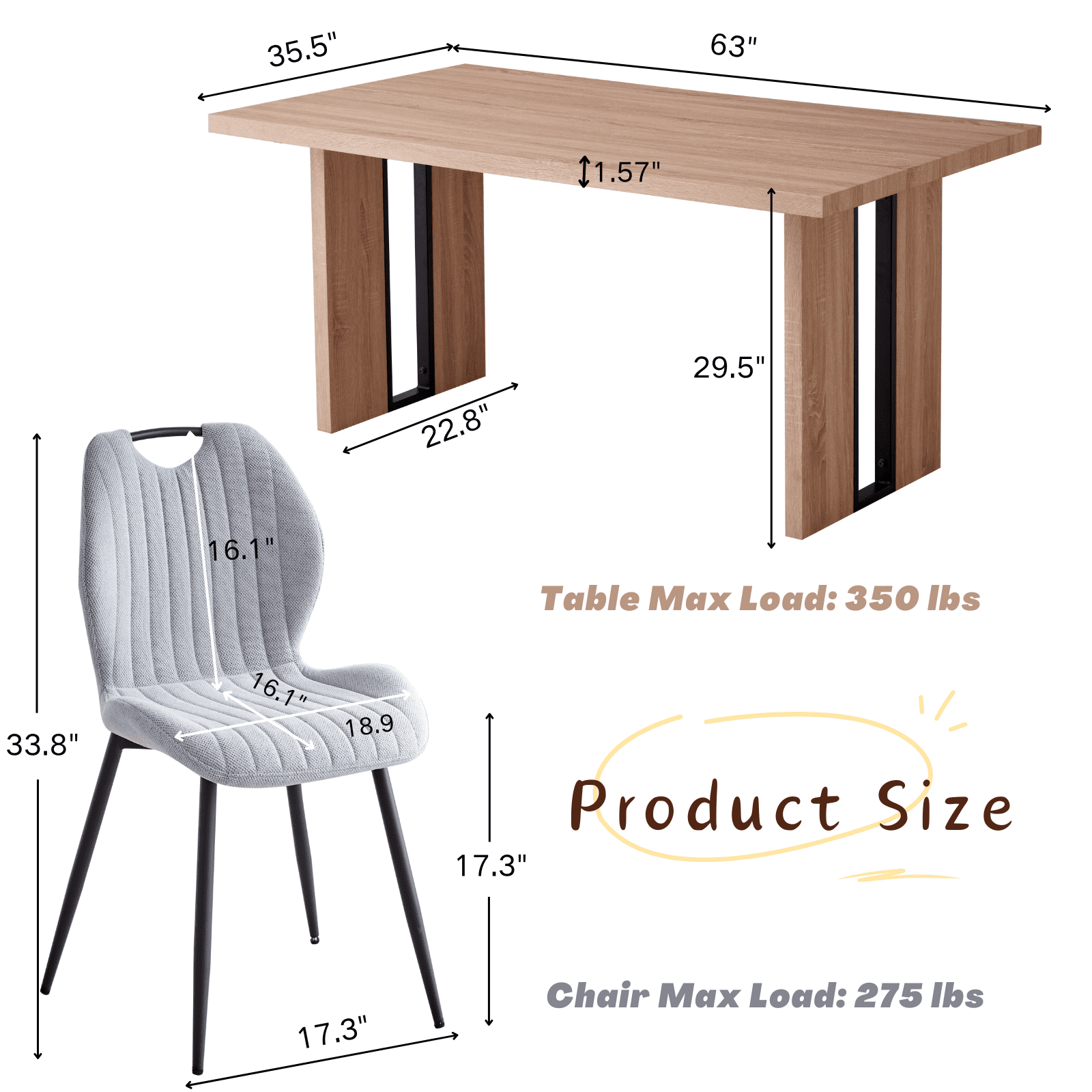 - Wider Tabletop for Family Gathering: Measuring 63 x 35.5 x 29.5 inches. Wide table top of 35.5 inches, this engineered wood table is perfectly sized for 4-6 person intimate family dinners or gatherings with friends. It perfectly balances space and intimacy, making every meal easy and enjoyable