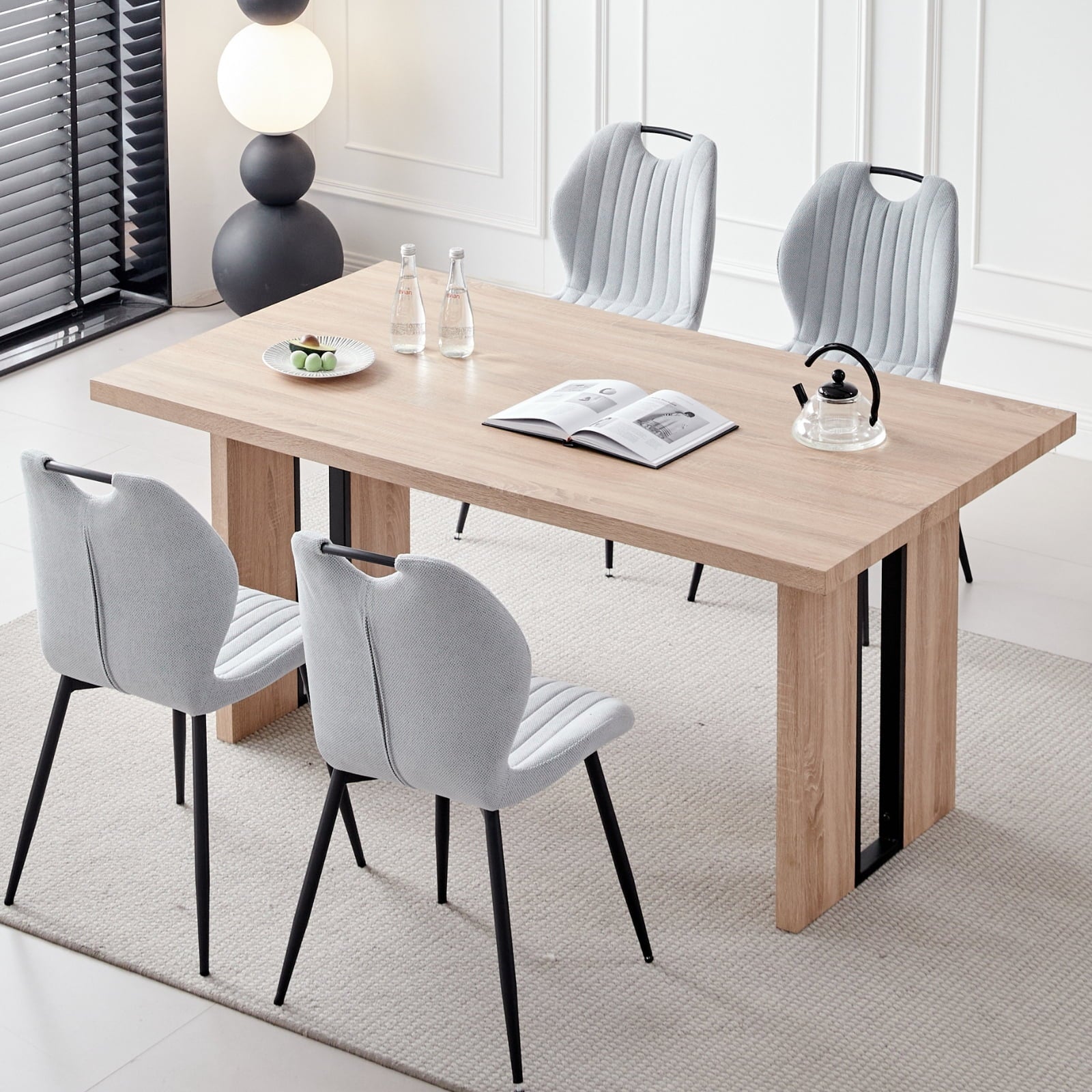 The Dining Table with chairs are a perfect addition to your dining room or kitchen. Their versatile design effortlessly blends with any home décor, enhancing the overall look of your space. Built for comfort, the table for 4 ensures a relaxing experience at every meal. Moreover, these durable table and chairs can withstand daily use, promising long-lasting utility.