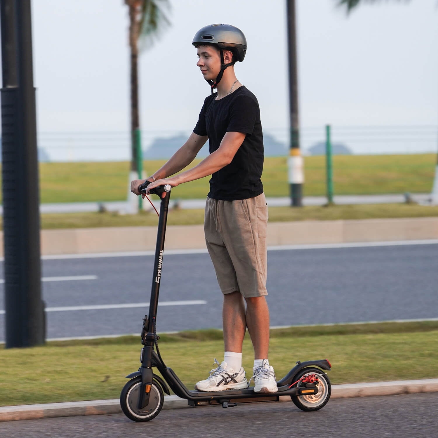 Unique Turn Signal Light and Dual Brake System: 5TH WHEEL’s Electric Scooter features the safest turn signal light design, providing left and right signals to accompany you intimately on your rides. It ensures pedestrians and vehicles are alerted of your upcoming turns, ensuring a safer ride. Additionally, the scooter is equipped with EABS and Disc brake system, provides responsive and timely braking at any speed.