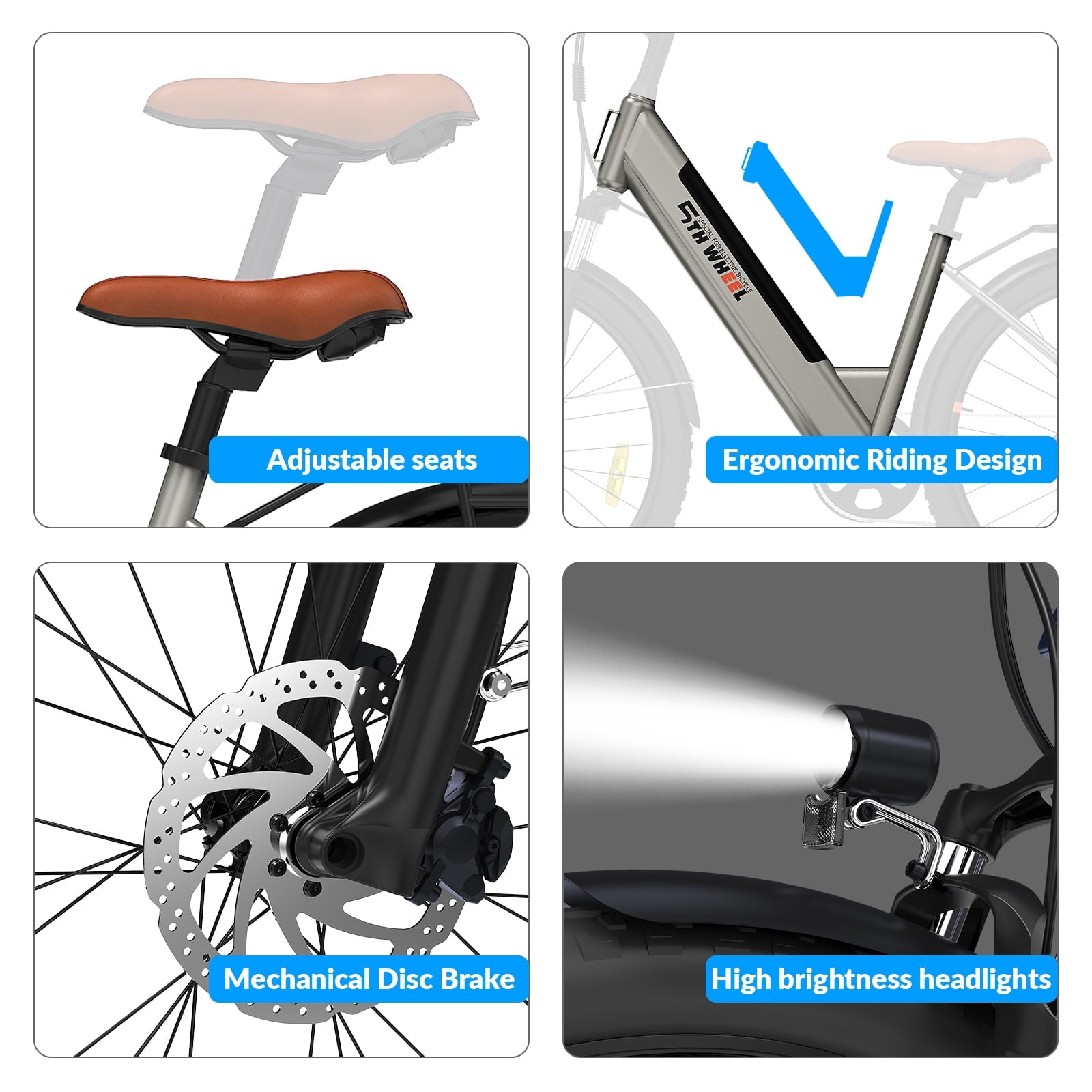 【Reliable Components】With front and rear disc brakes, the W18B empowers you with precise control over your ride. LED headlight, and rear reflector ensures night rides are as secure as daytime. W18B also comes with a bell. With these safety features, ride confidently no matter the time of day or road conditions.