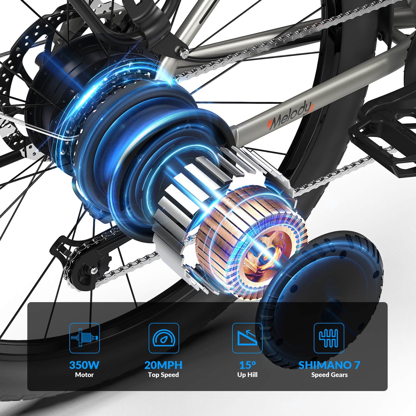 * Front shock absorber + off-road tire pattern, can adapt to different road conditions (asphalt, gravel, etc.) and scenarios (commuting, excursion, leisure, etc.)