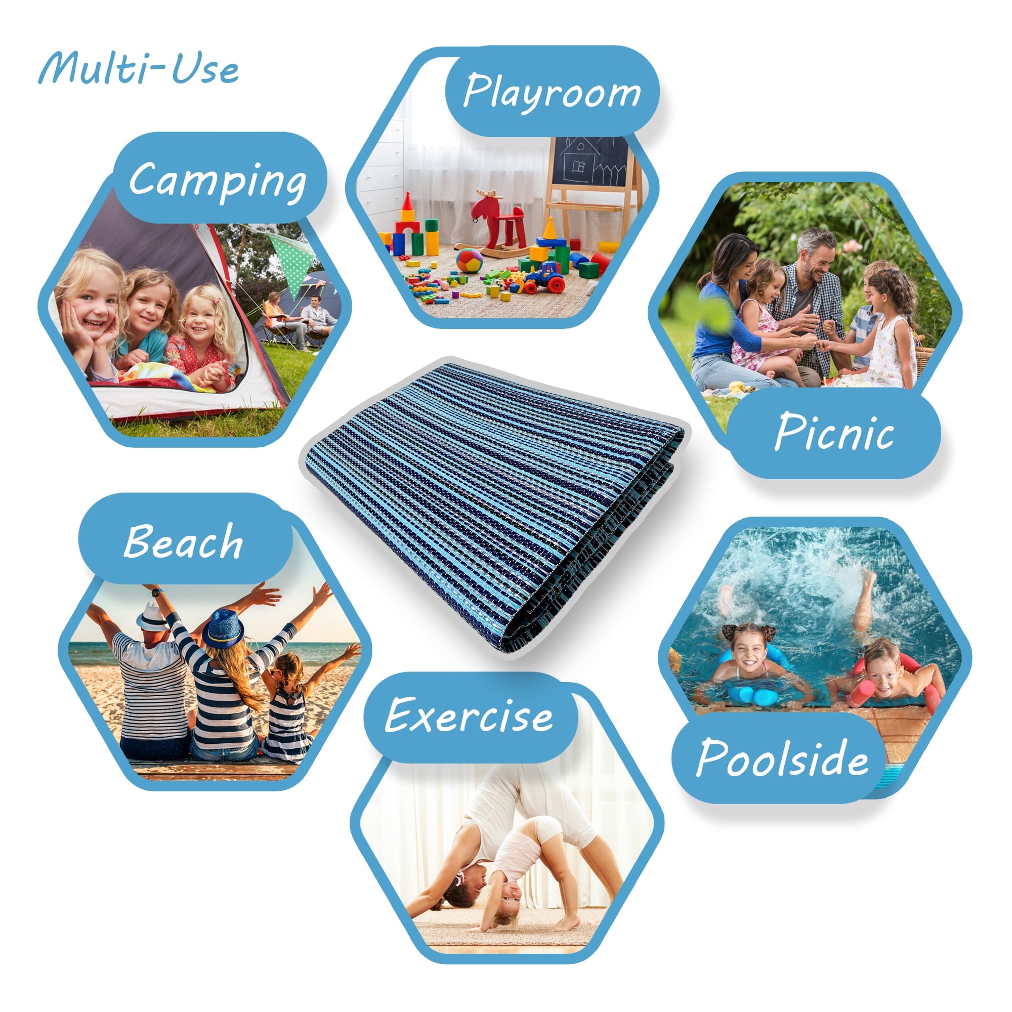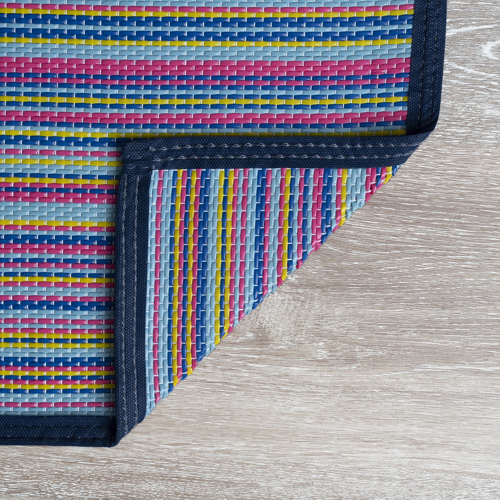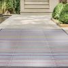This multi-use foldable, waterproof outdoor rug is perfect for any adventure. Use this portable, reversible area rug mat for playroom, exercise, poolside, camping, or picnic. In a colorful candy stripe pattern. Natural stain-resistance and no additional treatments makes it kid and pet friendly. Vacuum or shake to remove debris. Spot clean or clean outside with water; spray with garden hose to rinse. Allow to dry thoroughly. Contemporary 5×7 Area Rug (5′ x 6’11”) Stripes Red, Orange Indoor Outdoor Rectangle Easy to Clean. Good fit for family room, deck, patio, porch, gazebo, veranda, nursery. Vacuum or shake to remove debris. Spot clean or clean outside with water; spray with garden hose to rinse. Allow to dry thoroughly.