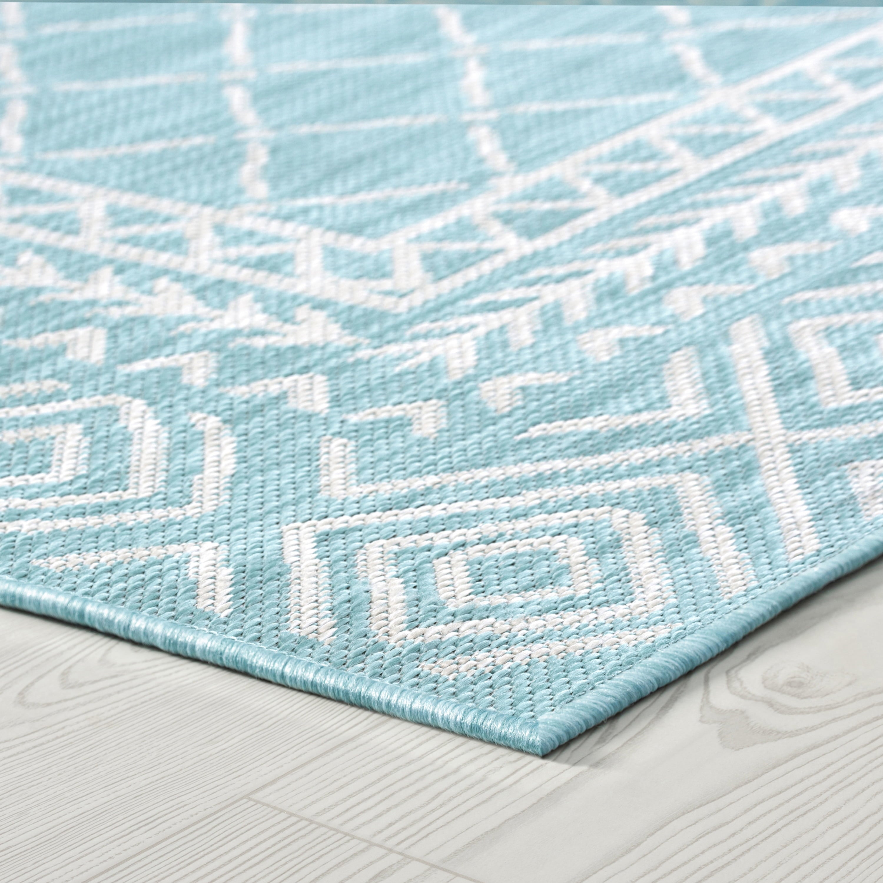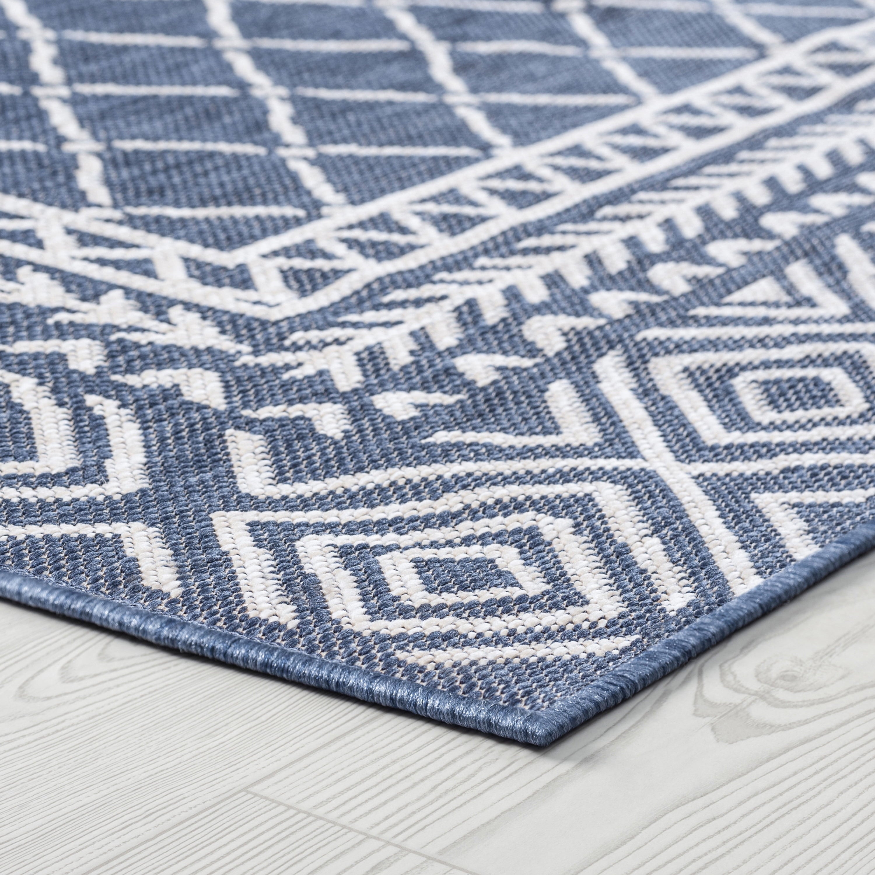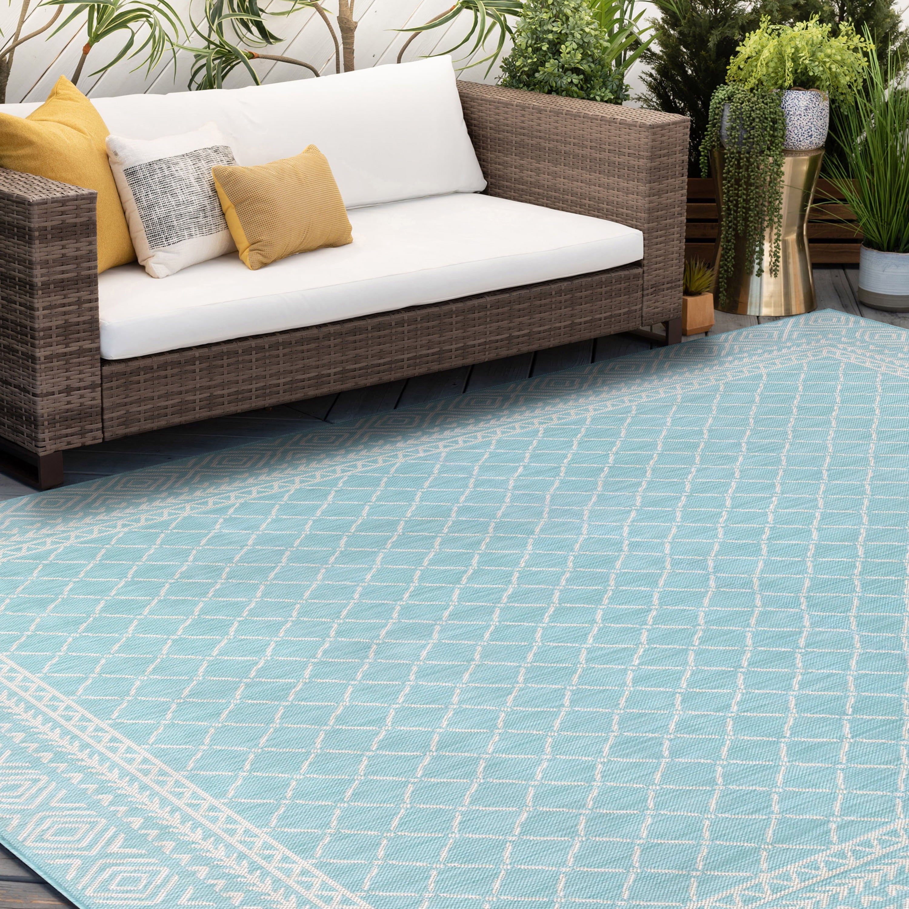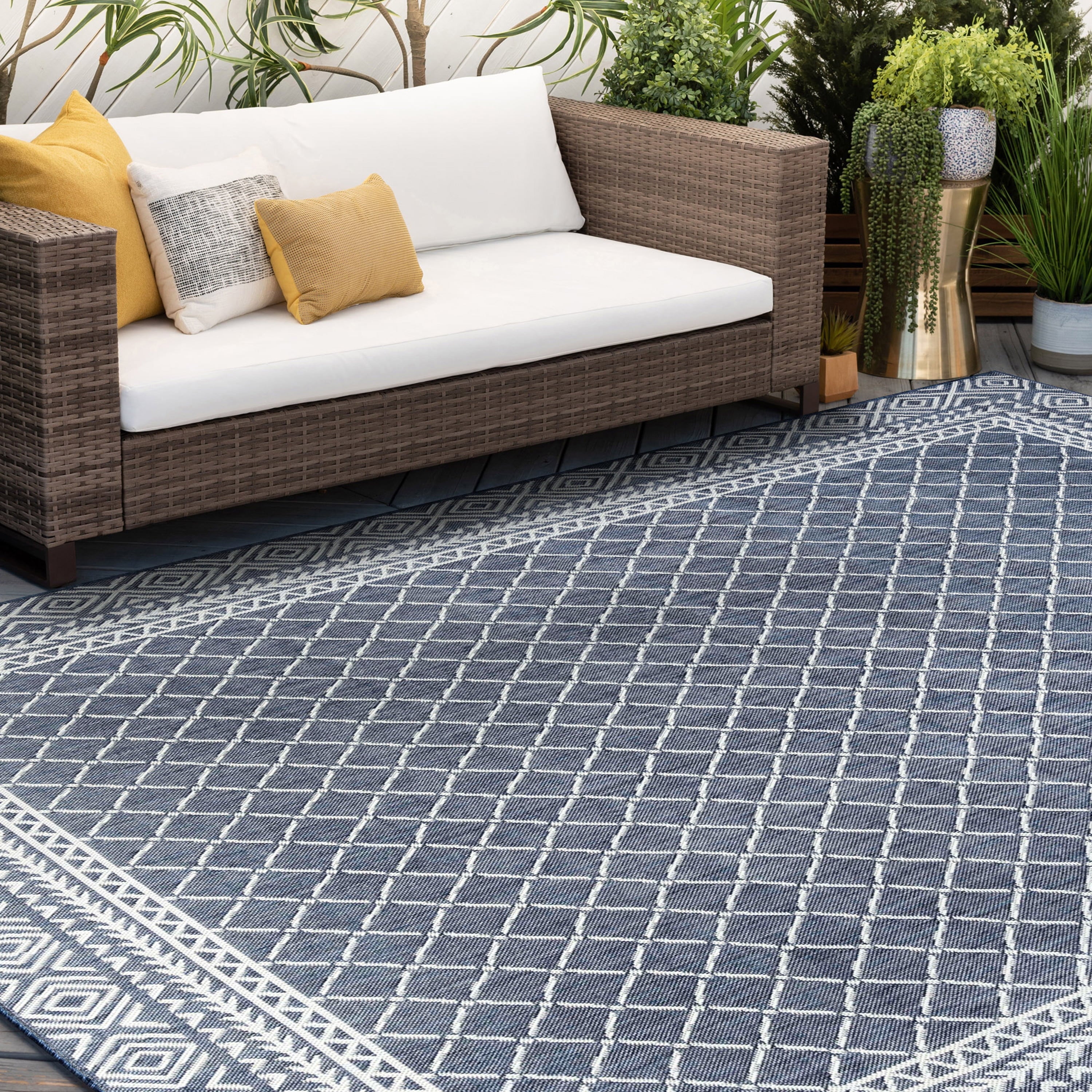 - 5×8 Water Resistant, Indoor Outdoor Rugs for Patios, Front Door Entry, Entryway, Deck, Porch, Balcony | Outside Area Rug for Patio | Blue, Diamond | Size: 5’3” x 7’3”