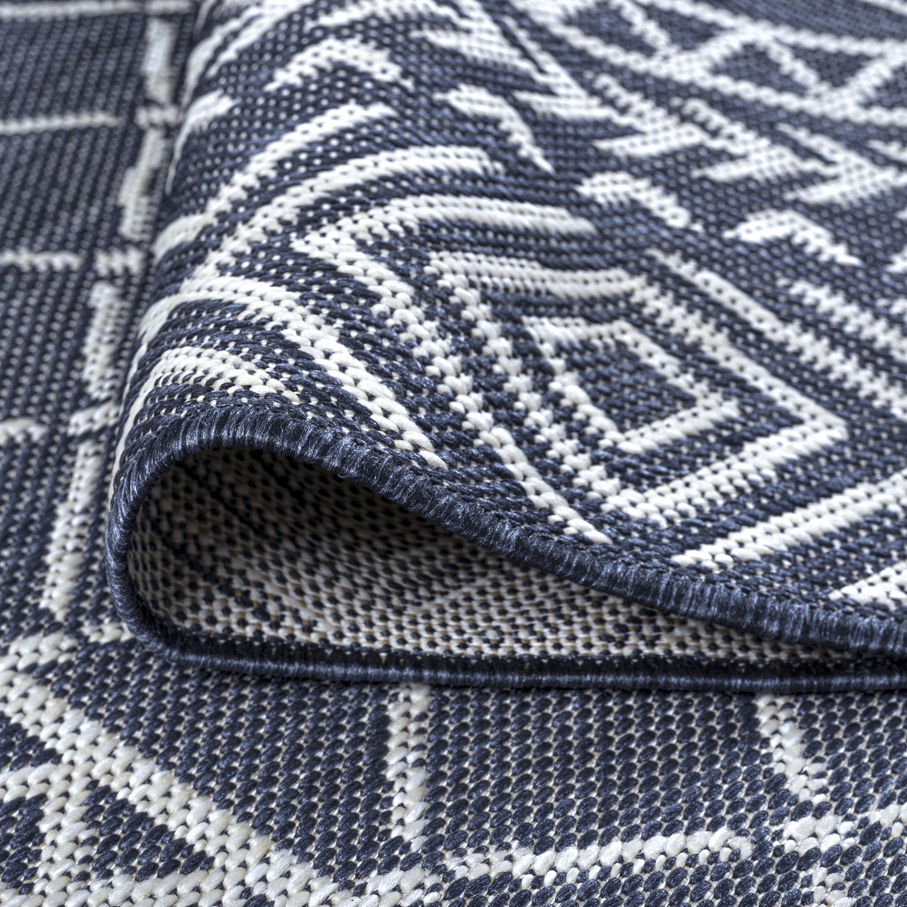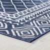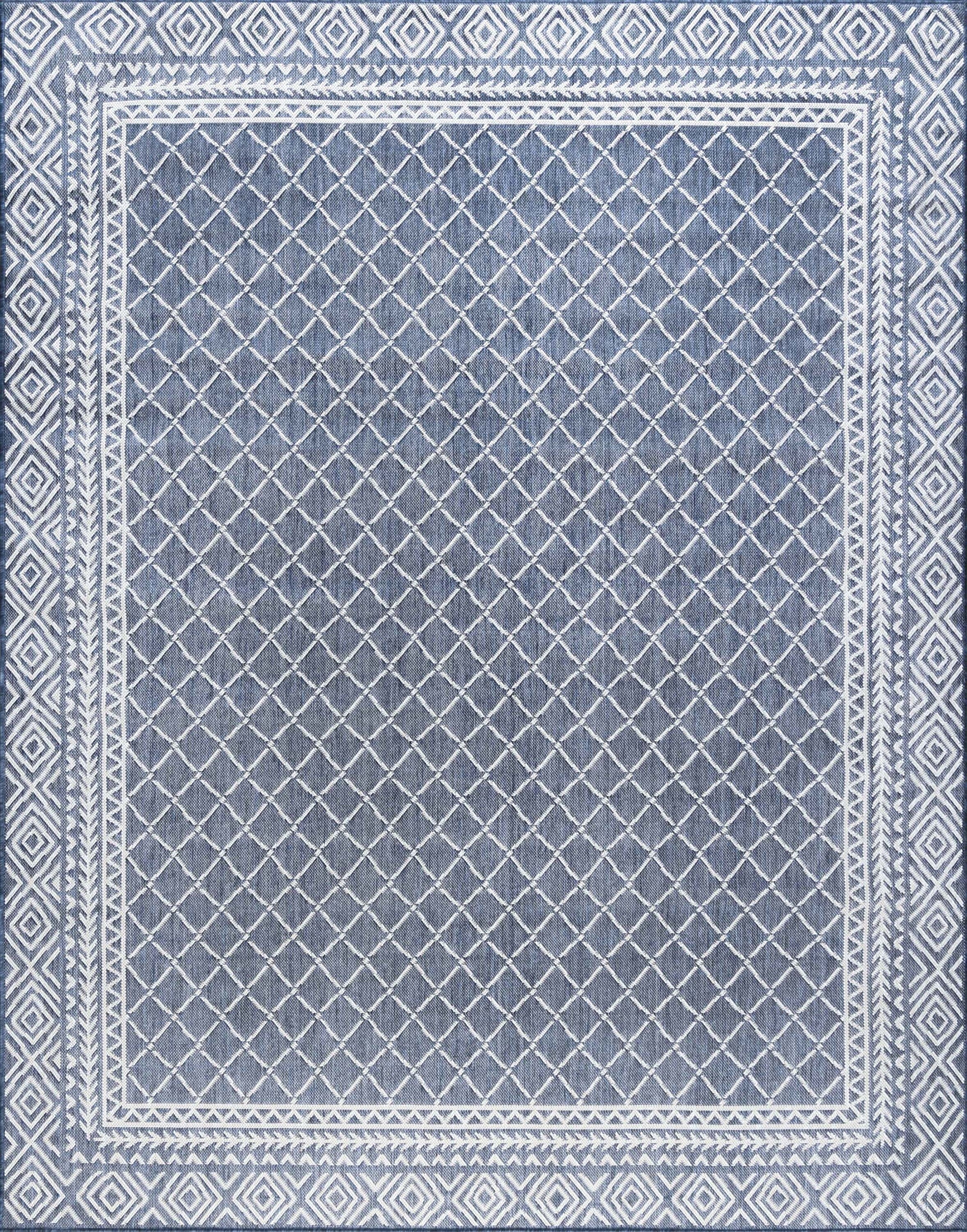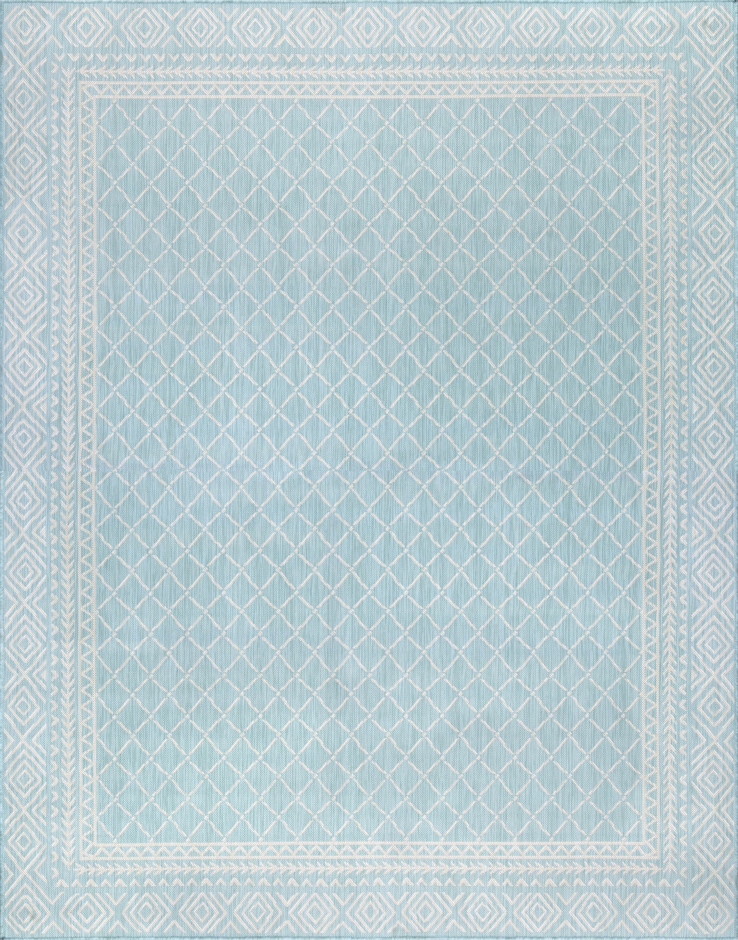 Add a touch of sophistication to your indoor or outdoor area with this transitional border Moroccan area rug. The interior diamond pattern is enhanced by a distinctive patterned edge and goes well with Scandinavian style. Treated fibers resist staining and fading, this rug is built to perform. Perfect for a family room, sunroom, porch, deck, den, living room, playroom, nursery. May be cleaned outside with mild detergent and garden hose, allow to dry thoroughly. Transitional 5×8 Area Rug (5’3” x 7’3”) Diamond Blue, Cream Indoor Outdoor Rectangle Easy to Clean. Good fit for family room, deck, patio, porch, gazebo, veranda, nursery. Vacuum or shake to remove debris. Spot clean or clean outside with water; spray with garden hose to rinse. Allow to dry thoroughly.