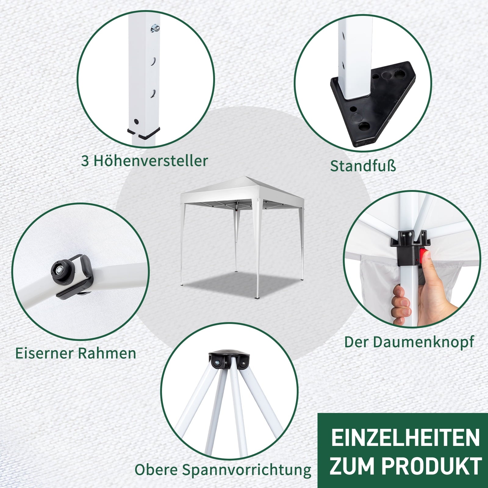 • PRO-GRADE STABILITY – 1.2″ powder-coated steel legs (3 heights: 6.5’/7.5’/8′) with anchor holes withstand 25mph winds when staked.