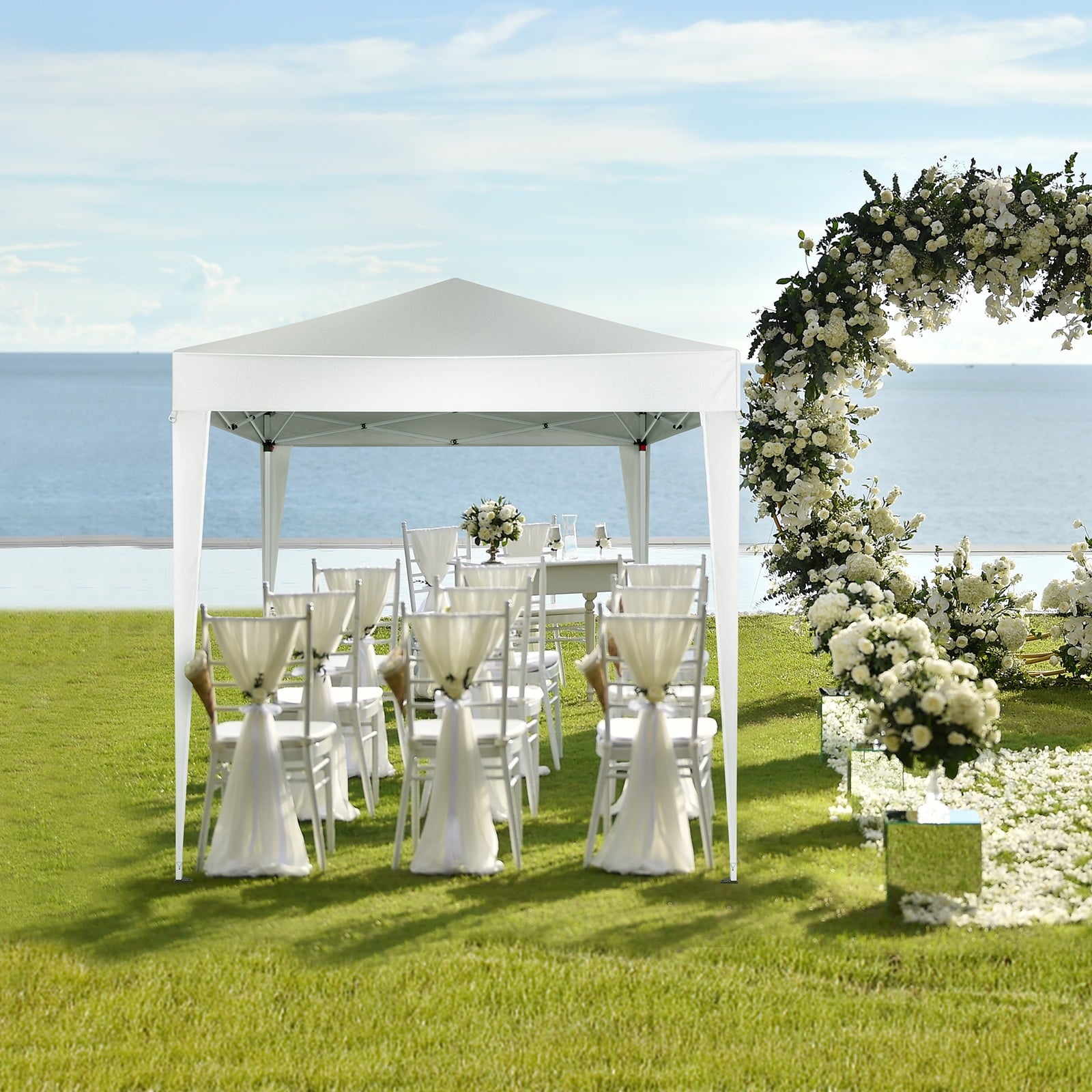 Sun Control: Reflective white fabric lowers interior temp by 15°F vs dark canopies.► Smart Adjustability