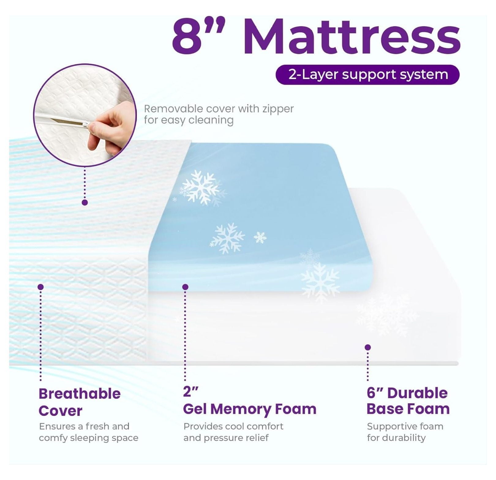 - Sleep Cool, Sleep Well – Keep your nights cool and sweat- with our cooling gel memory foam. Experience a refreshing, undisturbed sleep every night.