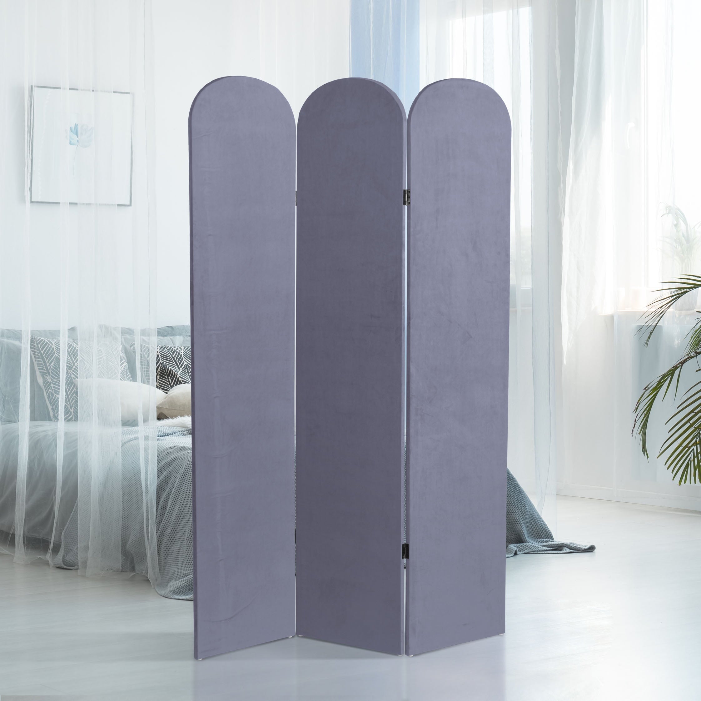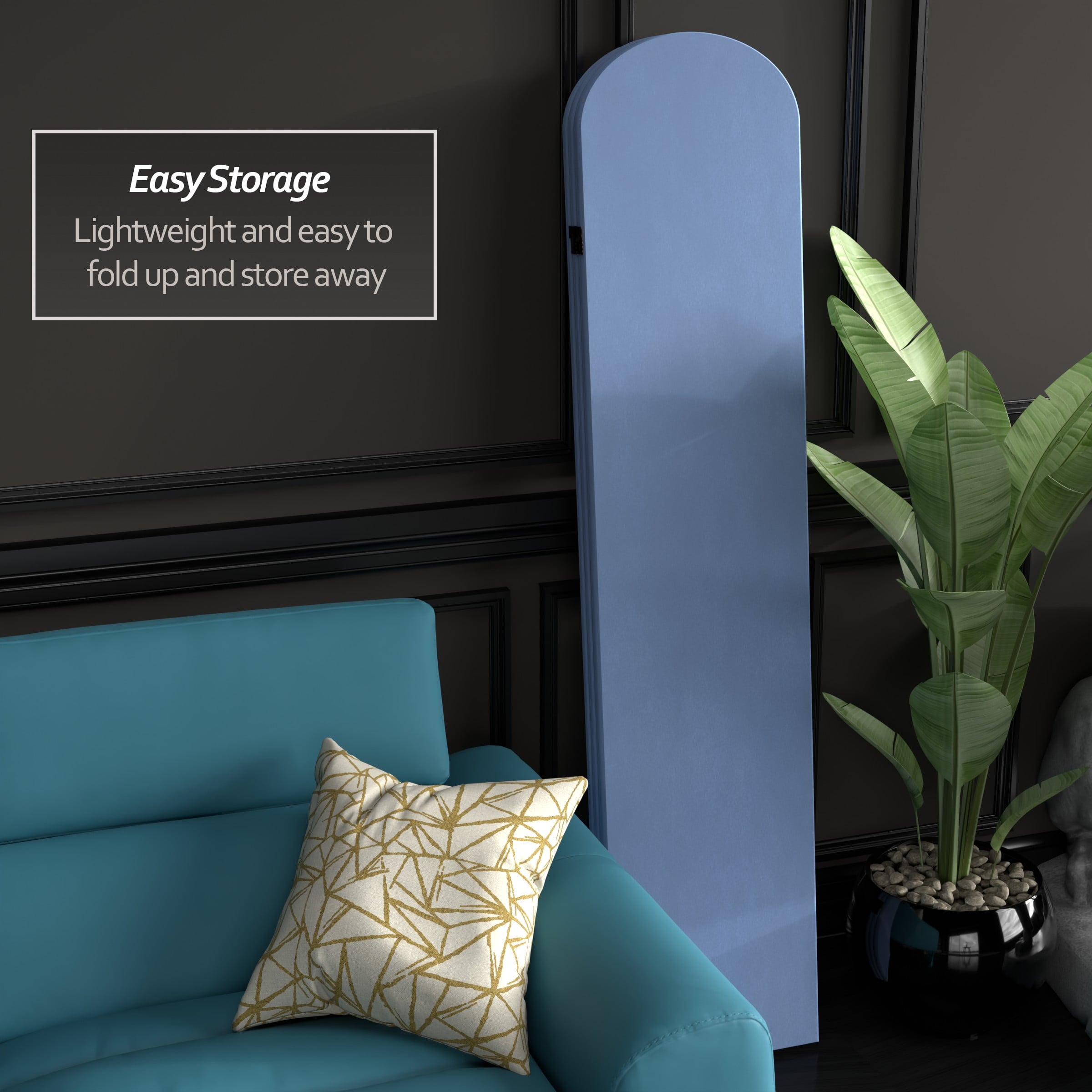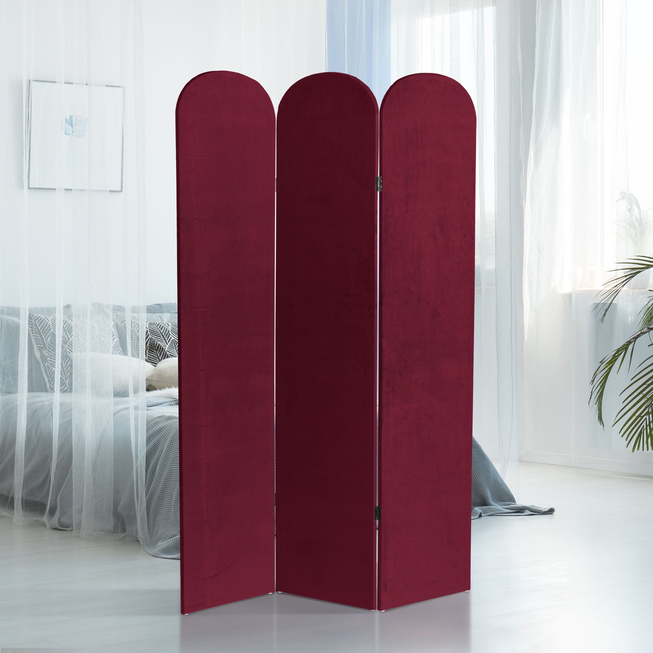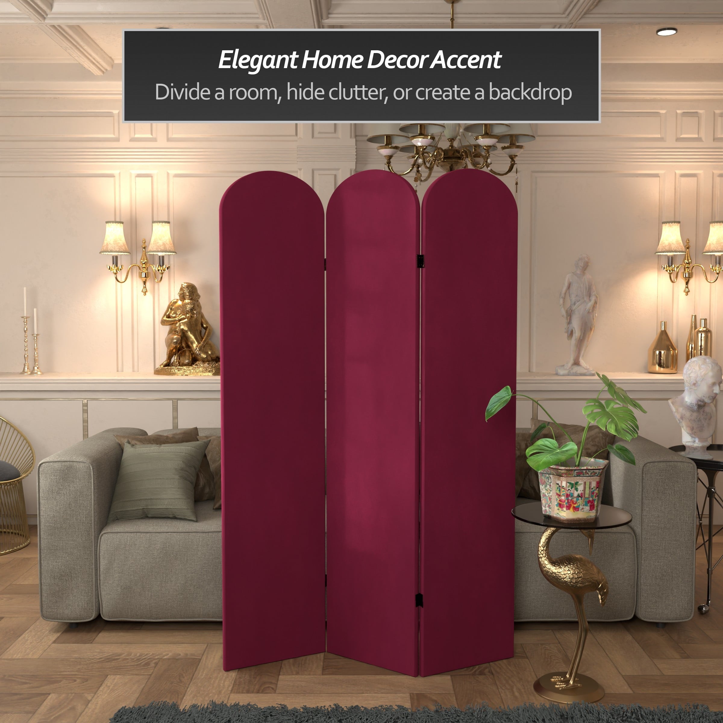 The classic arched panels on this gorgeous screen give it a majestic quality. The texture of the fabric lends a heavy feeling to the screen, while the lightweight wood frame makes it eminently portable. It’s the perfect backdrop for your next zoom meeting, to hide an unsightly area, or create an intimate nook in a large room.