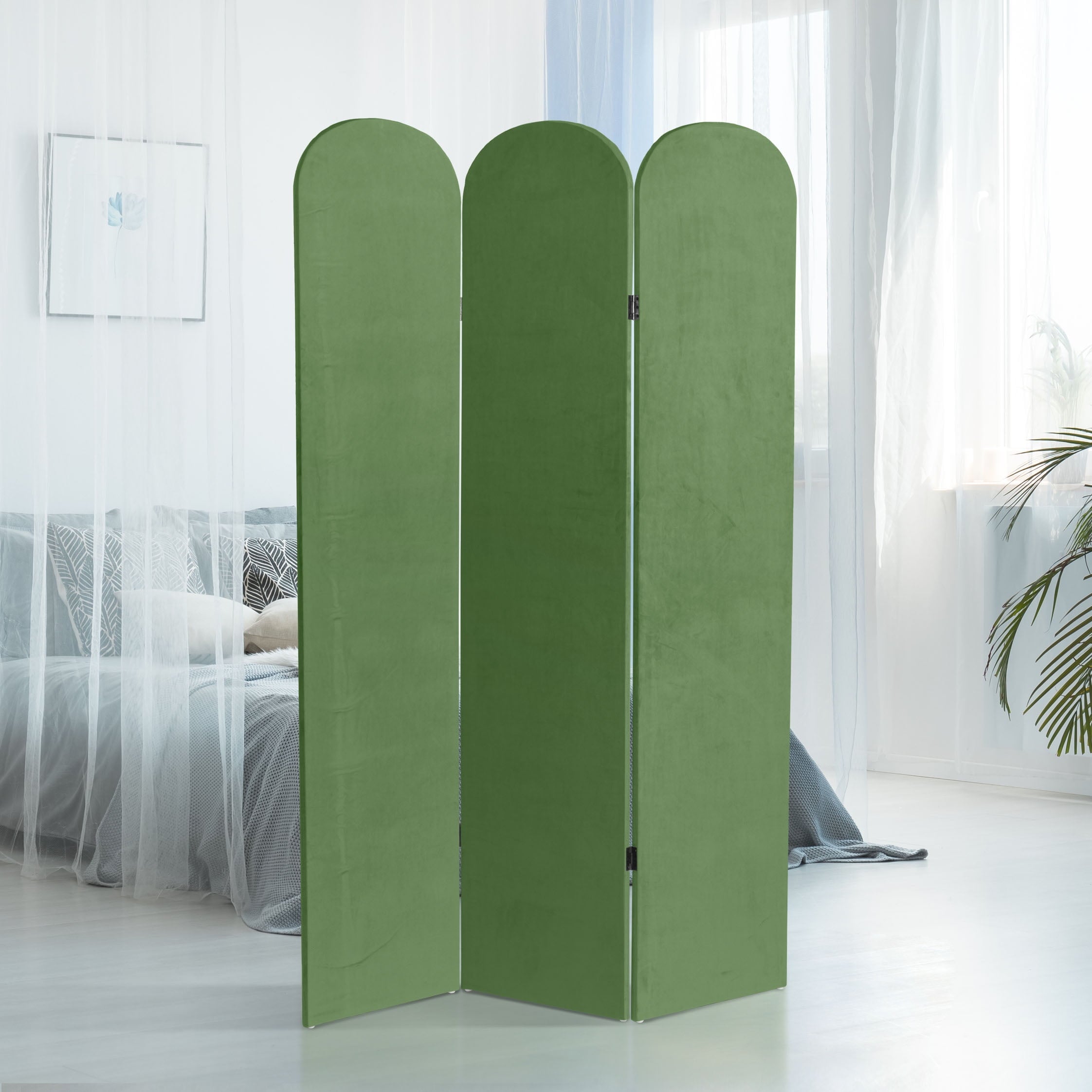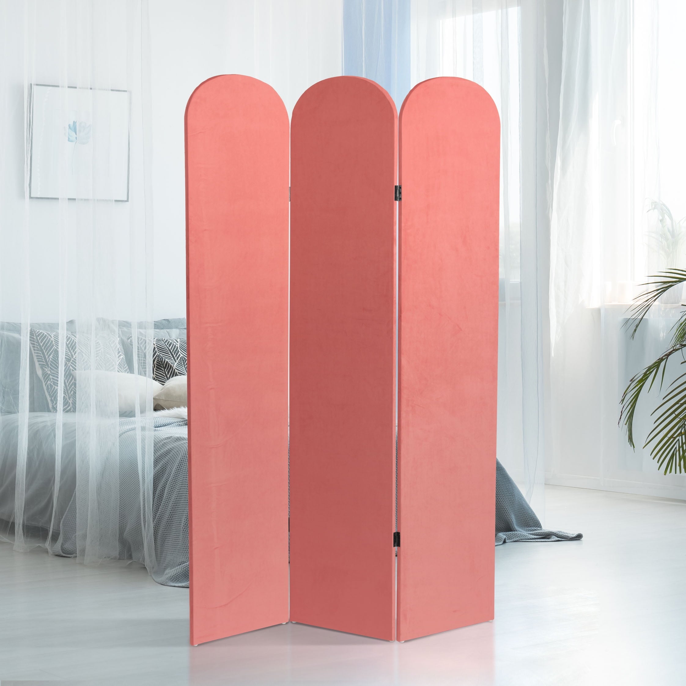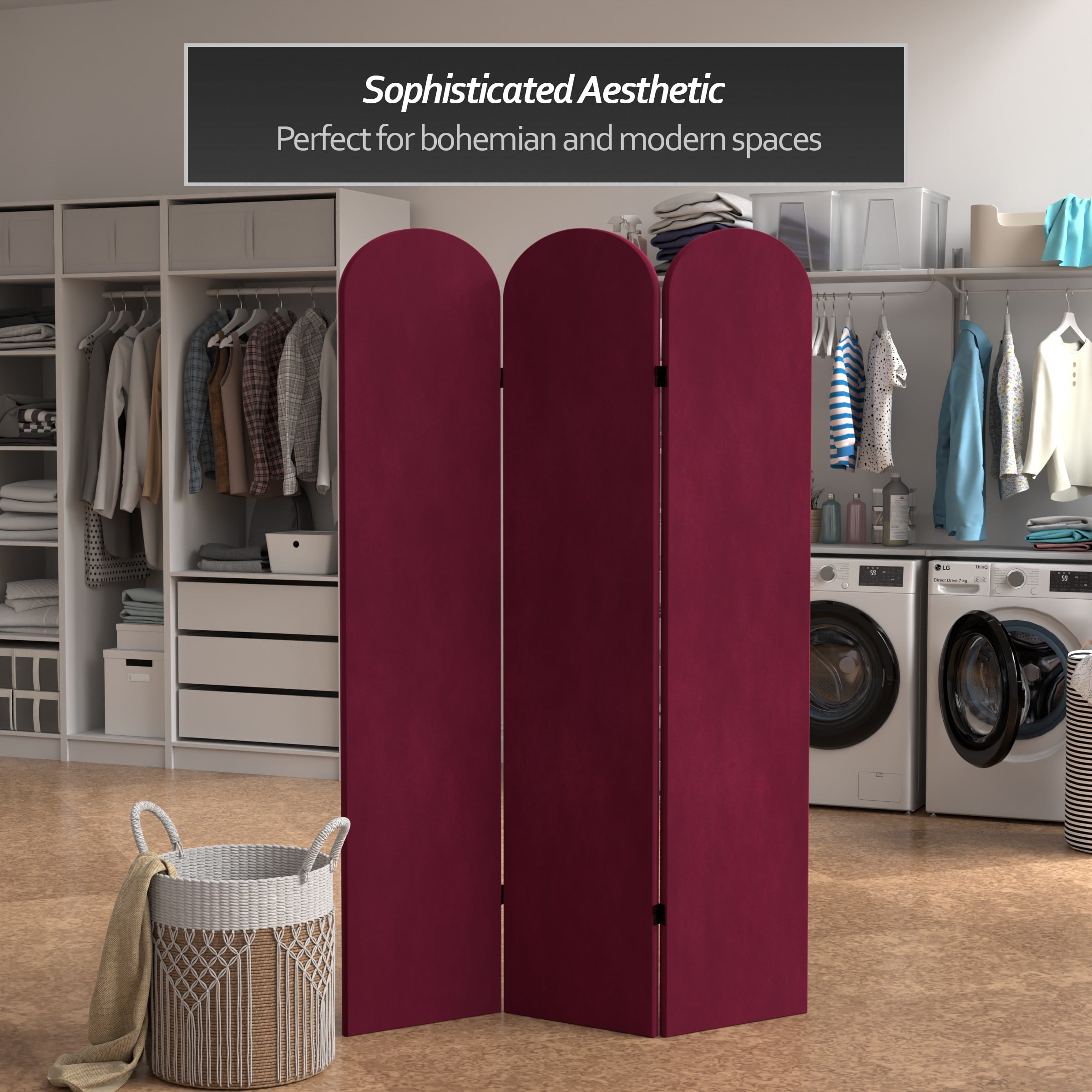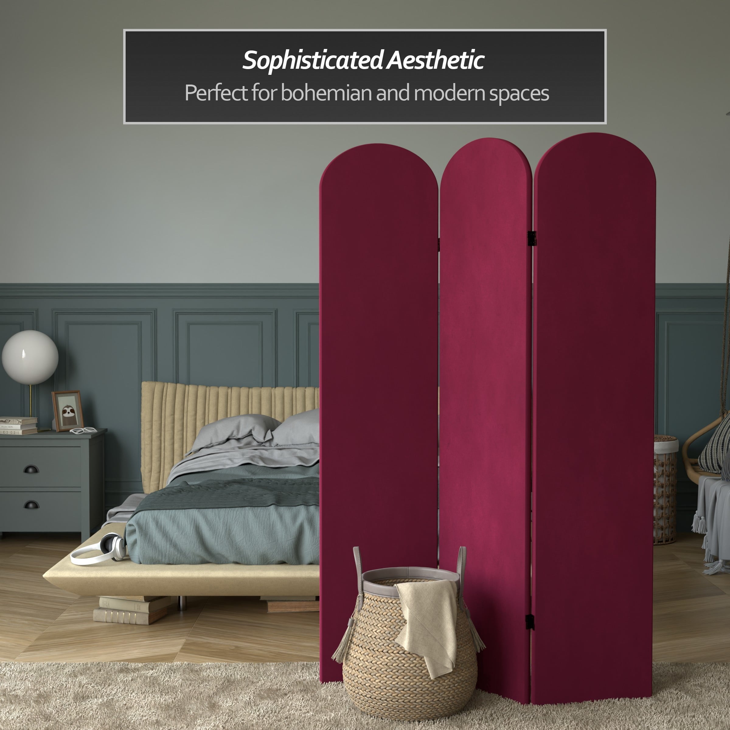 The classic arched panels on this gorgeous screen give it a majestic quality. The texture of the fabric lends a heavy feeling to the screen, while the lightweight wood frame makes it eminently portable. It’s the perfect backdrop for your next zoom meeting, to hide an unsightly area, or create an intimate nook in a large room.