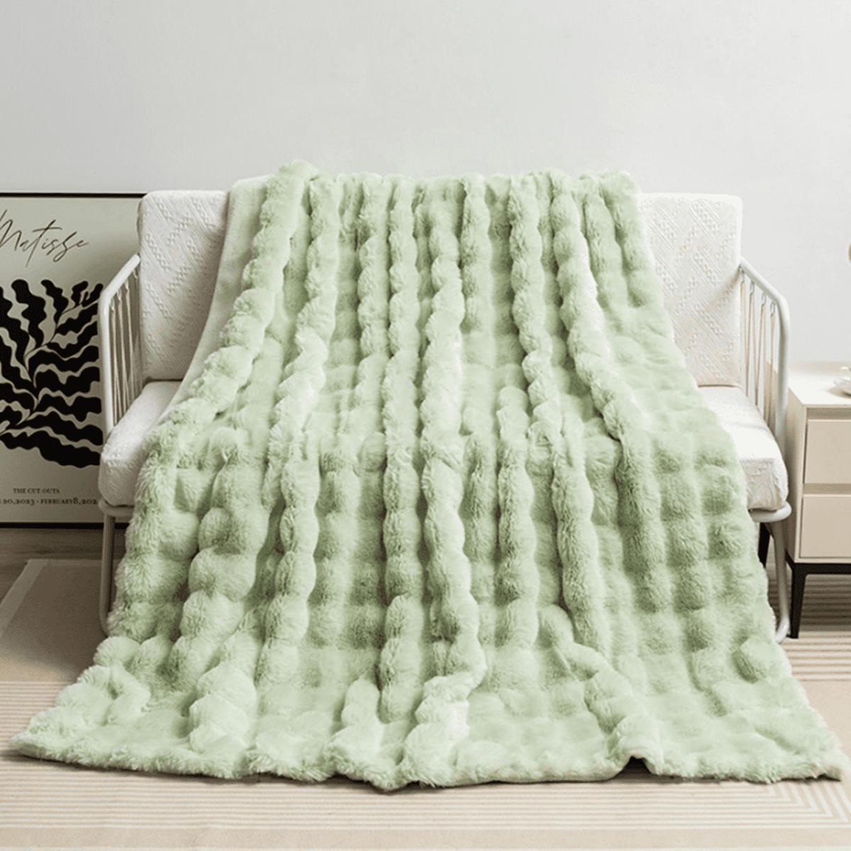 Featuring a bubble shape high-low wave design, this throw blanket is not just functional but also a statement piece for any room. Its plush feel and luxurious look can easily match any decor and elevate the style of your bedroom, living room, or any other space.