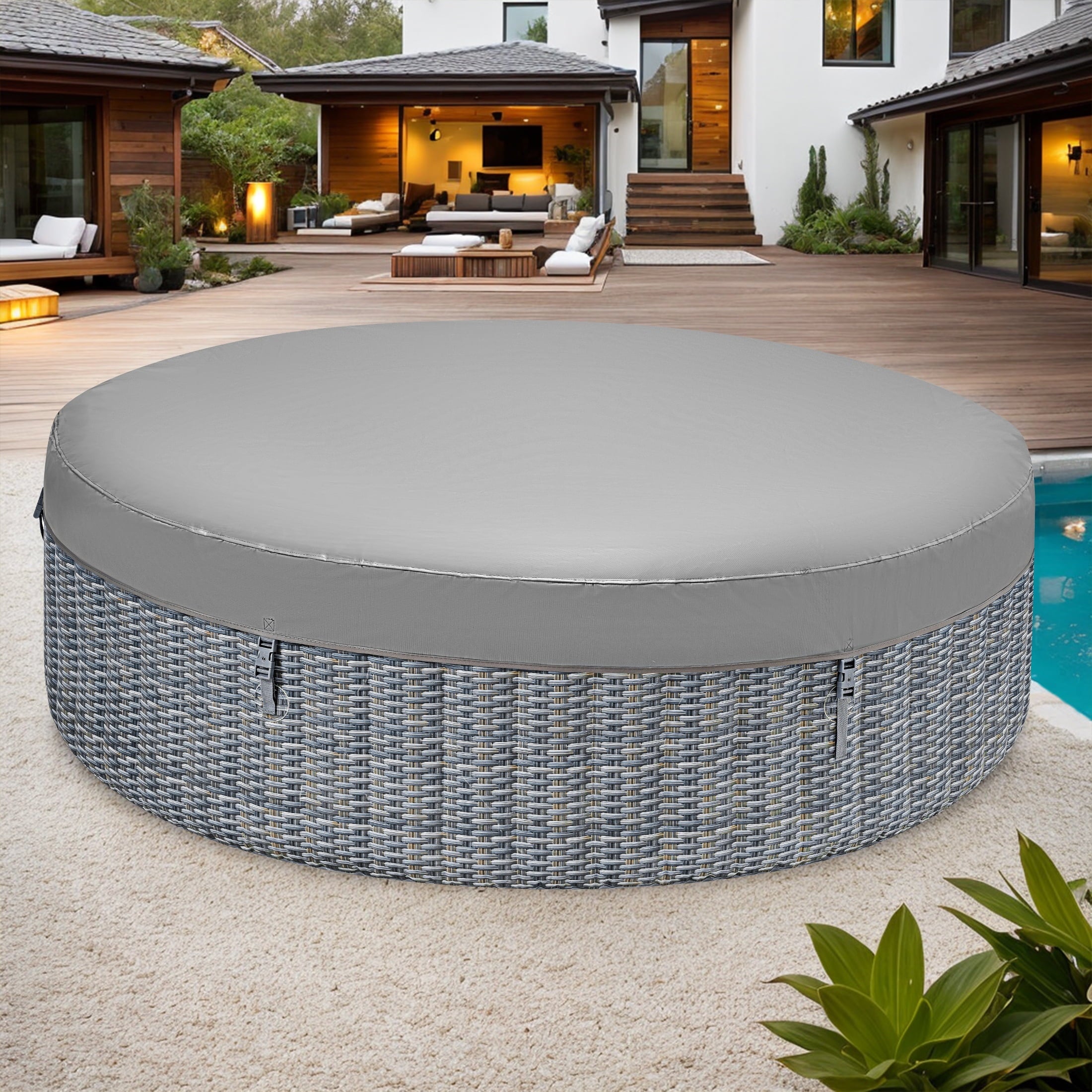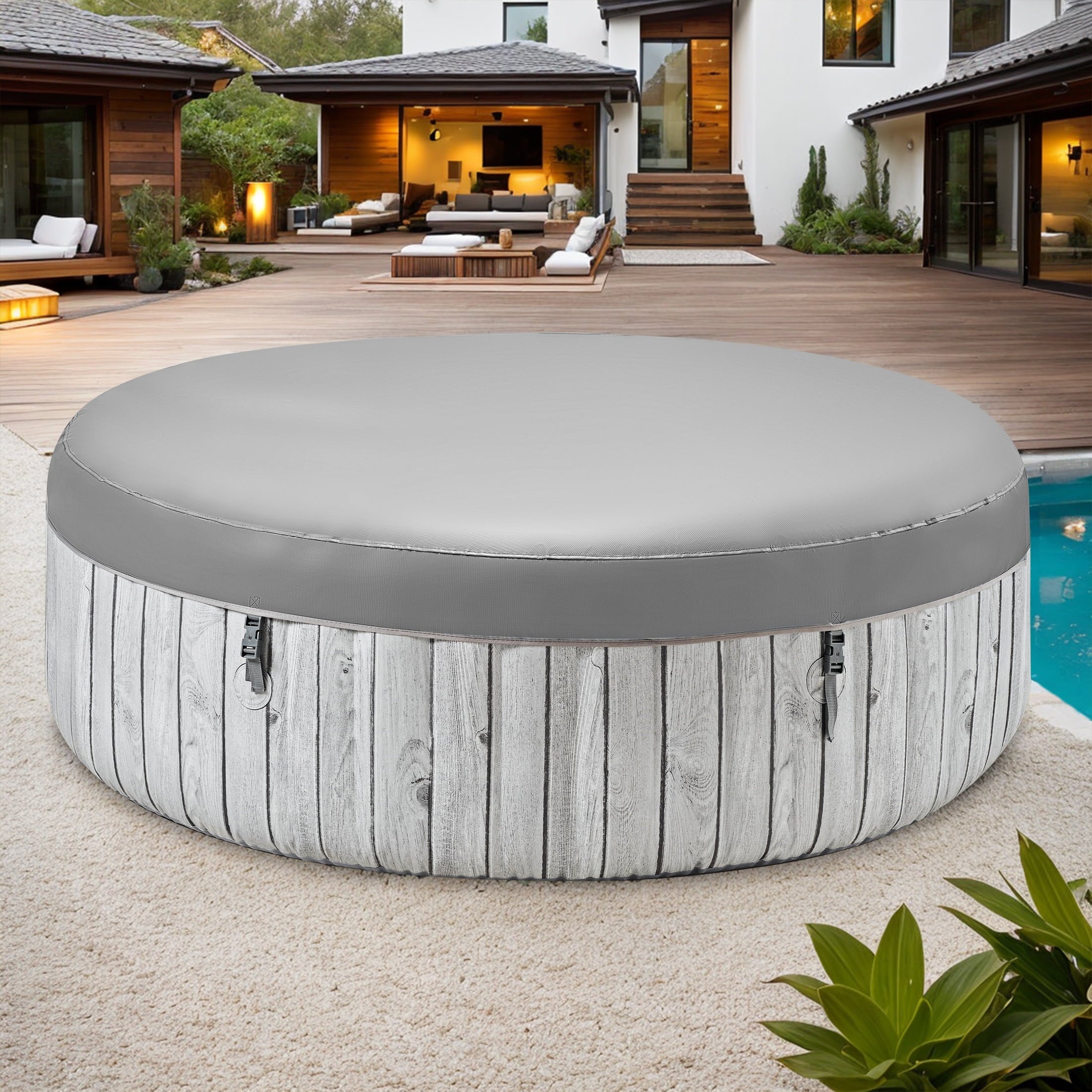 Segmart inflatable hot tub is a portable, easy-to-set-up spa that provides the relaxation and comfort of a traditional hot tub without the permanent installation. Made of durable, puncture-resistant PVC materials, it can be inflated quickly and filled with water to create a soothing experience with adjustable jets and heated water. It accommodates 5-7 people. It is perfect for both indoor and outdoor use, offering a convenient way to unwind and enjoy a warm, bubbly soak year-round.