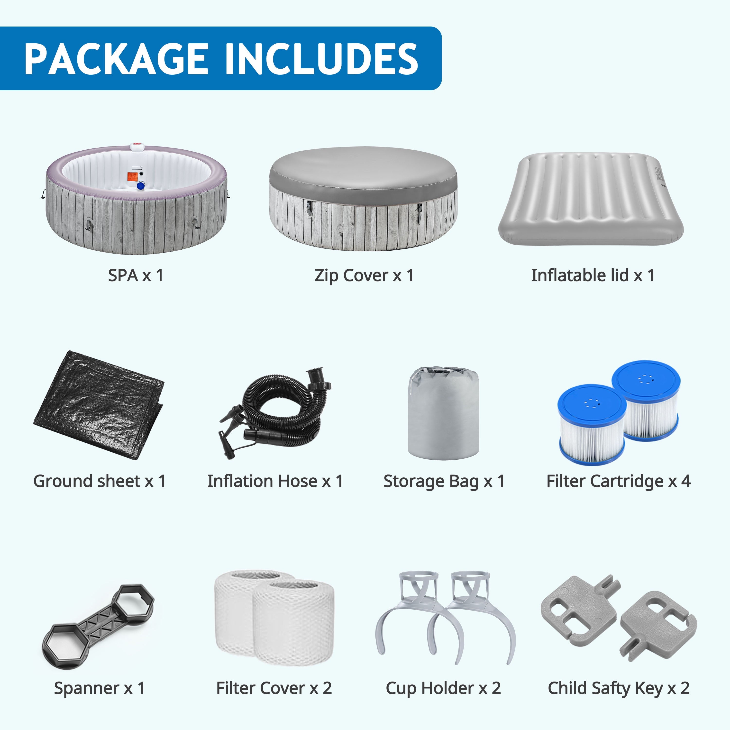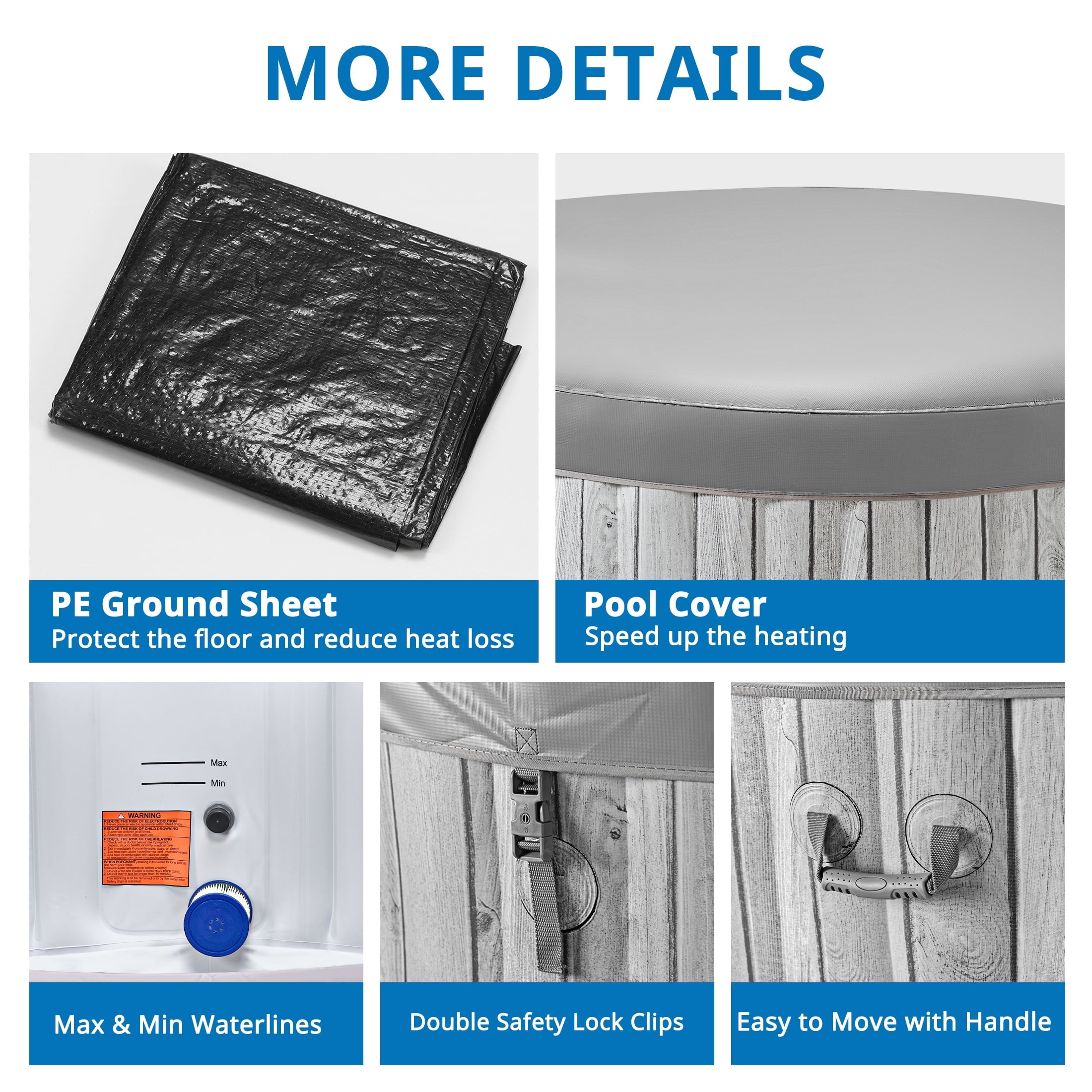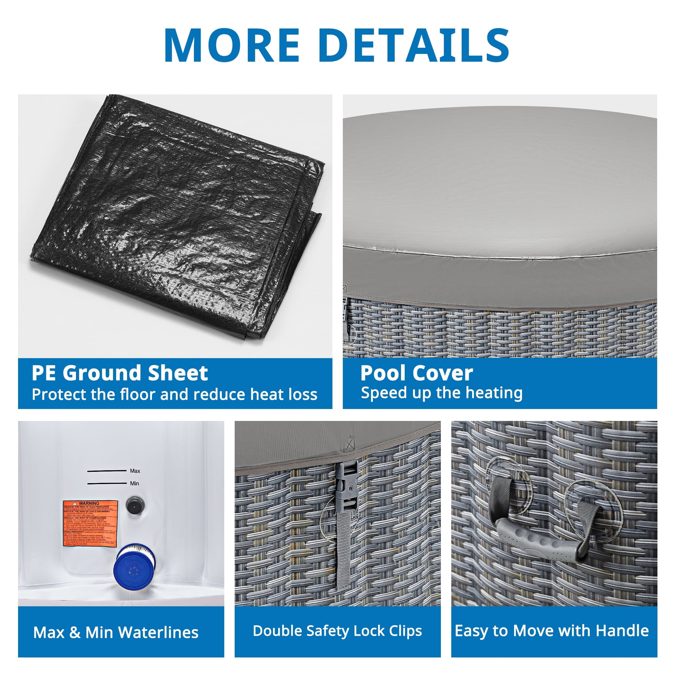 ♨️【Upgraded Hot Tub】Unlike other hot tubs, our hot tub has a built-in electric air pump that extends the life of the electric air pump. The thickened PVC has strong stability and durability. And the ground sheet can protect the bottom of your hot tub against rough surfaces and debris.