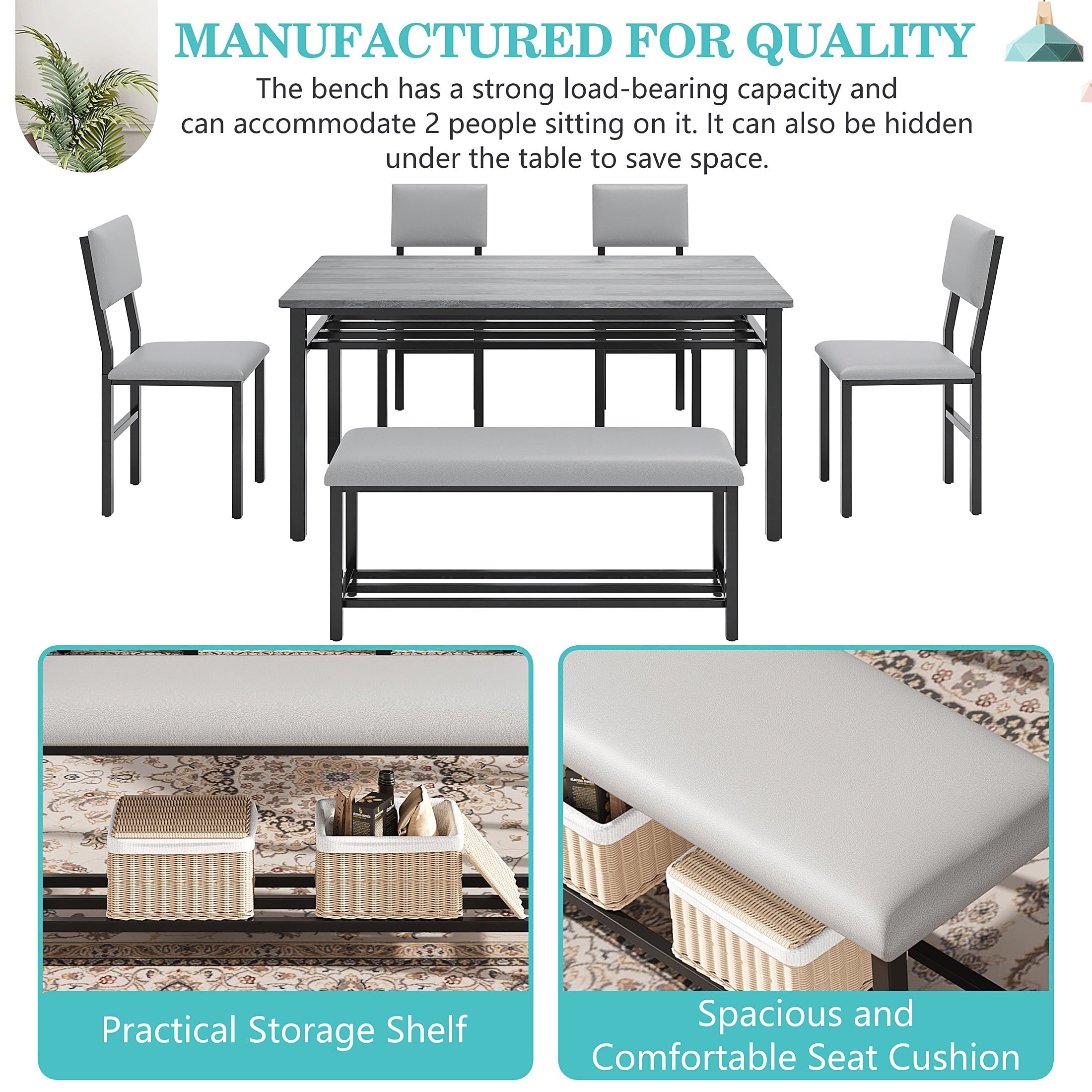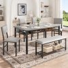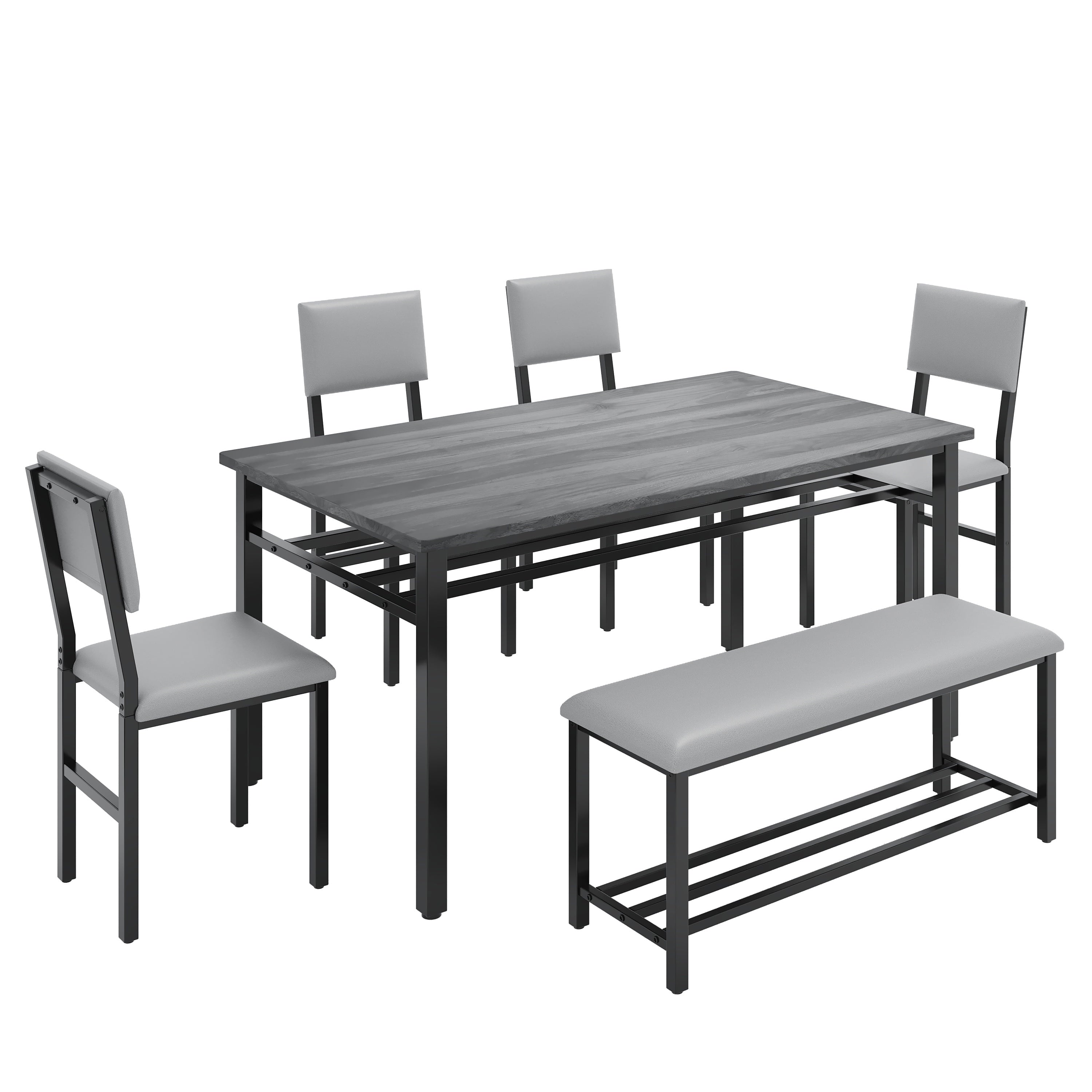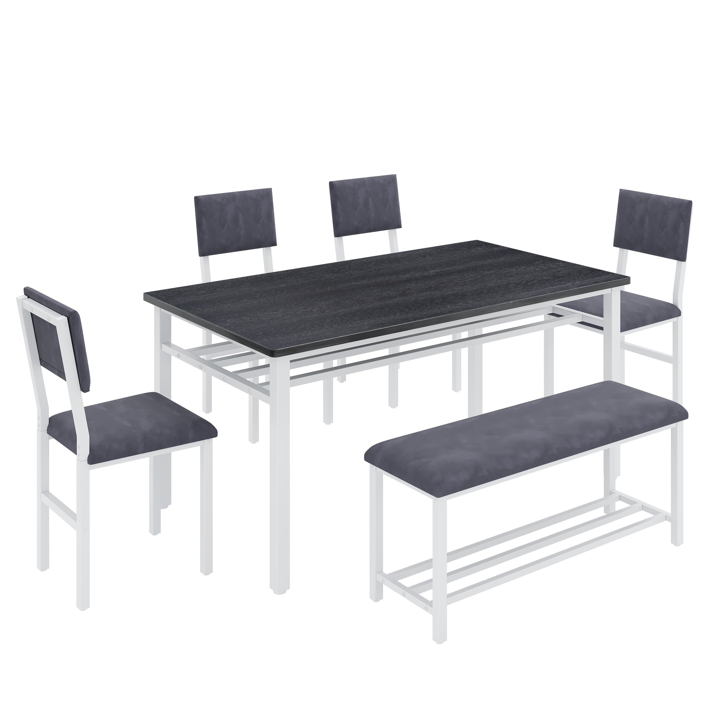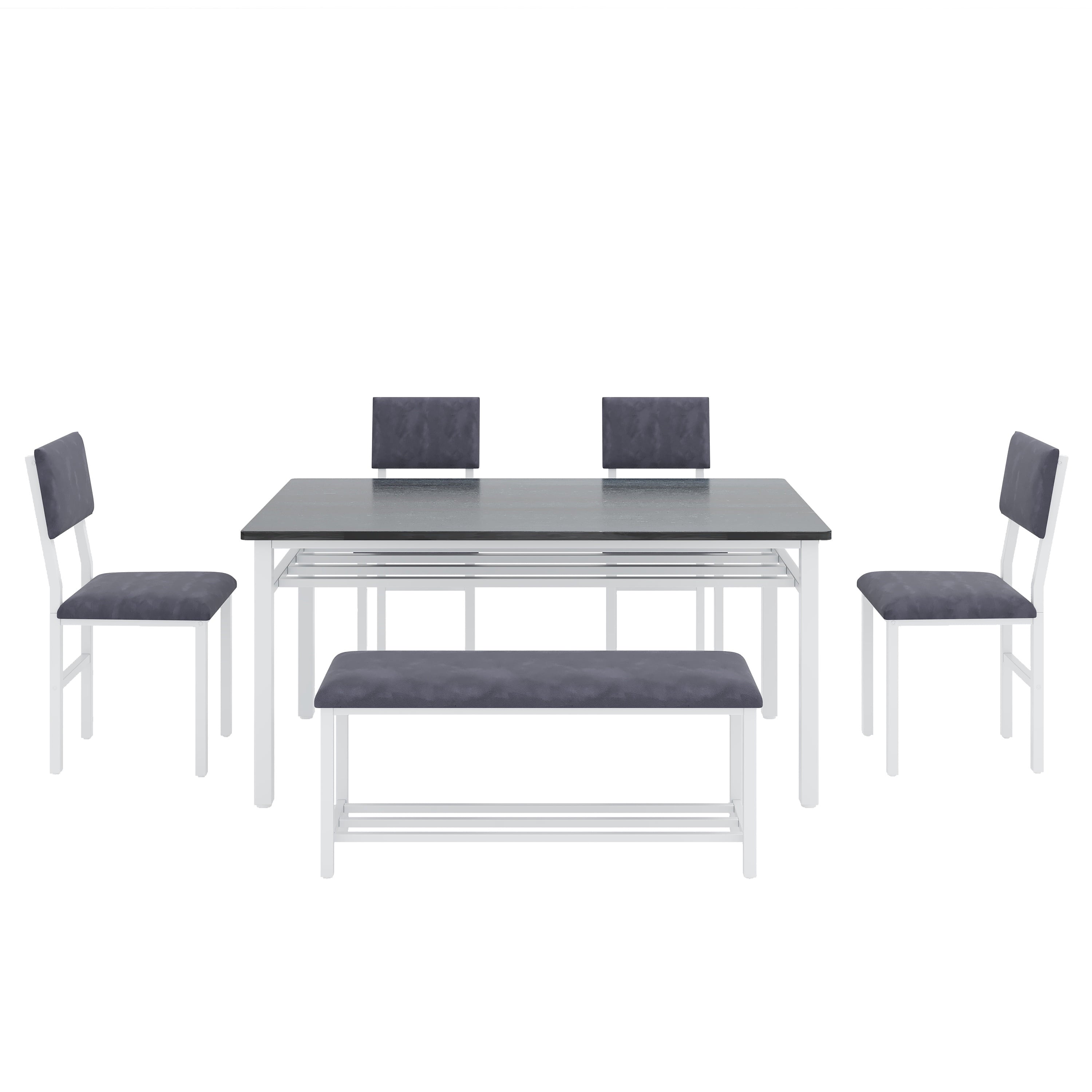 Perfect for Family Gatherings — This 6 piece dining set is designed to accommodate your entire family. With 4 comfortable chairs and a versatile bench, it comfortably seats 6. The spacious 47.2 x 27.56 inch tabletop provides ample room for all your meals, drinks, and activities, perfect for large family meals.