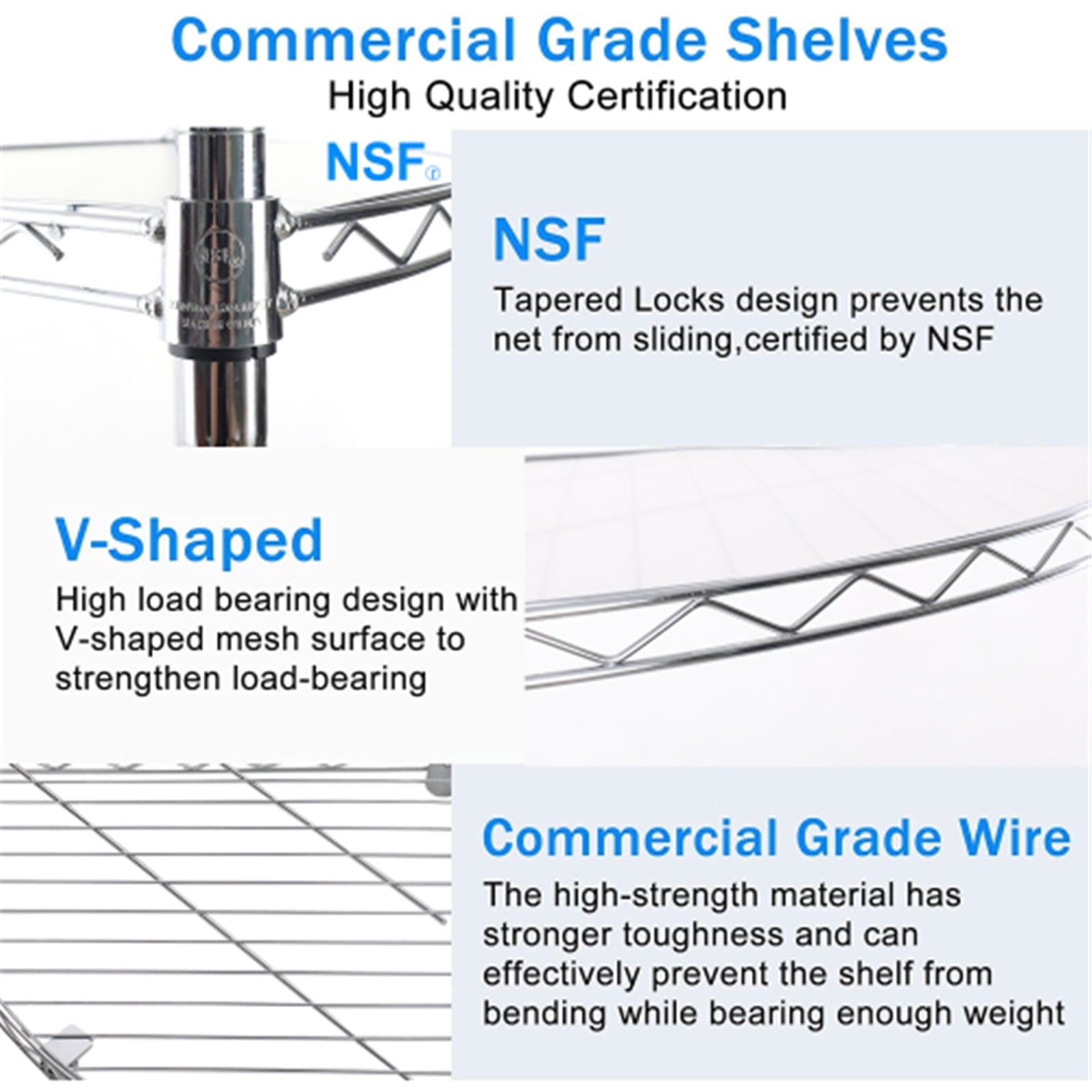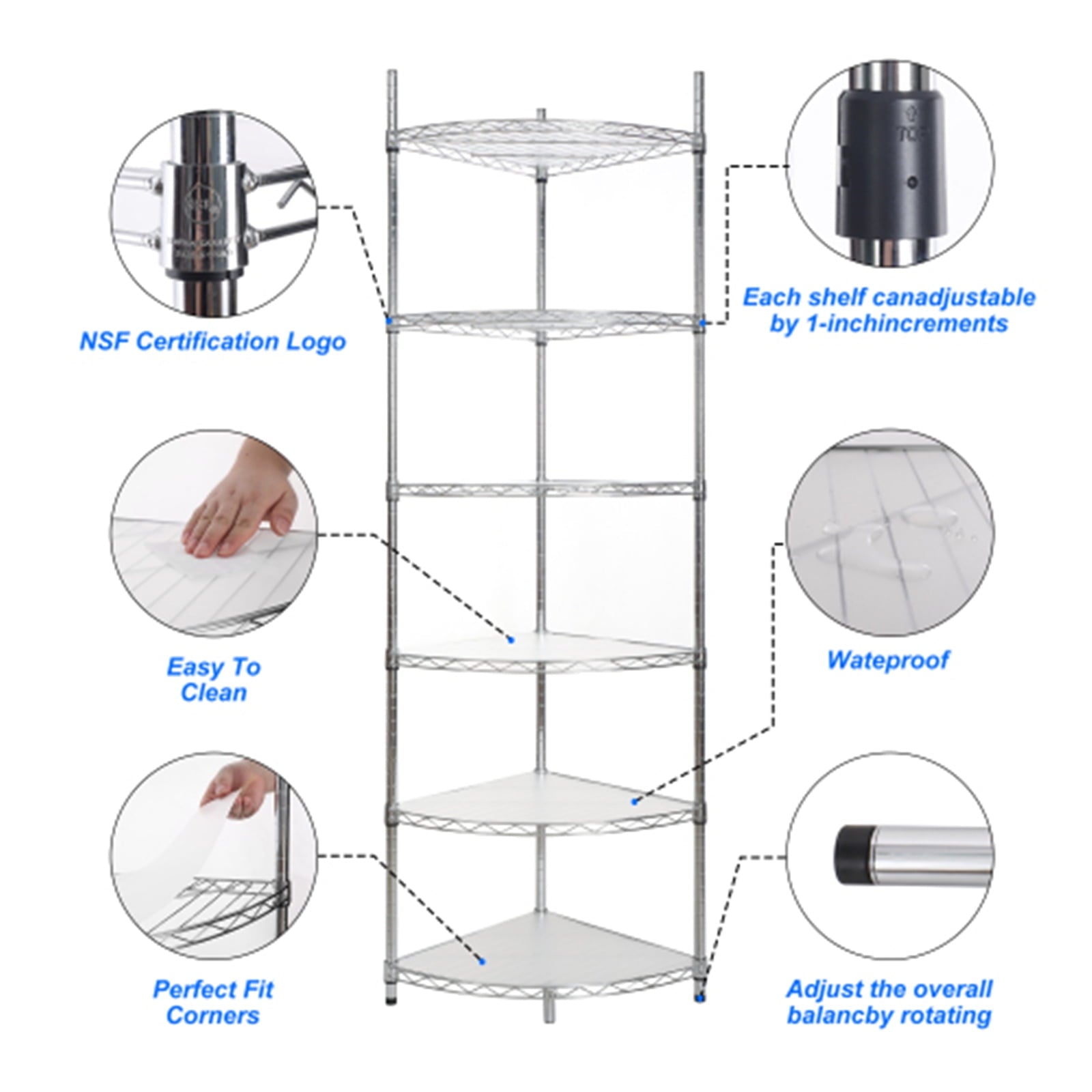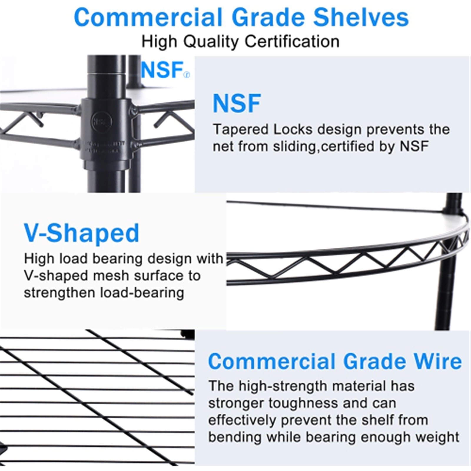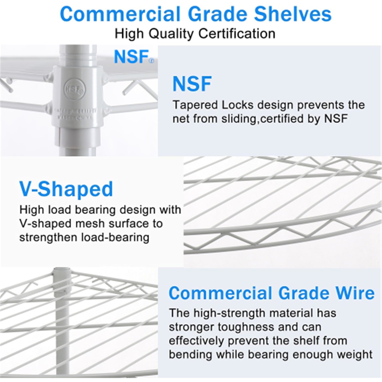 - [Extremely Durable] Wire shelving made of heavy steel, it has excellent rust resistance and oxidation resistance. Our wire shelf liner is crafted to provide unparalleled quality, longevity, function and beauty. Better quality thicker than the competition. The 6 tier shelf unit passed NSF certified, safe and reliable. Storage rack are perfect addition to home, office.