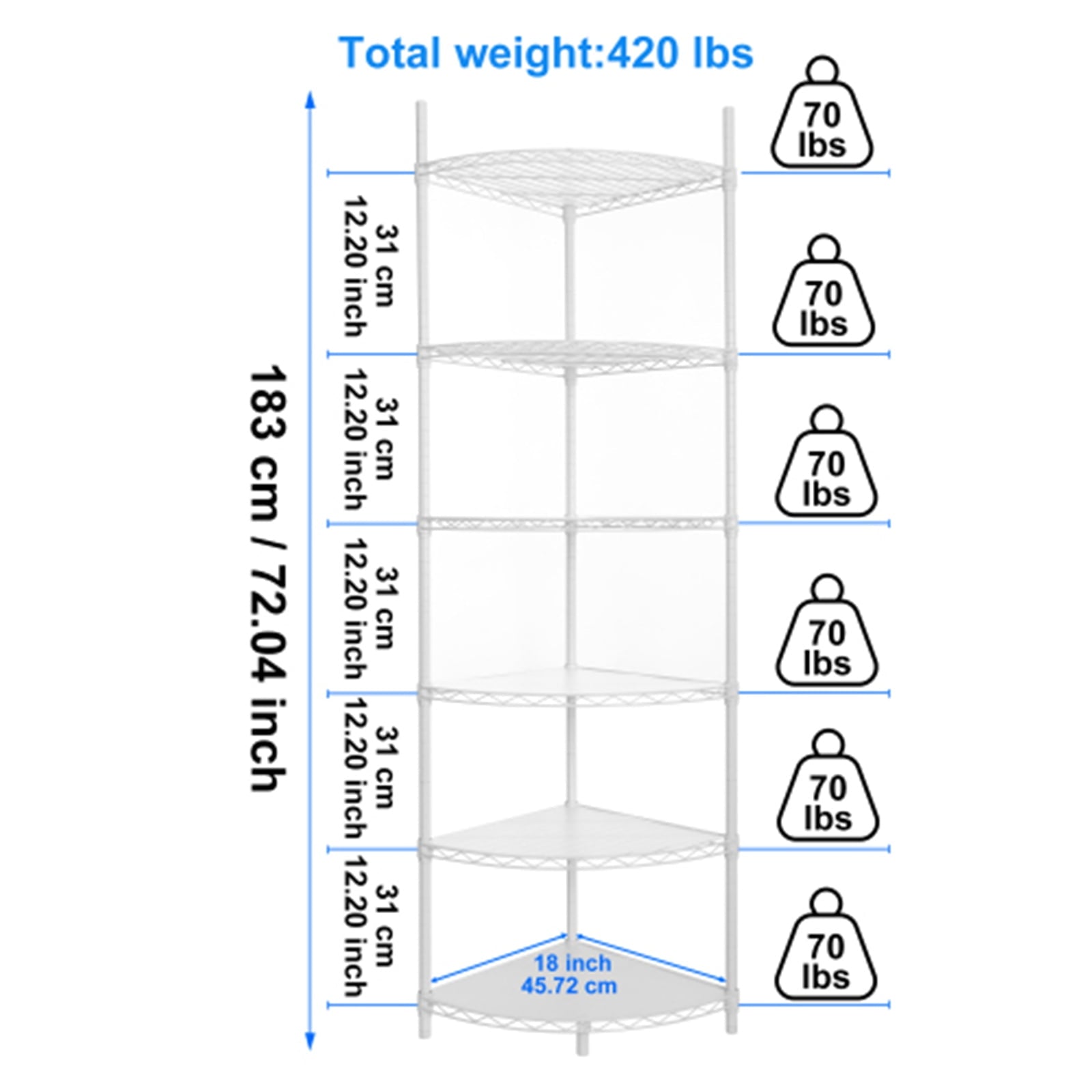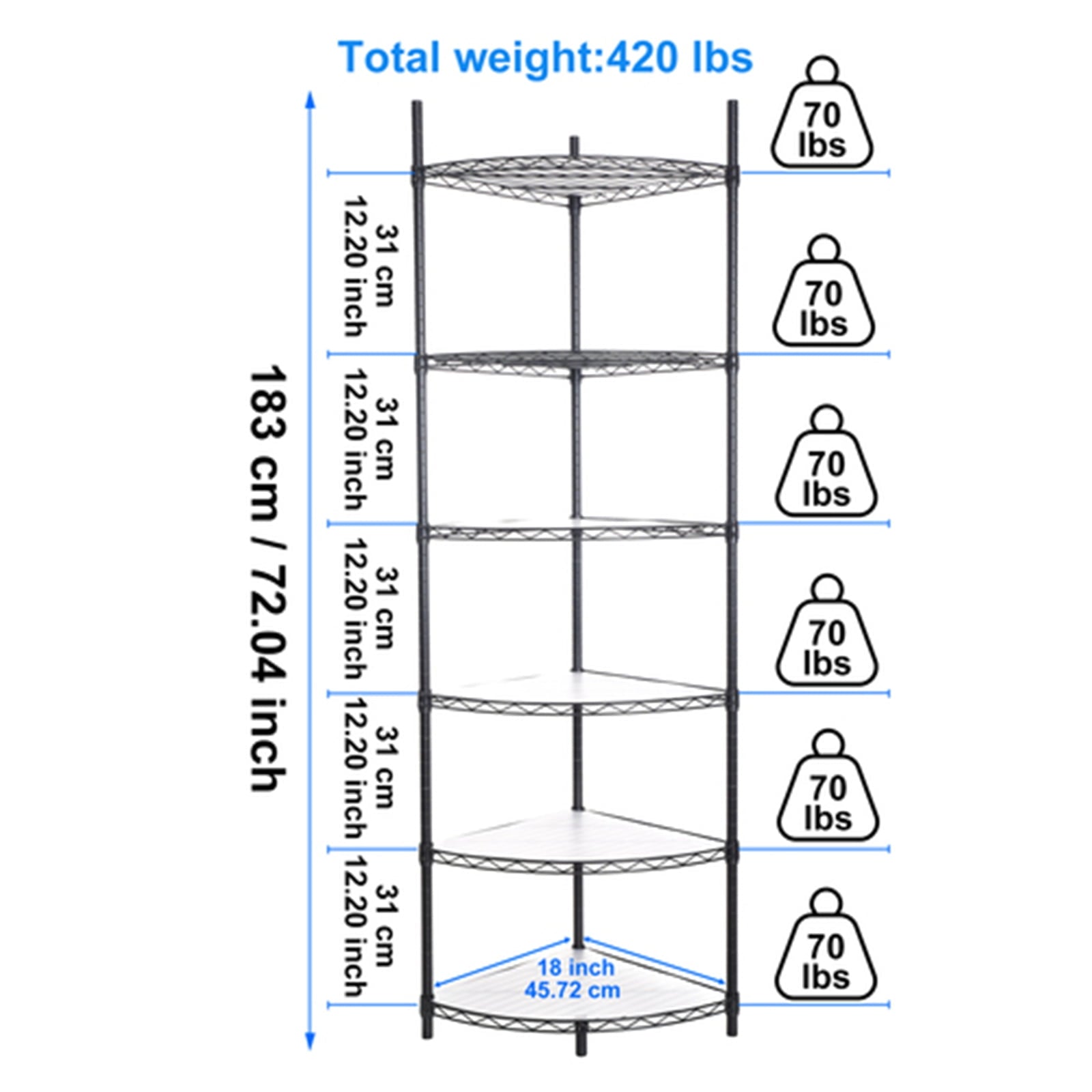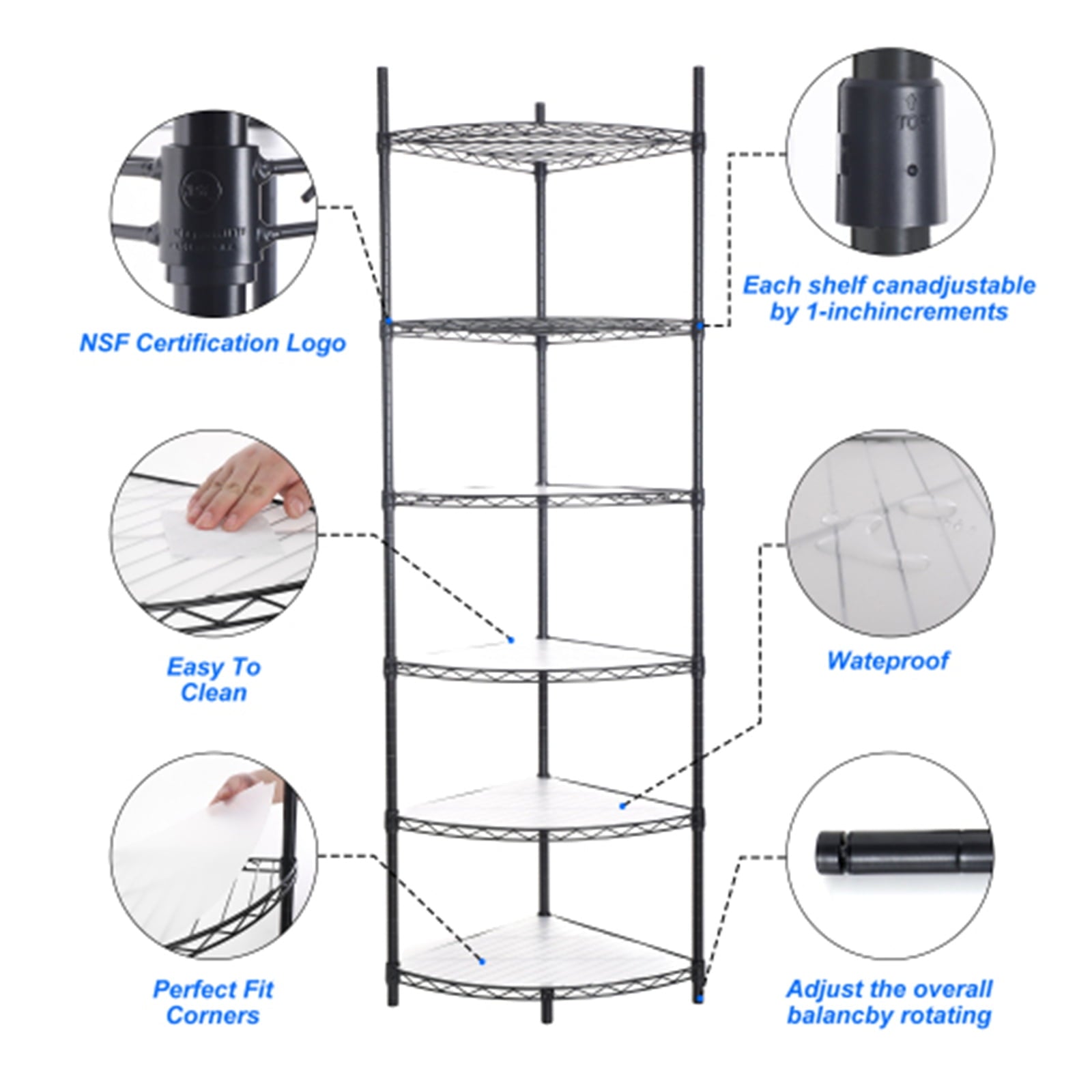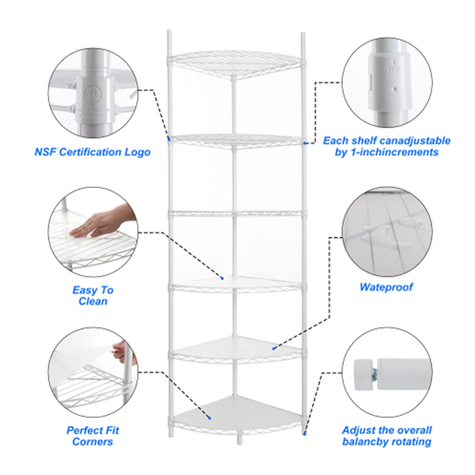 - [Multi-purpose] Our 6-story triangular storage rack is very suitable for placing in the corner, especially for places where space is limited and requires large storage space. Simple modern design is well coordinated with any family and store decoration style. For example, bathroom, door, entrance, garage, kitchen, kitchen, laundry room, office or closet.