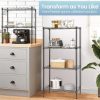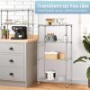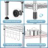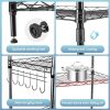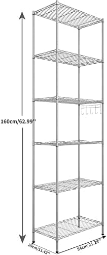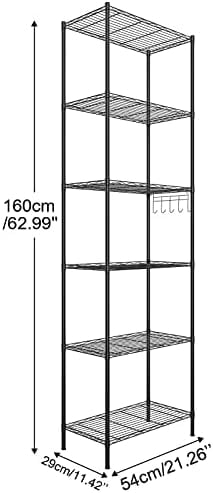 Large Space – With the size of 62.99″ H X 11.42″ X 21.26″L, the 6 Tier Wire Shelving Unit has the 6-tier design and 1 side suspension can easily contribute to a clean kitchen.The free standing shelf between the levels is adjustable, you can put microwave, Rice cooker, juicer, etc on the shelf. The hook of the side hanger can chop knives, pans, gargle, towels you like.