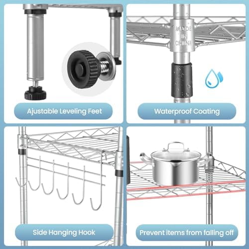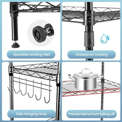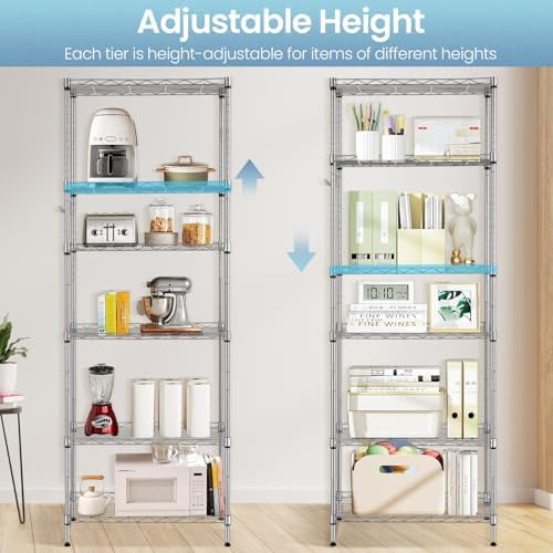 Multi-Functional – The 6 Tier Wire Shelving Unit is easy to move. Customize any place where you need to make a clean kitchen, create a minimalist living room, keep the bedroom clean, storage toiletries, you can even use it a balcony flower stand.