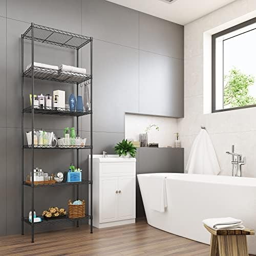Easy Assembly – The organization frame of the 6 Tier Wire Shelving Unit is simple, easy to assemble, easy to disassemble and assemble and does not require any tools.Room Type:Bathroom Number of Shelves:6 Special Feature:Detachable, Expandable, Heavy Duty, Adjustable Product Dimensions:11.42″D x 21.26″W x 62.99″H Style:Storage Organizer Rack Age Range (Description):All Finish Type:Chrome, Black Product Care Instructions:Wipe with Dry Cloth Size:6 Tier Storage Shelf