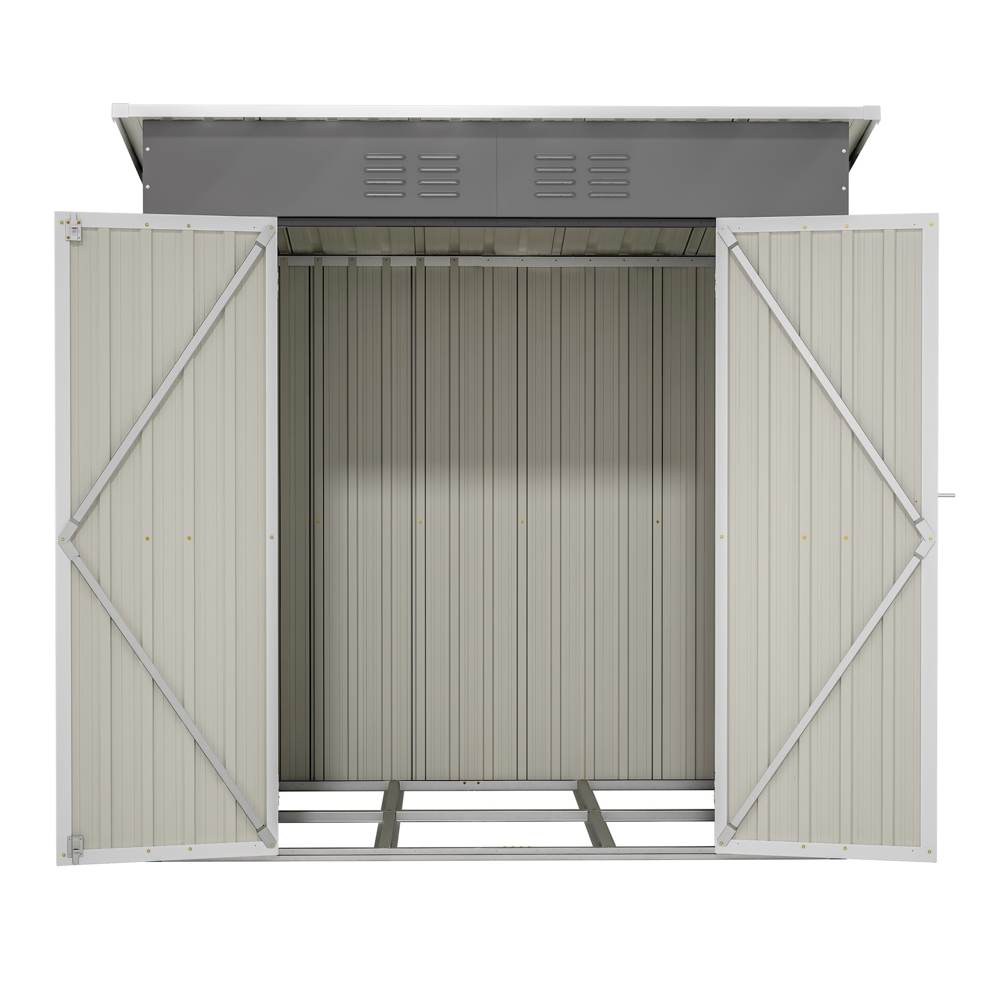 🌿[Enhanced Air Circulation and Light] The Storage Shed for Outside’s double-hinged doors and two integrated punched vents ensure increased air circulation and light, preventing sweltering in summer and chilling in winter.