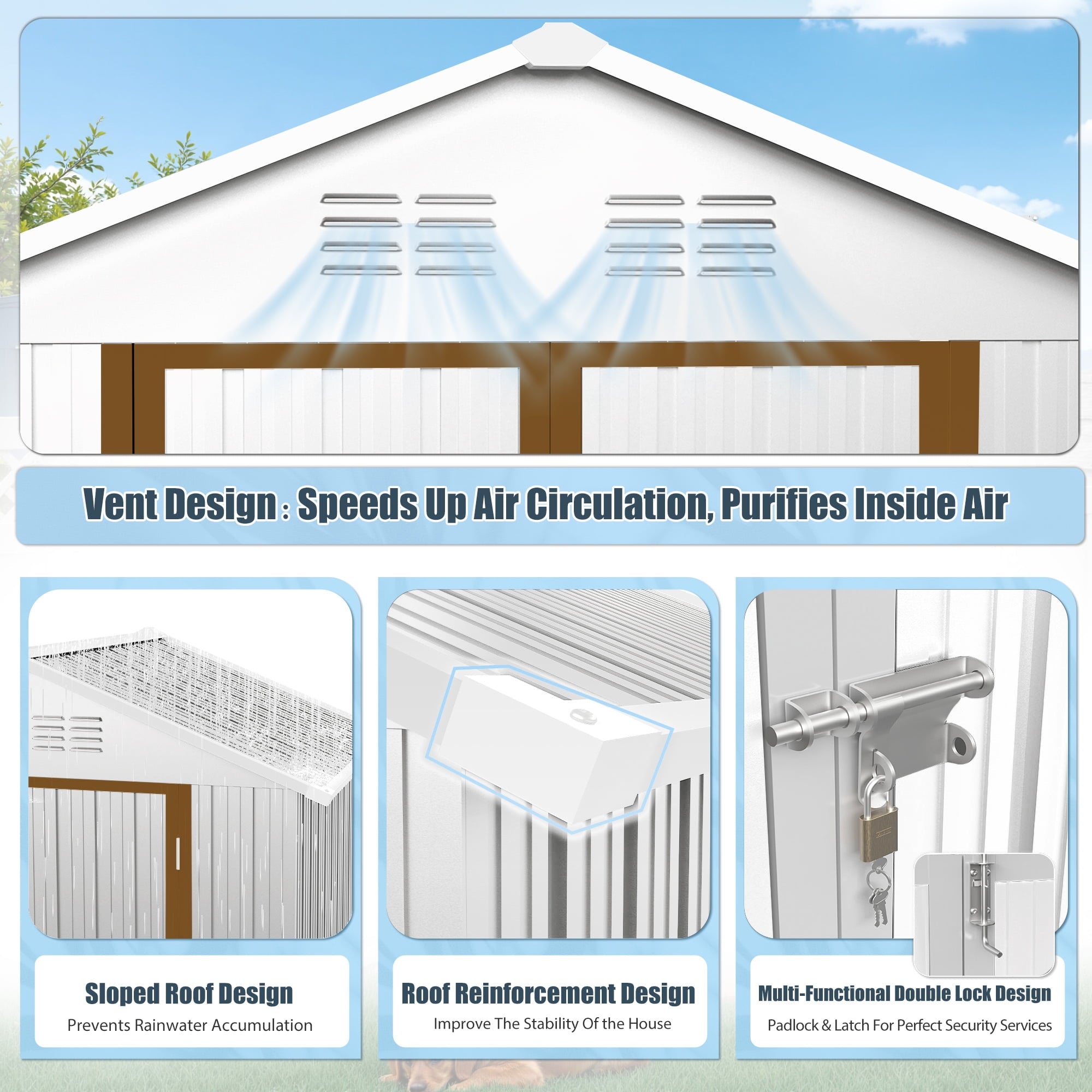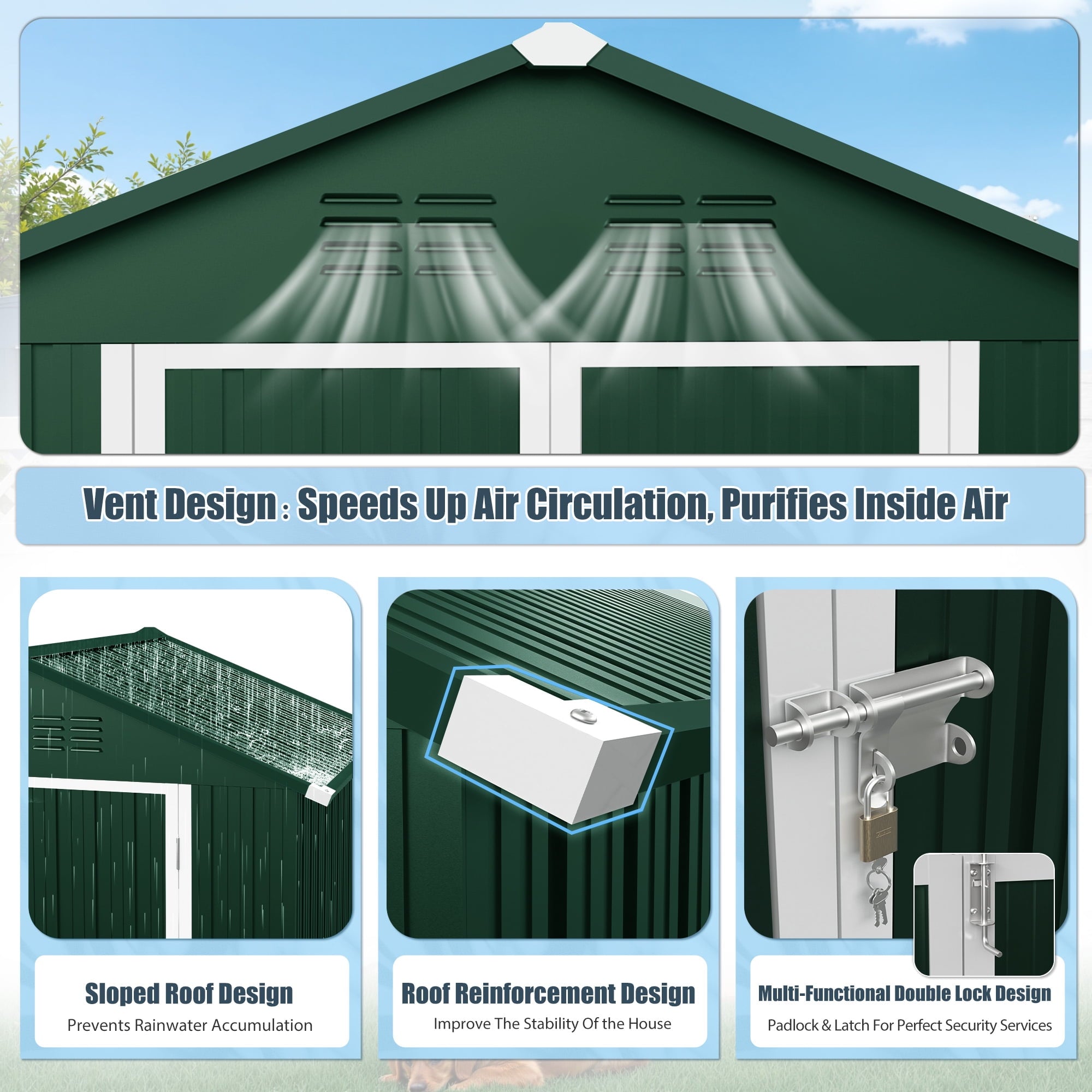 ⚽【Robust Construction】 Nothing irks a garden hobbyist more than the sight of a collapsed shed. Luckily, this shed utilizes sui generis aluminum frames which greatly increase the overall sturdiness. On top of that, the galvanized steel panels, coated with eco-friendly painting, can endure harsh weather for at least 10 years.
