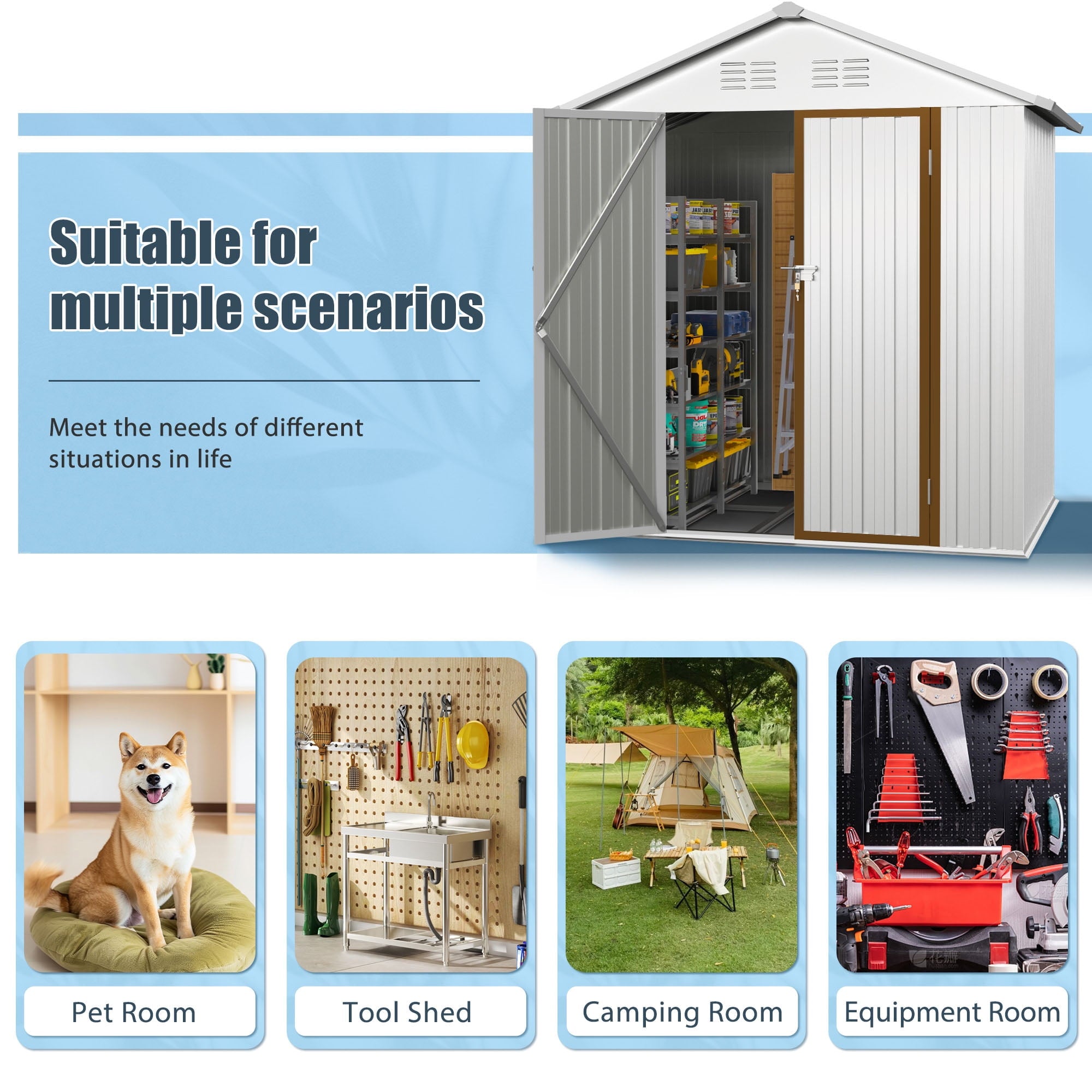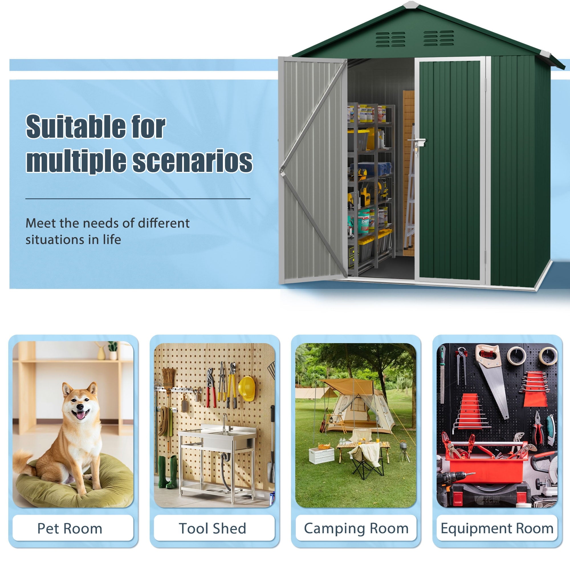 ⚽【Multifunctional use】 6’x4′ outdoor Metal storage cabinet can be used not only as a tool shed, but also as a pet house, providing a safer and warmer room for your pet; it can also be used as a storage room for storing boxes, and can also be used as a garbage collection room to keep the backyard tidy. Which is a great shed house for backyard!