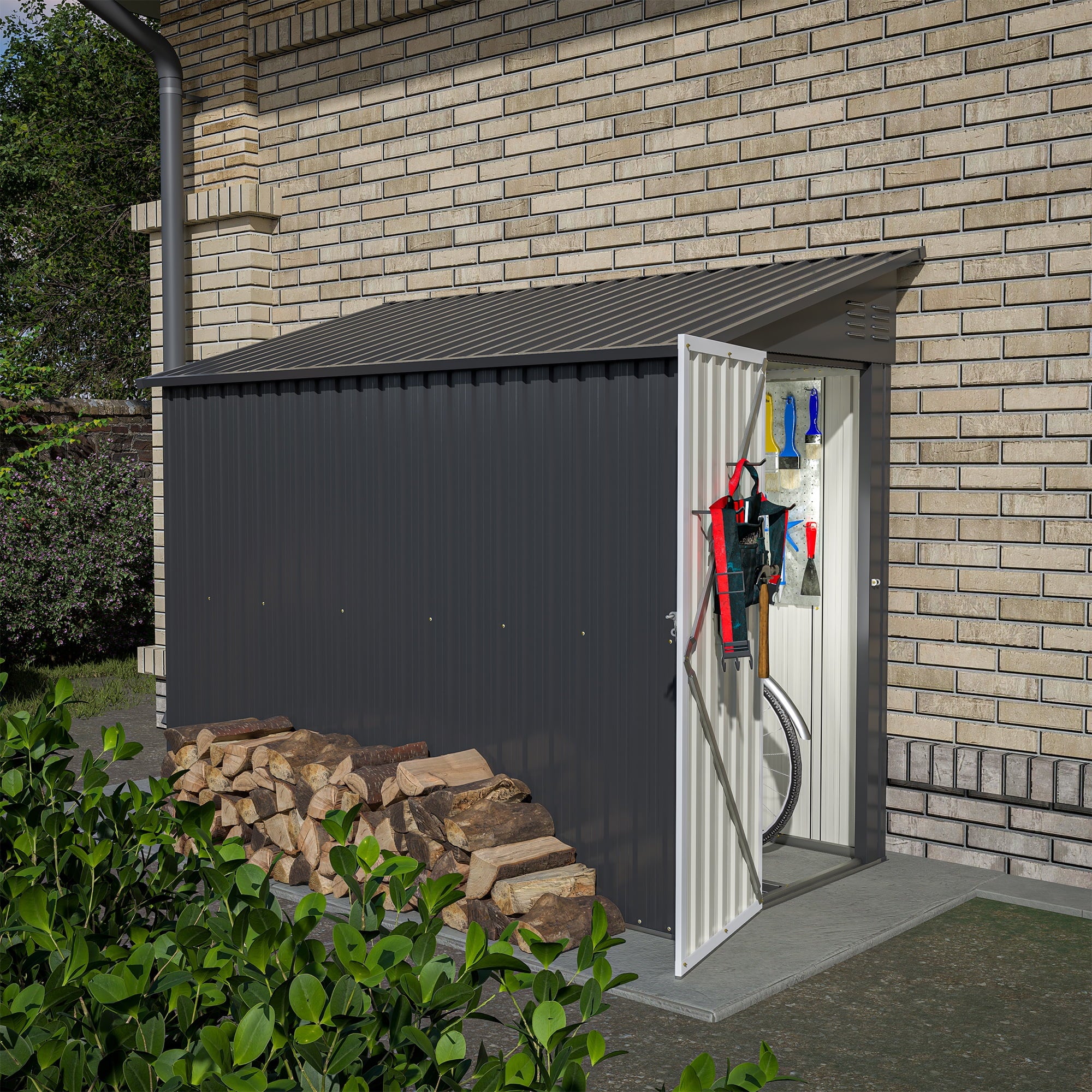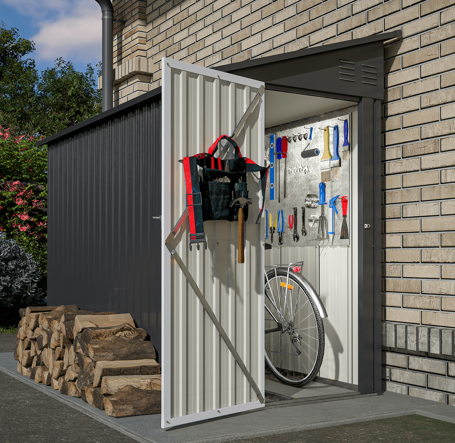 This 6′ x 4′ garden storage shed is an ideal storage solution for small gardens or areas with limited space. Durable construction with galvanized steel reinforcement makes this storage shed rustproof and UV-resistant. The inclined slope roof adds extra storage and prevents rainwater from gathering and preventing rust. The lockable door grants extra safety. This outdoor storage shed has the perfect size for storing bicycles, lawnmowers, barbeques, and garden tools. Perfect for your garden, backyard, lawn, and any outdoor space you want.