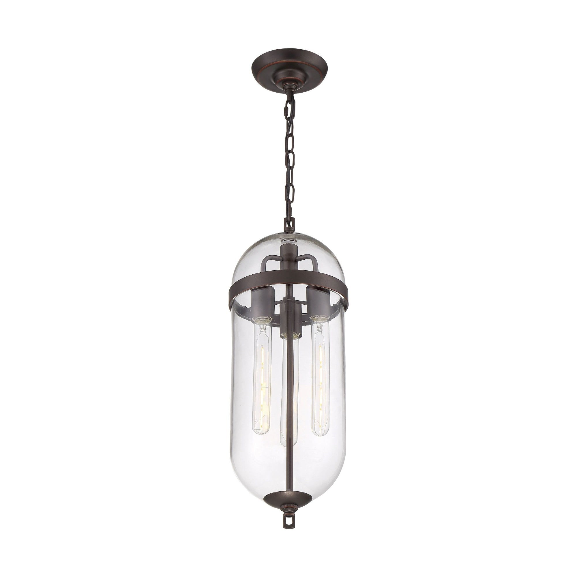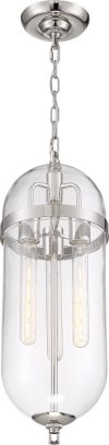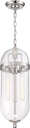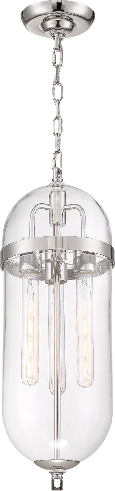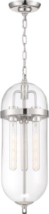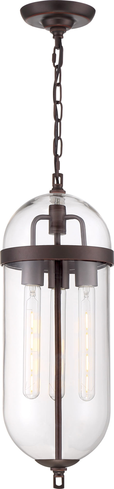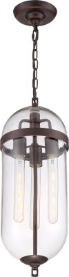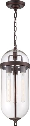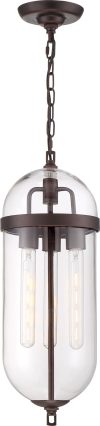 Nuvo Lighting-60/6913-Collection: Aurora, Finish Color: Vintage Brass, Width: 8″, Height: 23″, Chain Length: 48″, Number Of Bulbs: 3, Wattage: 60 Watts, Dimmable: No, Moisture Rating: Dry Rated, Desc: Aurora; 3 Light; Pendant Fixture; Black and Polished Nickel Finish with Clear Seeded Glass