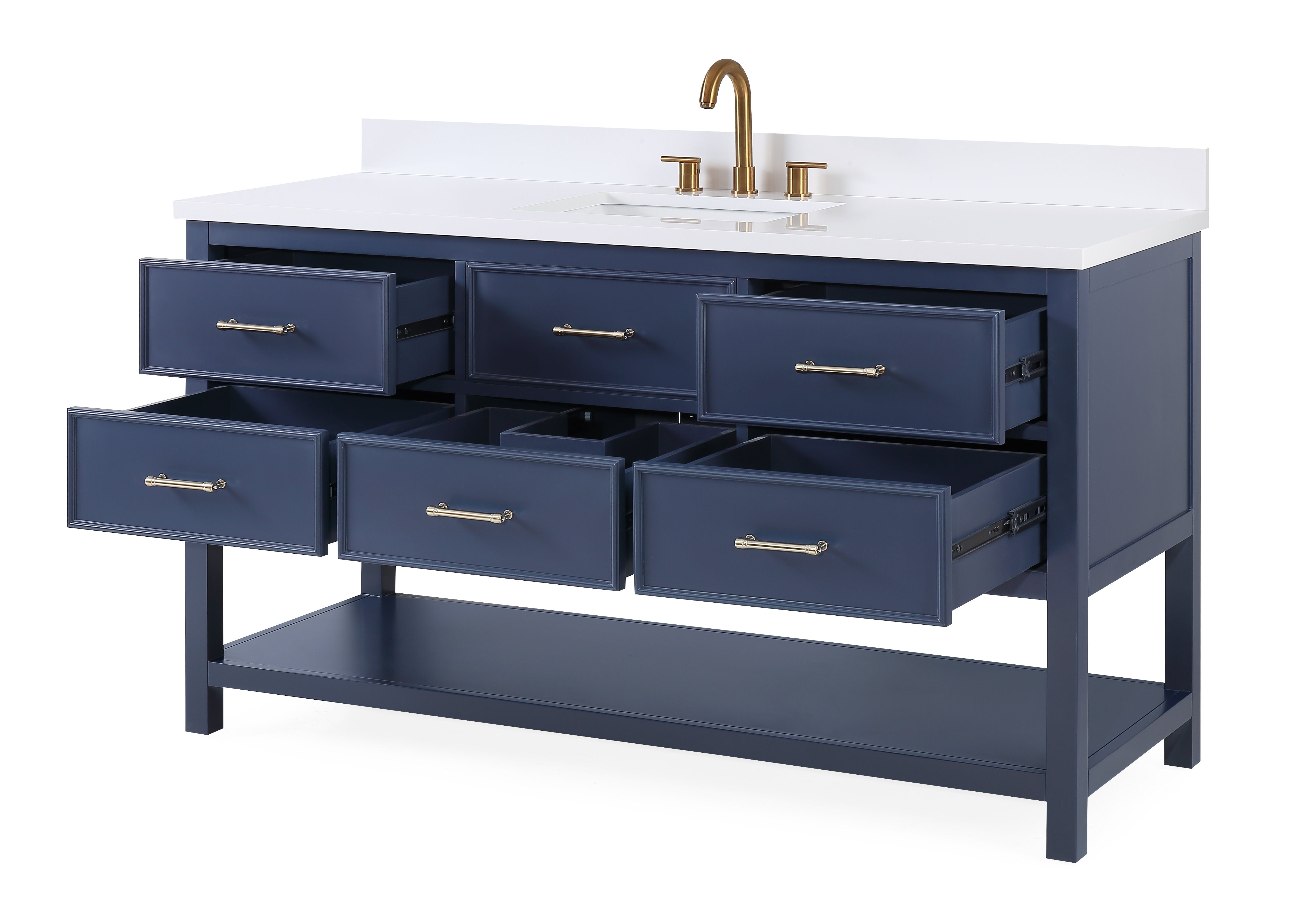 - Five functional drawers with full extension metal sliders