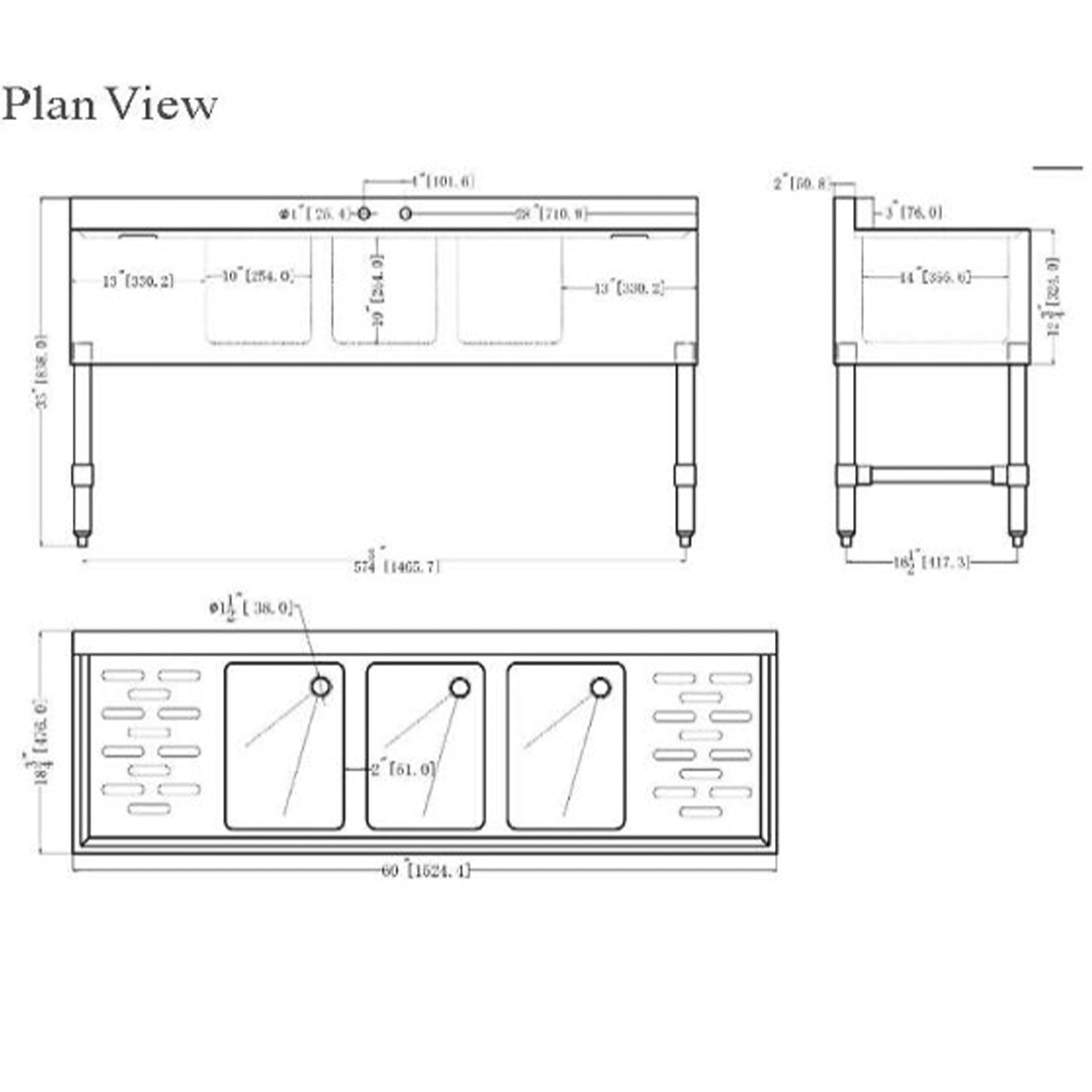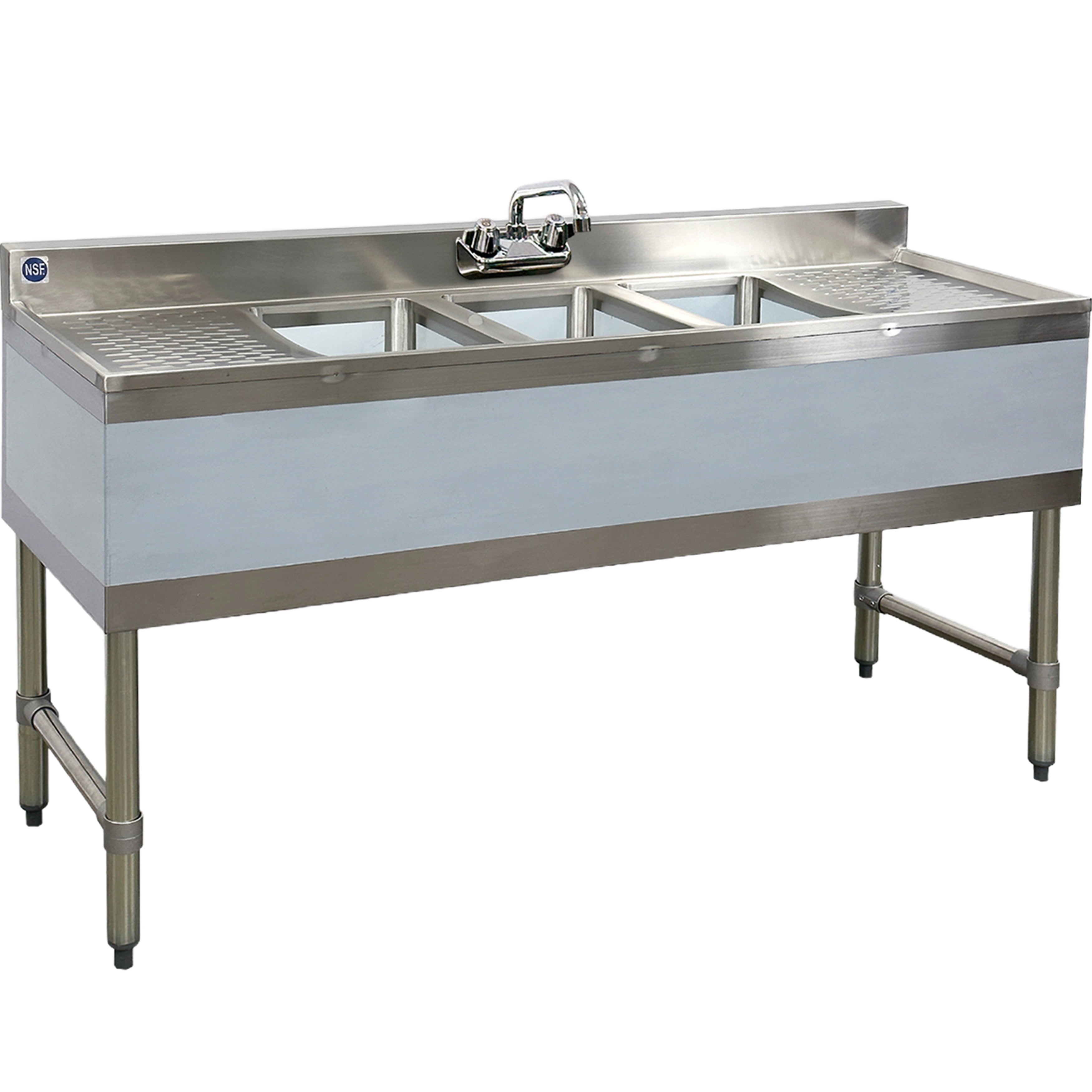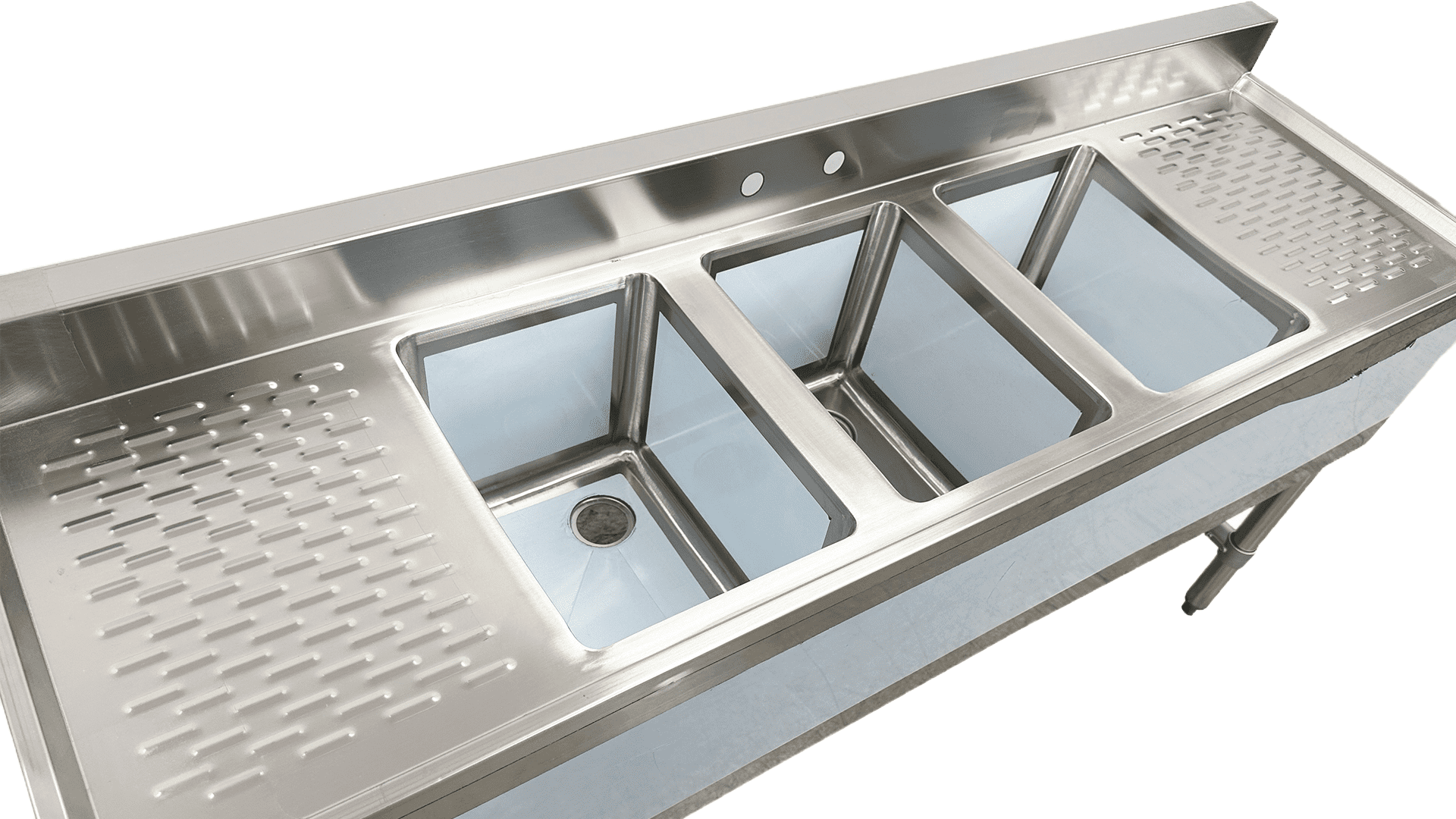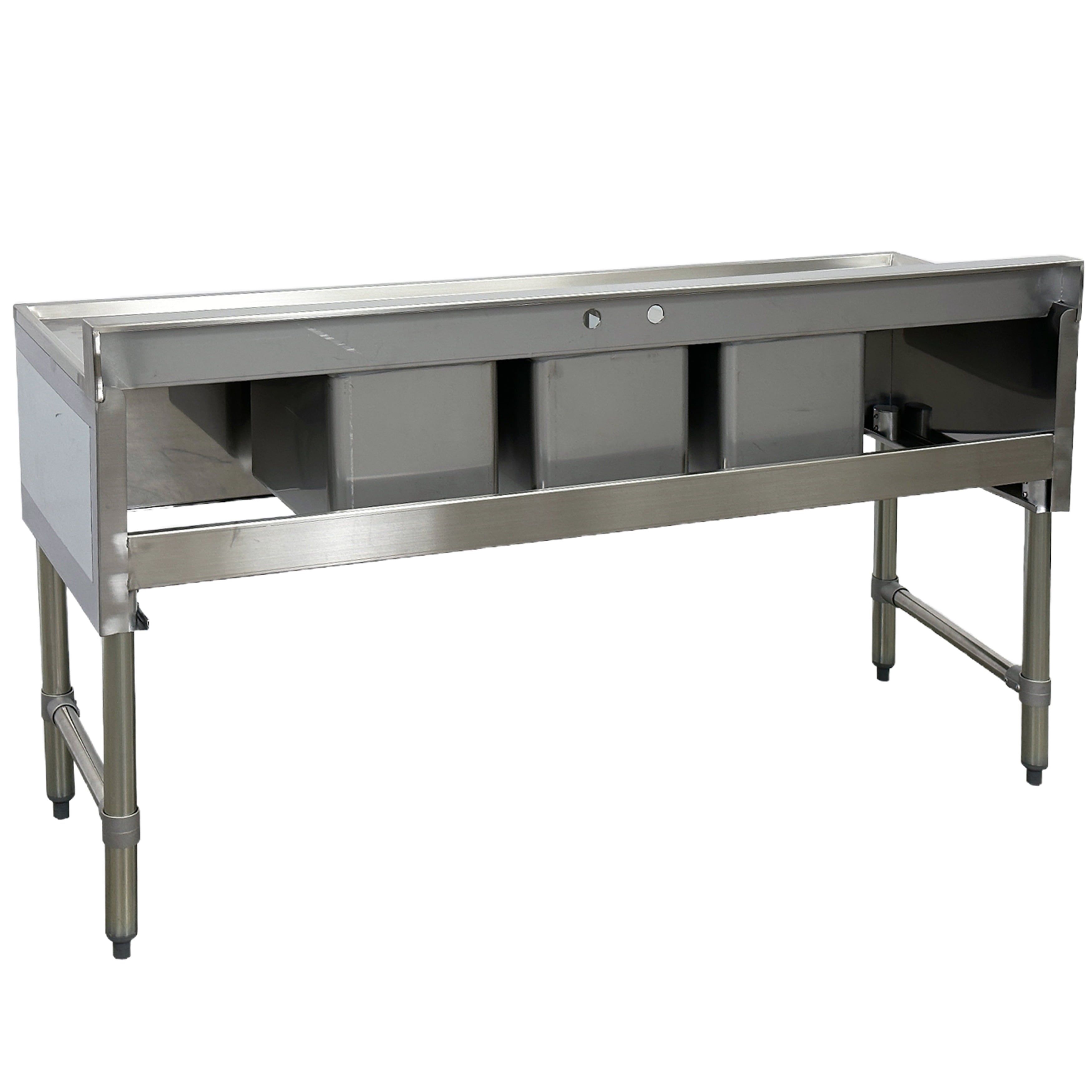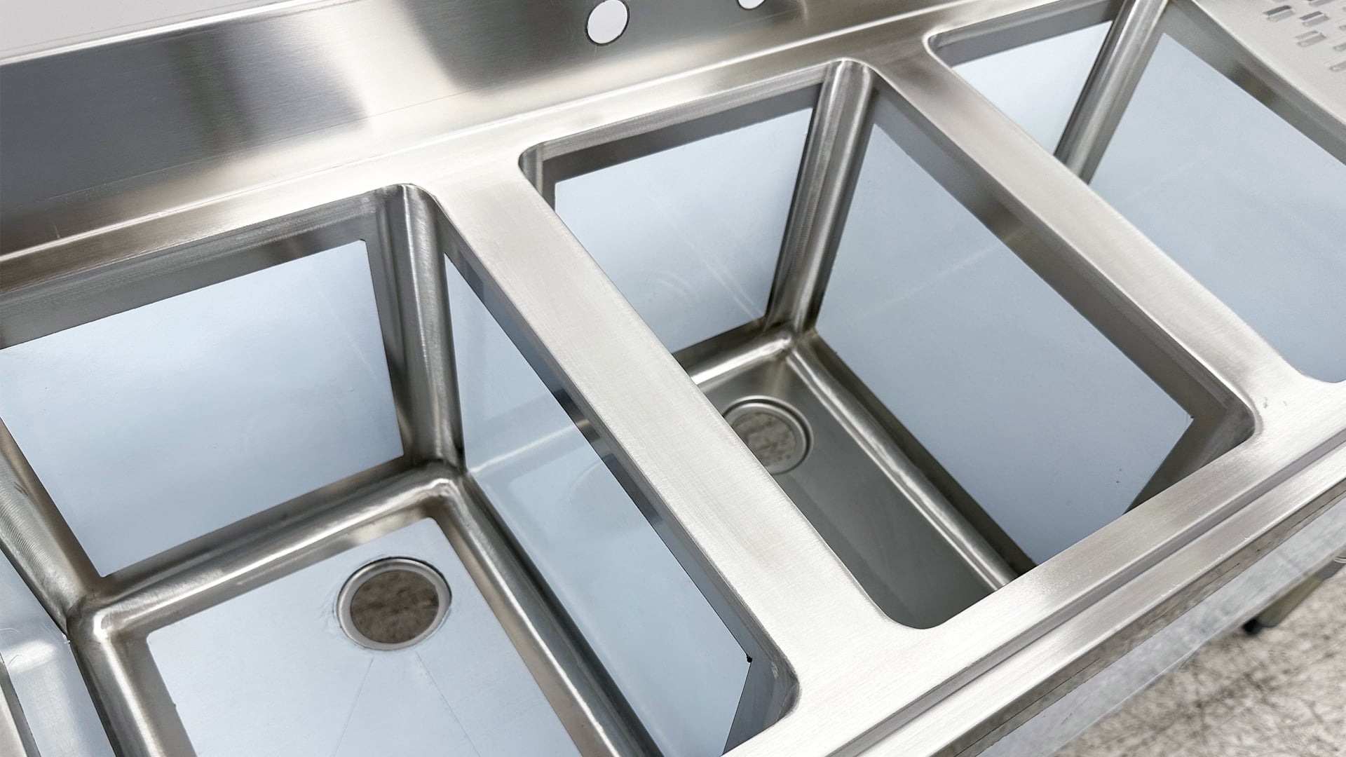 Three Bowl Configuration: Accommodates multitasking with three separate compartments for rinsing, washing, and sanitizing.