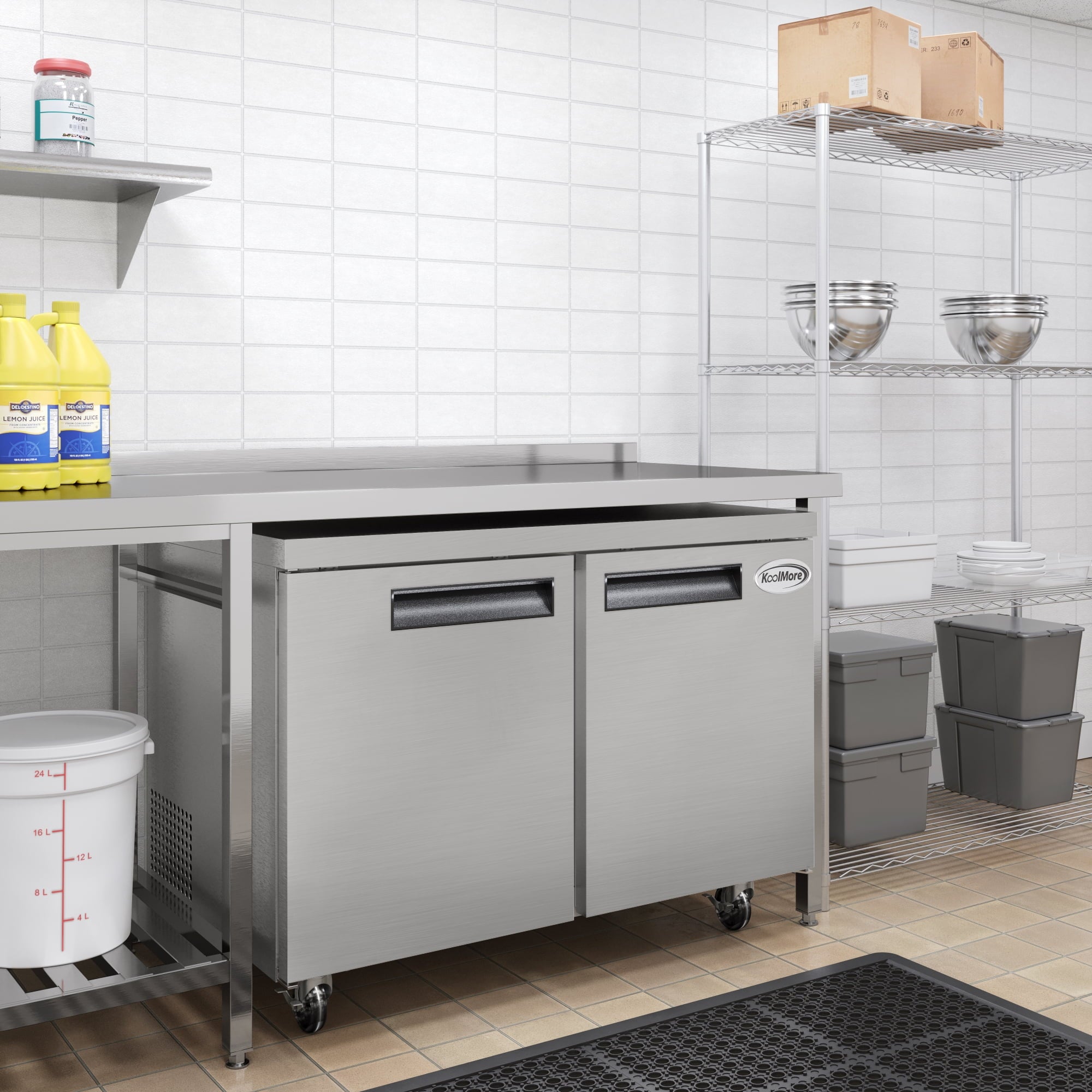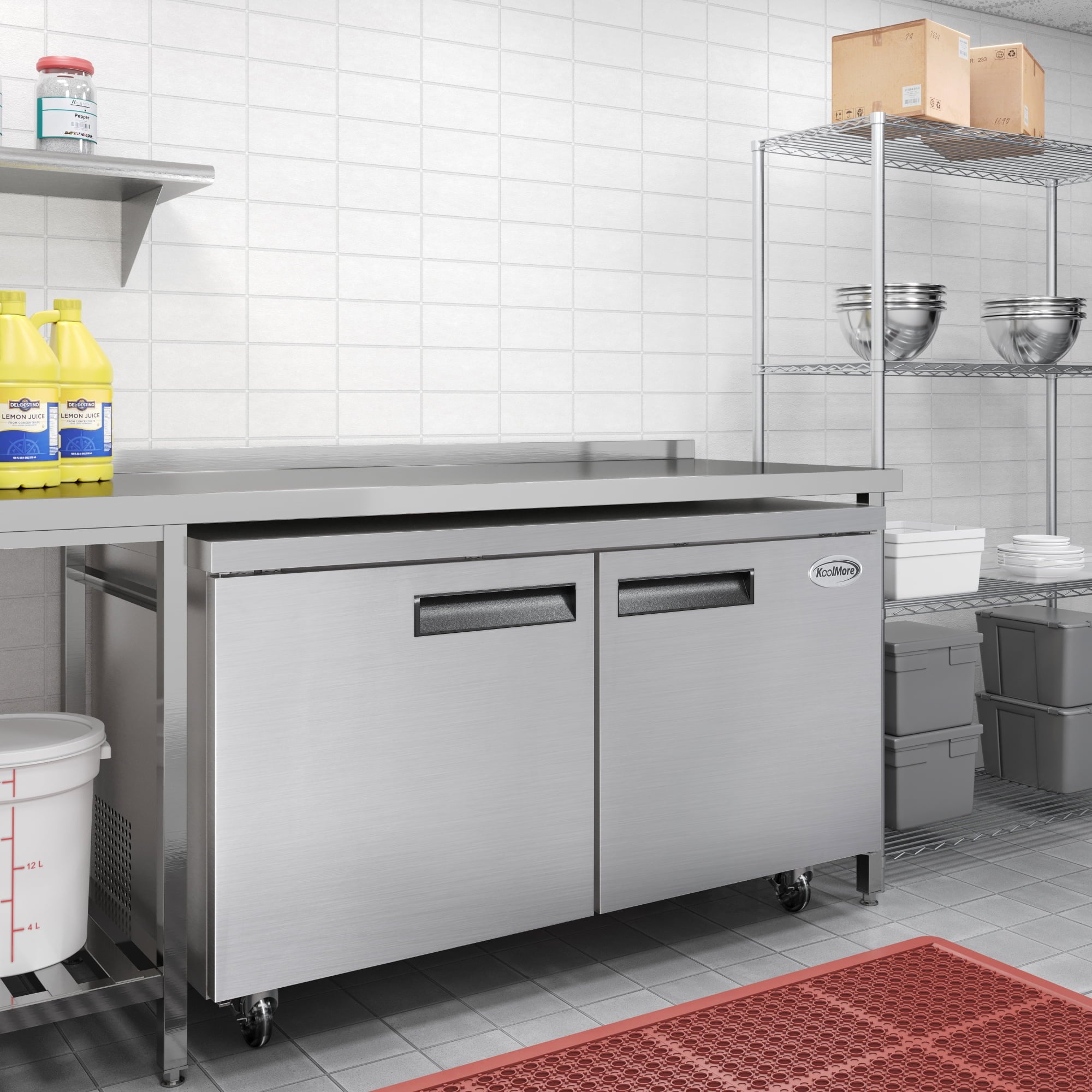 The KoolMore Commercial Under-Counter Freezer showcases a seamless blend of sleek aesthetics and practical features. Its two self-closing doors with recessed handles provide easy access to your stored items and contribute to the unit’s clean and streamlined appearance. With the added convenience of two adjustable shelves coated with epoxy for maximum corrosion resistance, you can effortlessly organize your supplies and optimize your storage space.