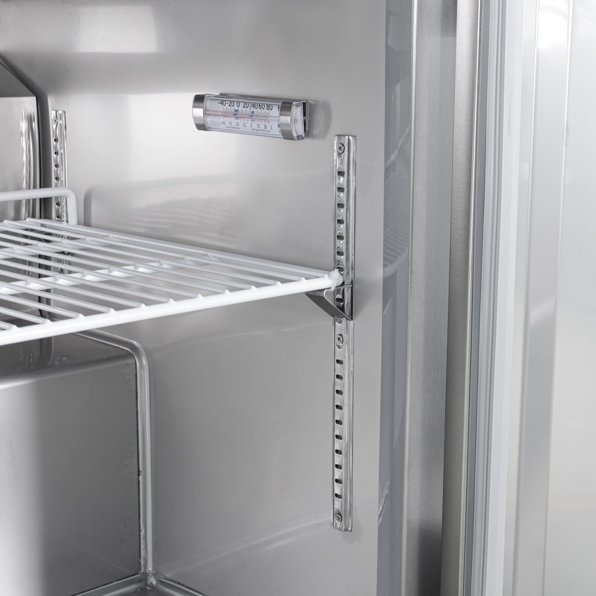 Temperature control is paramount in any commercial kitchen, and the KoolMore Freezer delivers exceptional performance. Equipped with an internal wall-mounted thermometer and external digital controls, you have complete visibility and precise control over the temperature settings, allowing you to maintain optimal conditions for your perishable goods.