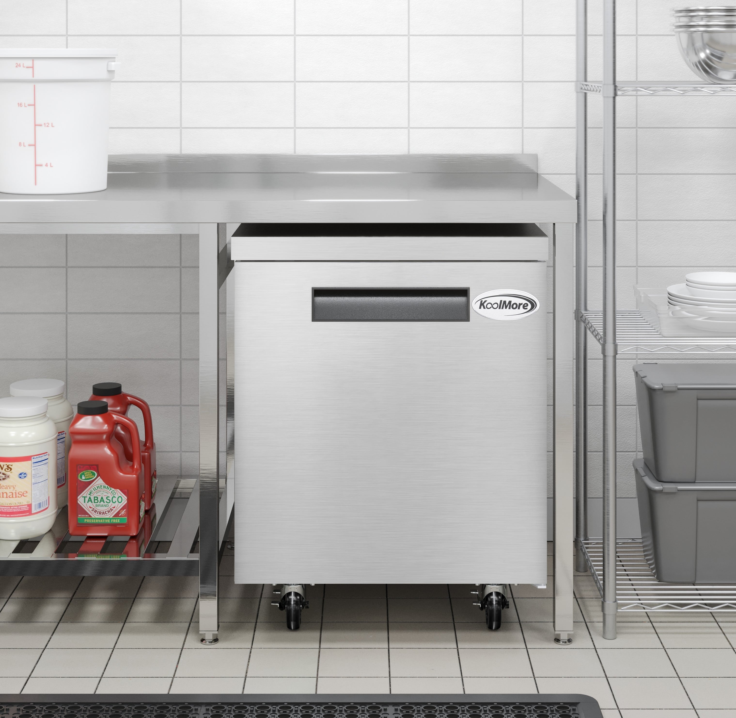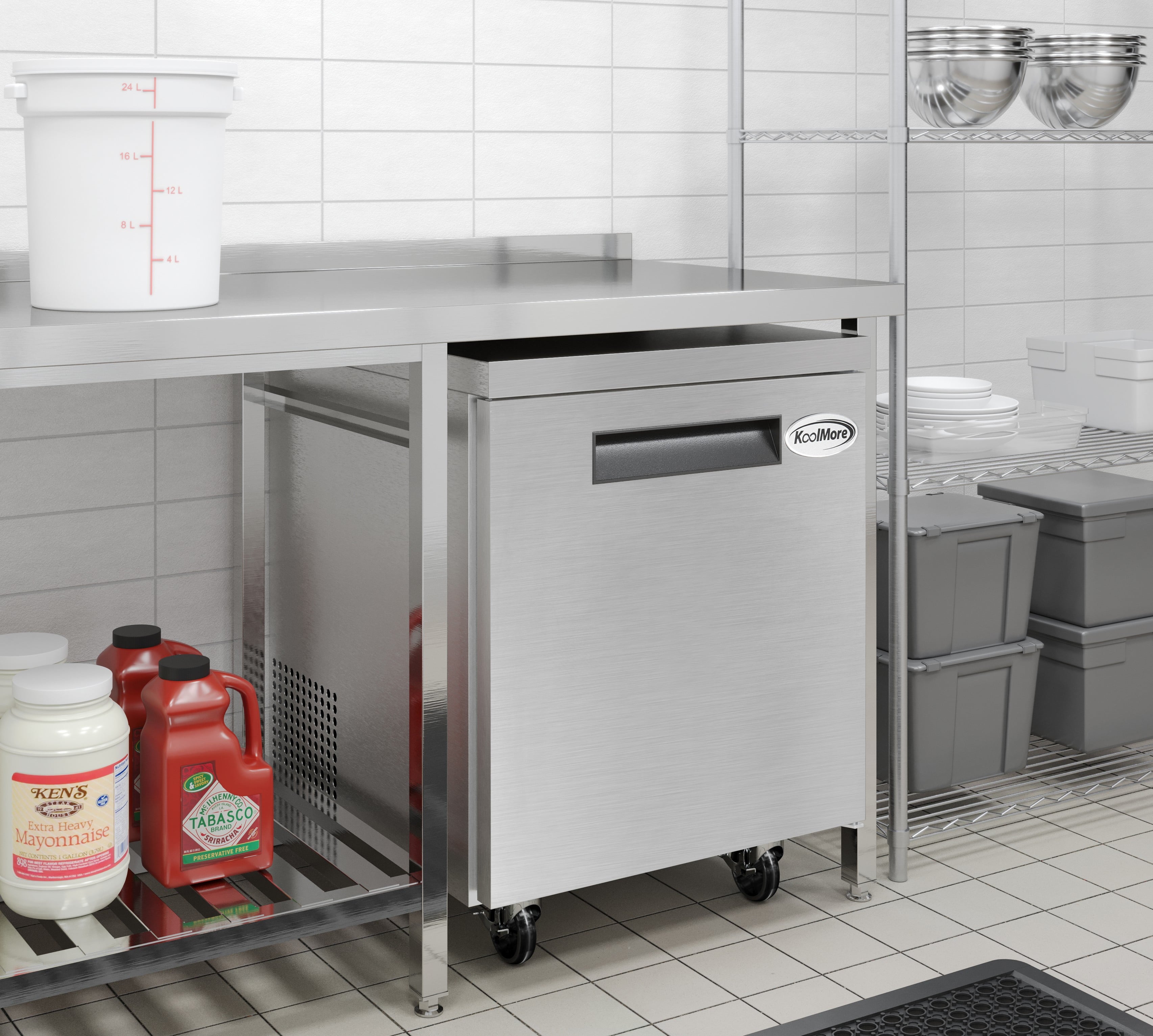 Introducing the KoolMore Commercial Under-Counter Freezer, the perfect combination of style, functionality, and convenience for commercial kitchens. Meticulously crafted from 430 stainless steel, this unit is specifically designed to meet the demanding needs of restaurants, hotels, cafeterias, and various other commercial kitchen settings.