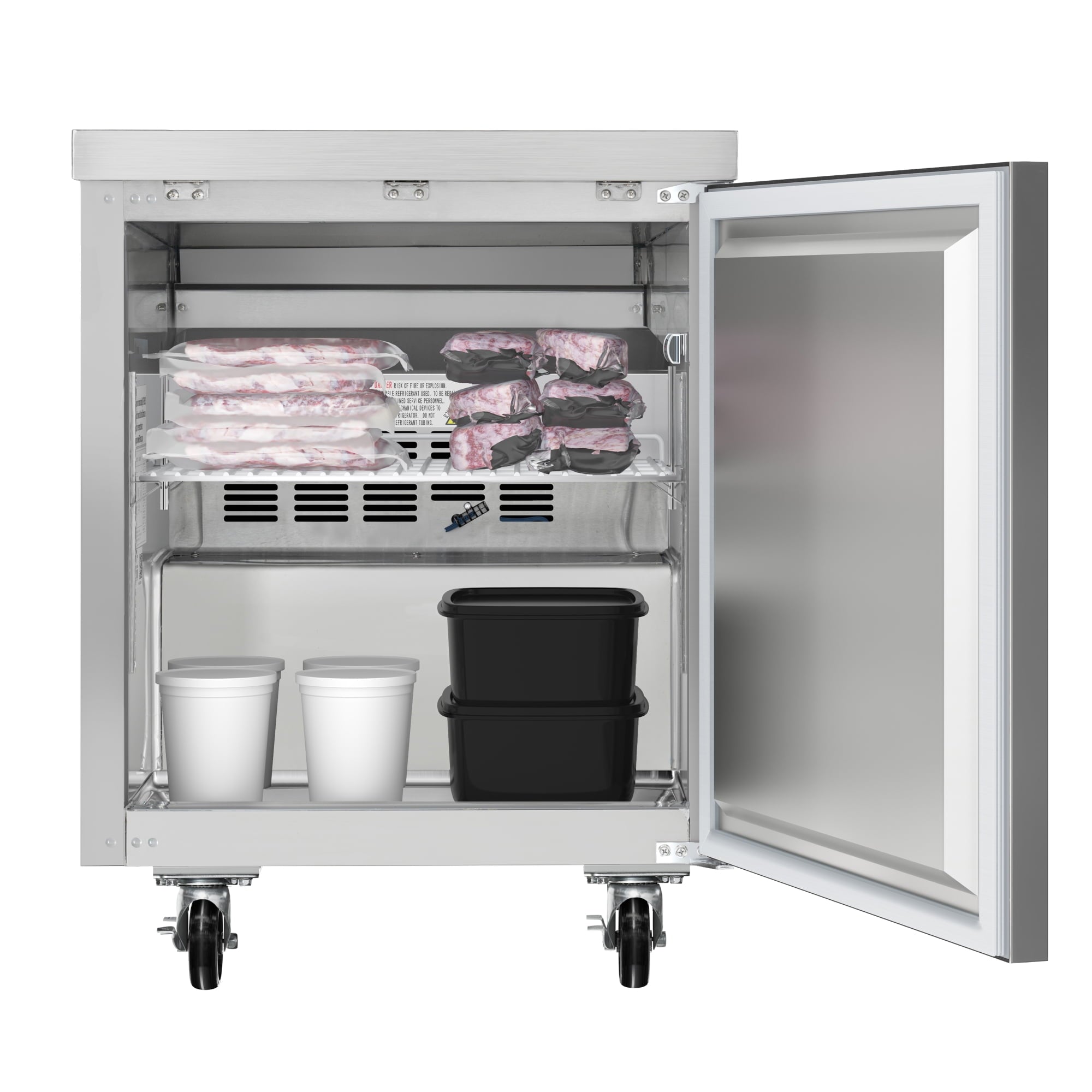 Versatility and mobility are key highlights of this under-counter freezer. It features four casters, including two front locking ones, allowing you to move the unit around your kitchen conveniently. Whether you need to create space for cleaning or reconfigure your workspace, this freezer offers the flexibility to adapt to your ever-changing needs.